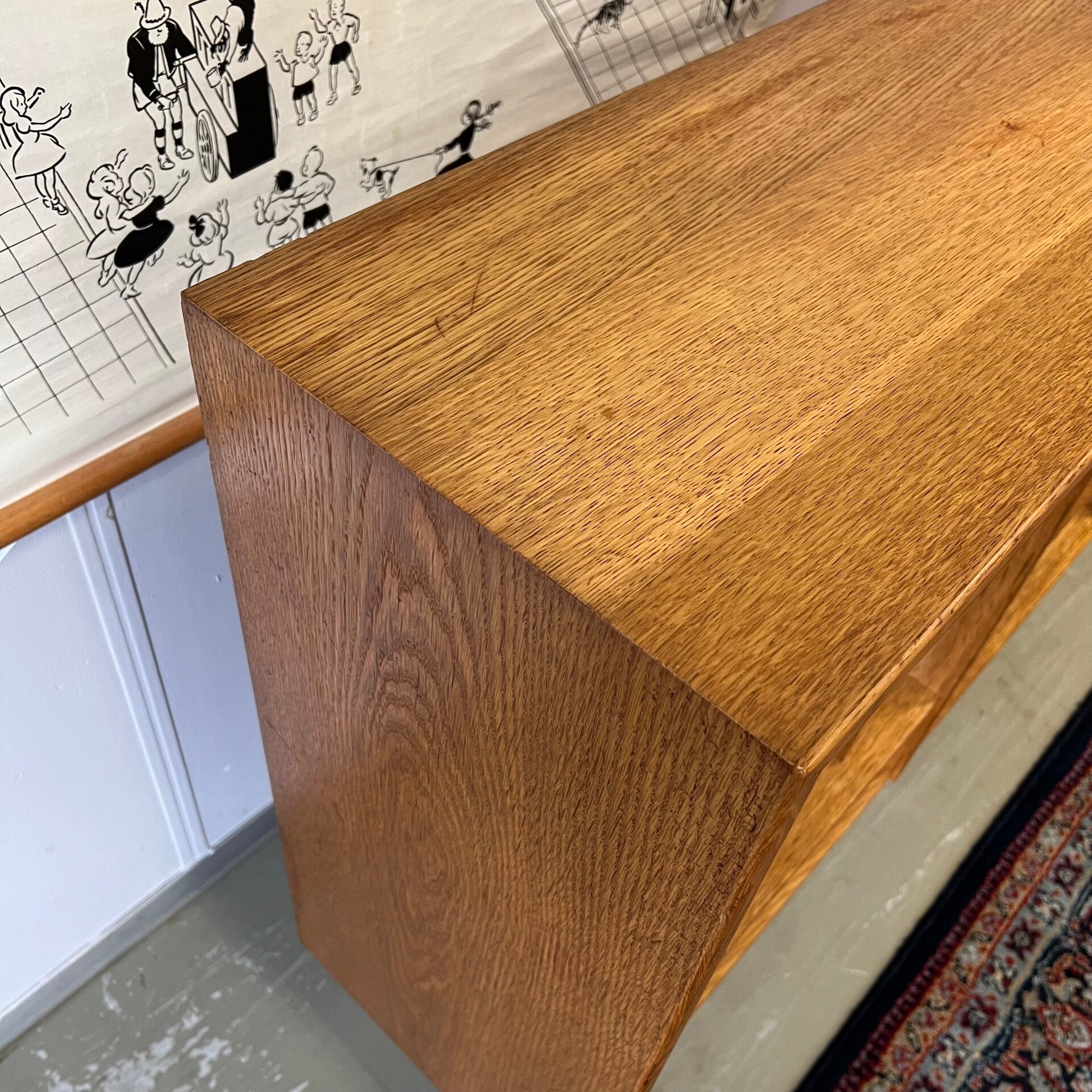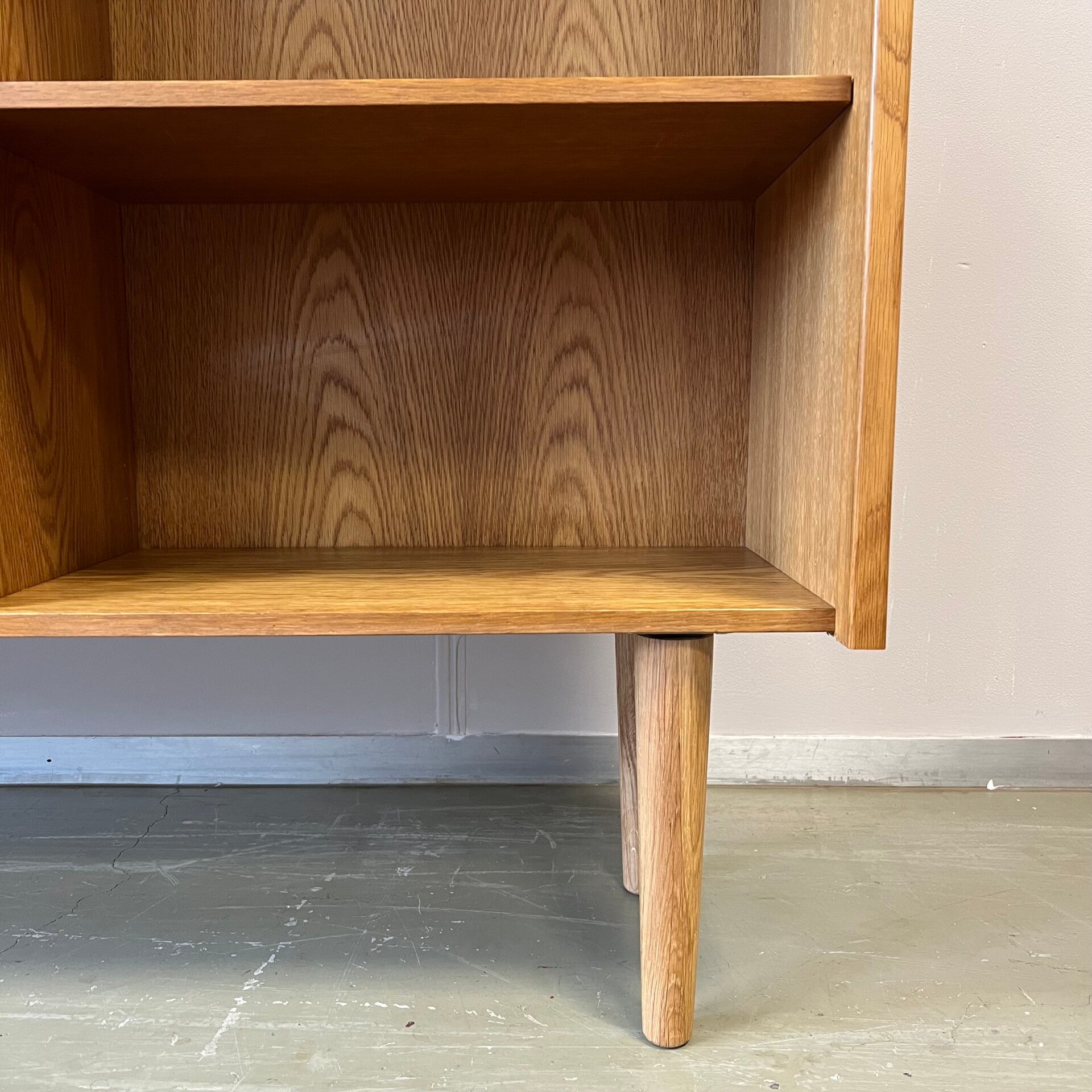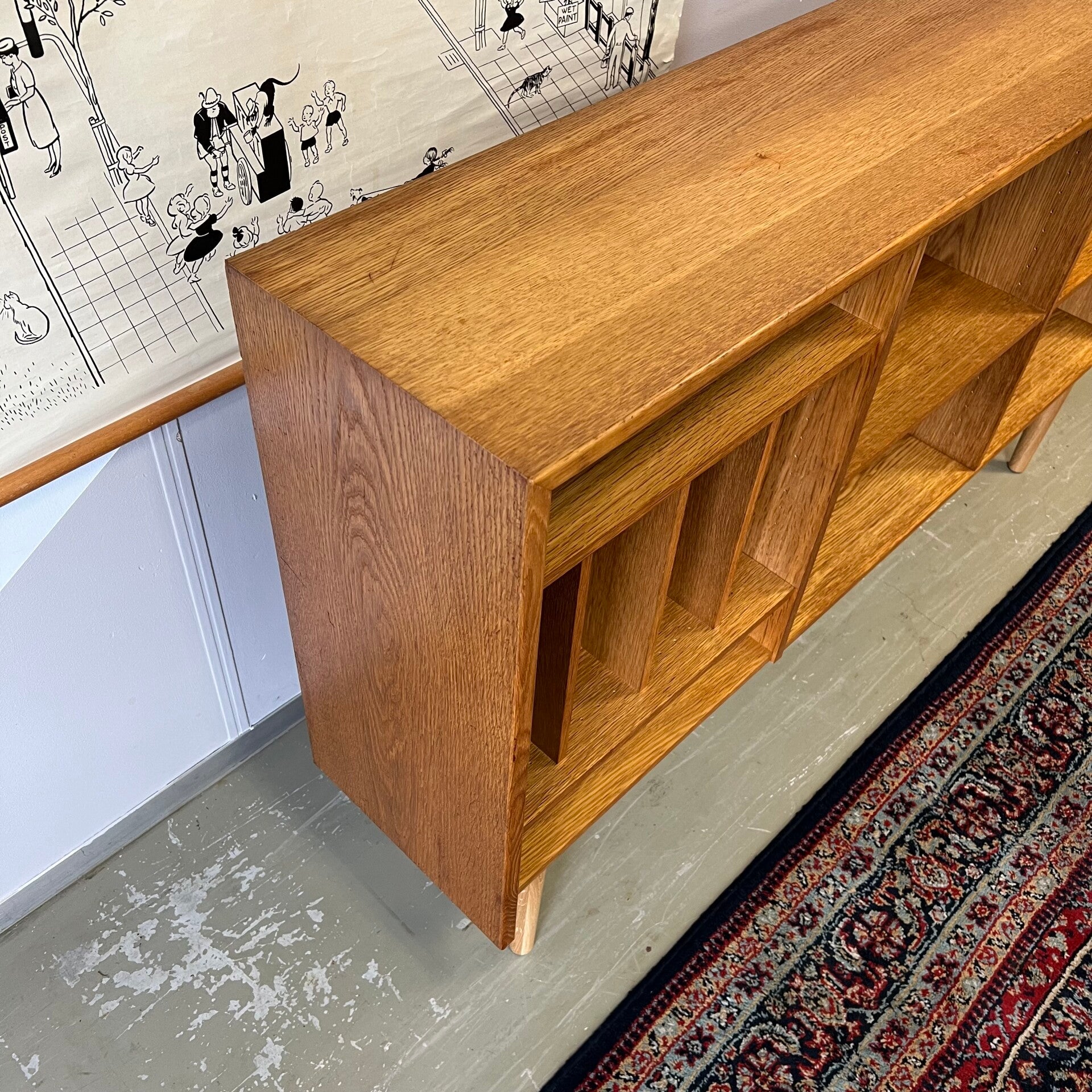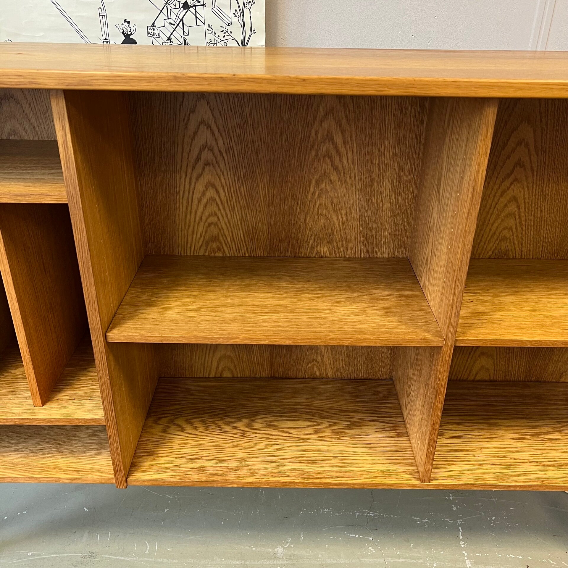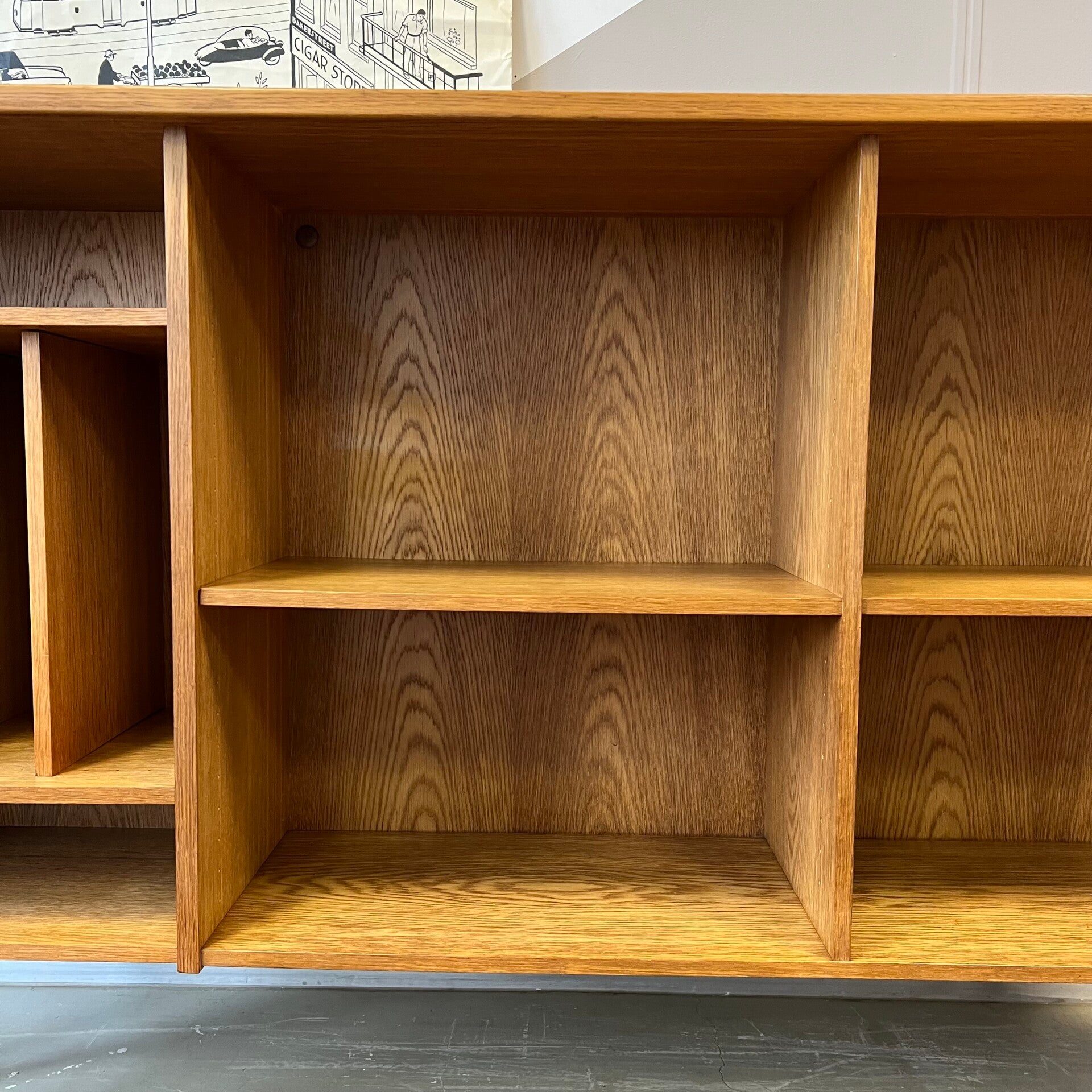 Leuke vintage open LP kast, audiomeubel in licht eiken (fineer).