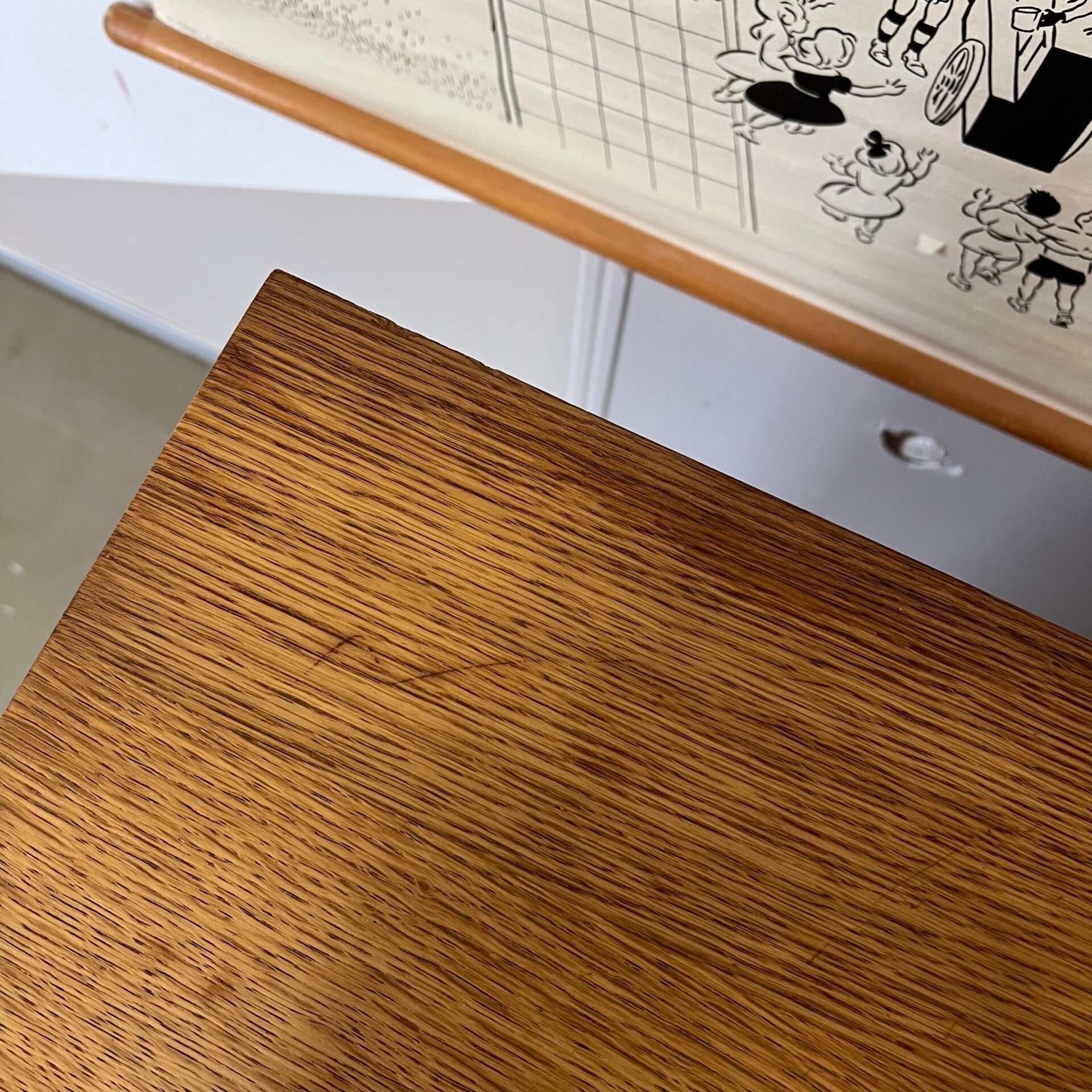 De slanke, conische pootjes zijn later toegevoegd en demontabel.