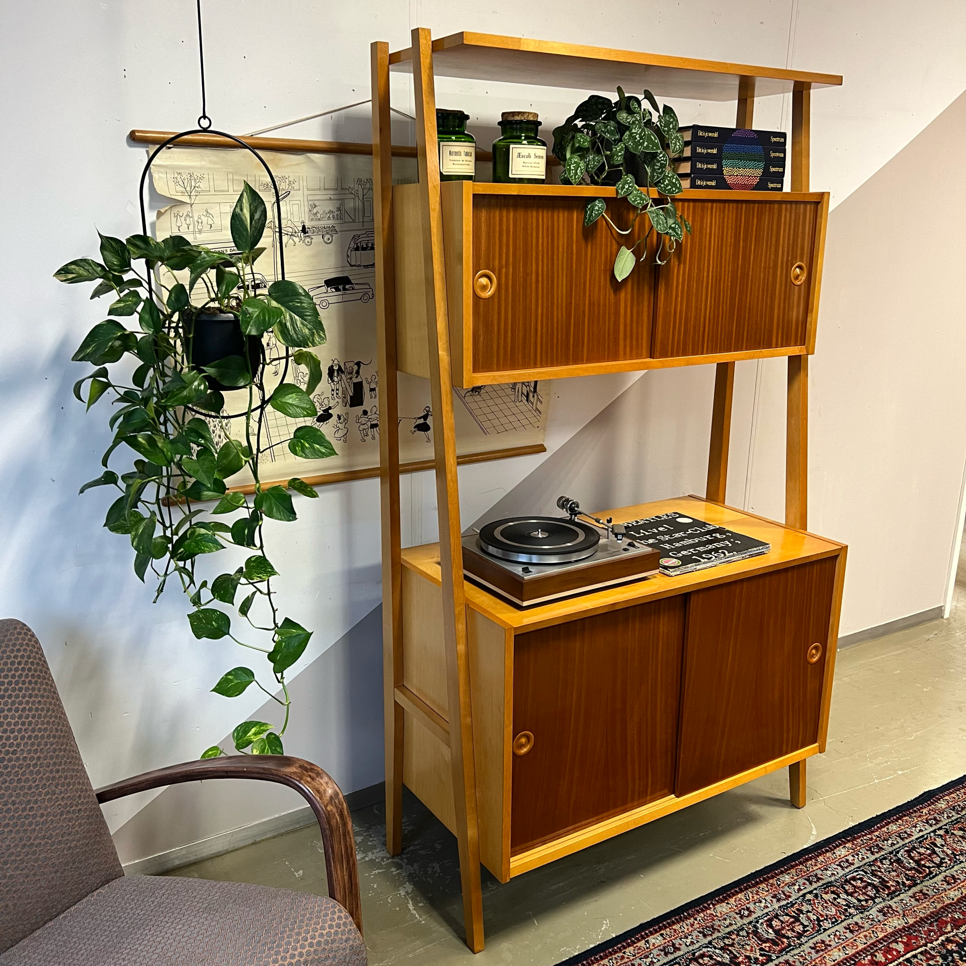 Mooi karakteristiek vintage wandmeubel uit voormalig Tsjechoslowakije, vrijstaand.