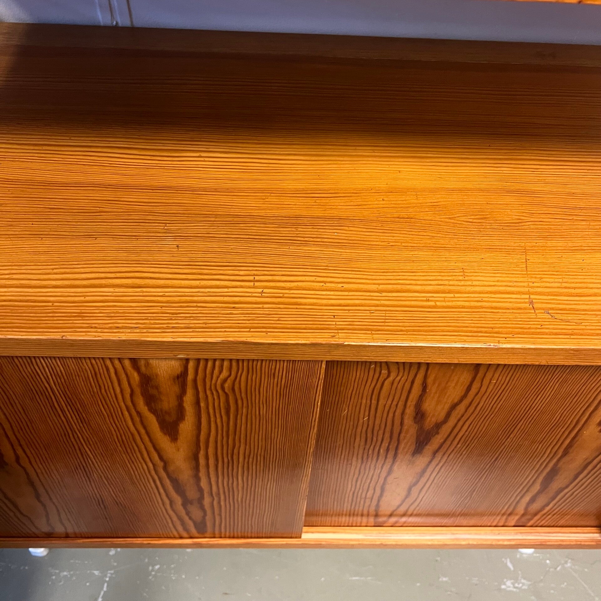 Deze kast is door de vorige eigenaar aangepast voor het inpassen van een audiomeubel. Aan de achterzijde verlengd en dragers verplaatst.
