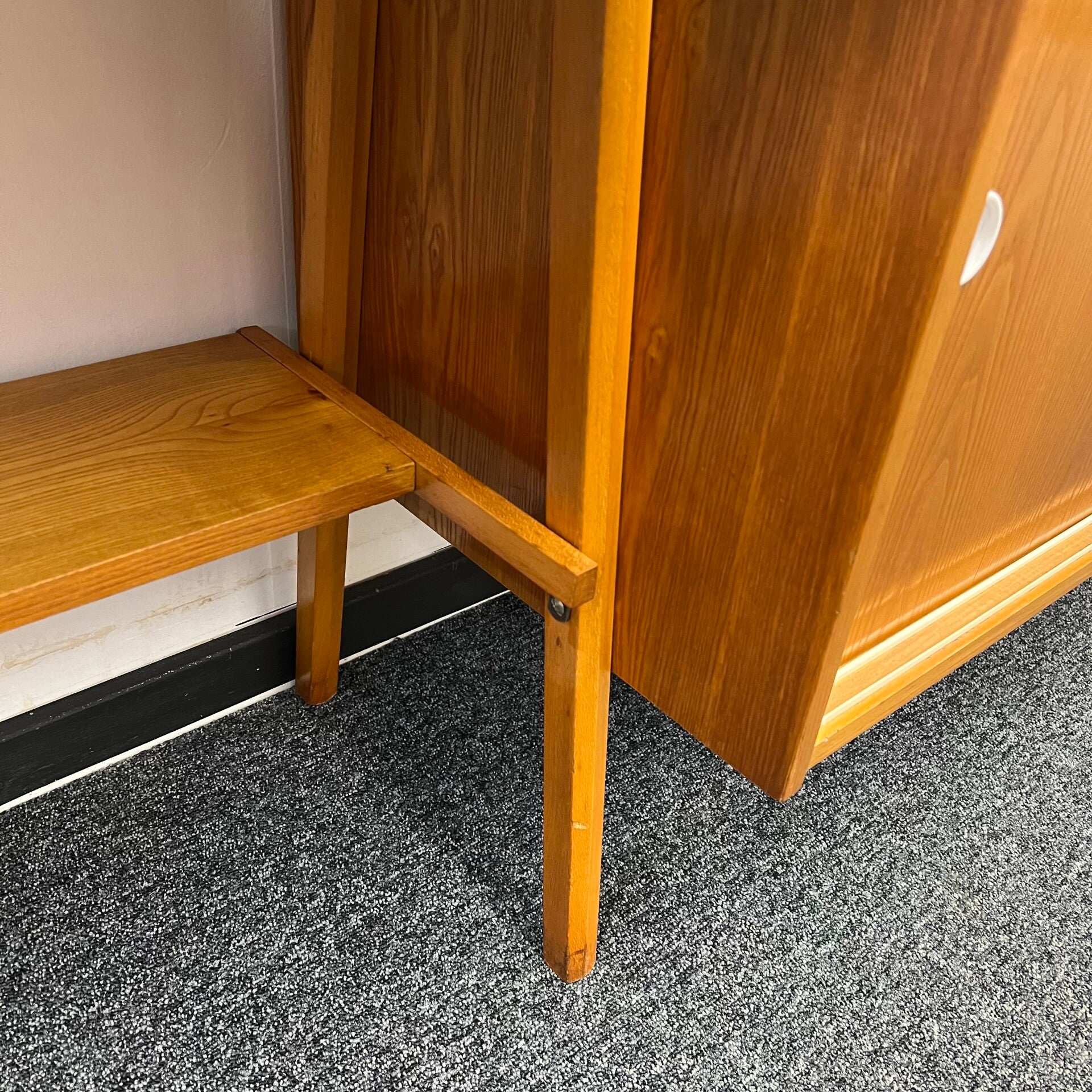 Mooi karakteristiek vintage wandmeubel (met gekoppeld bureau) uit Oost-Europa.