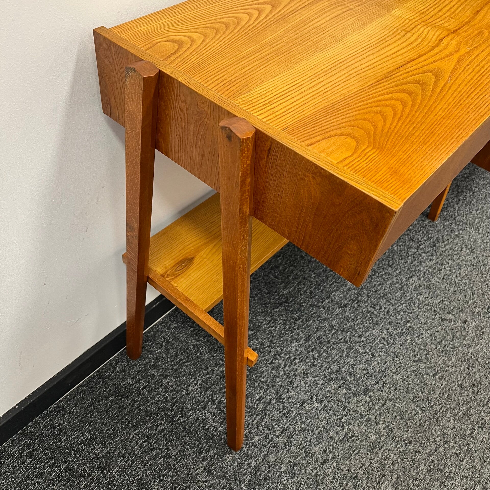 Uitgevoerd in een combinatie van eiken en essen (fineer).