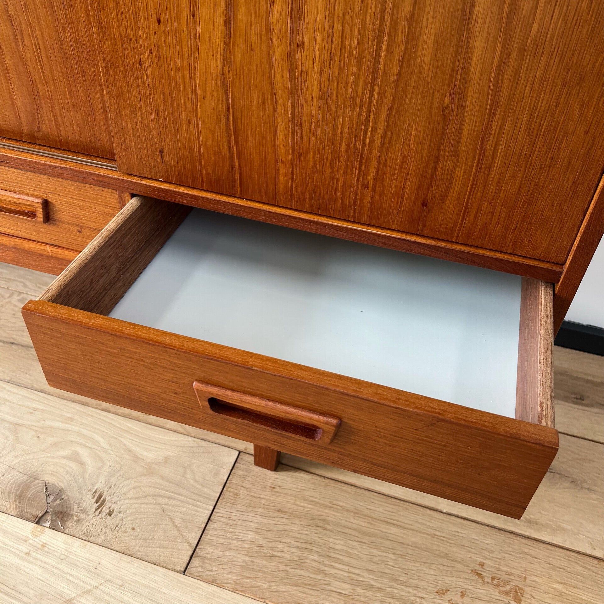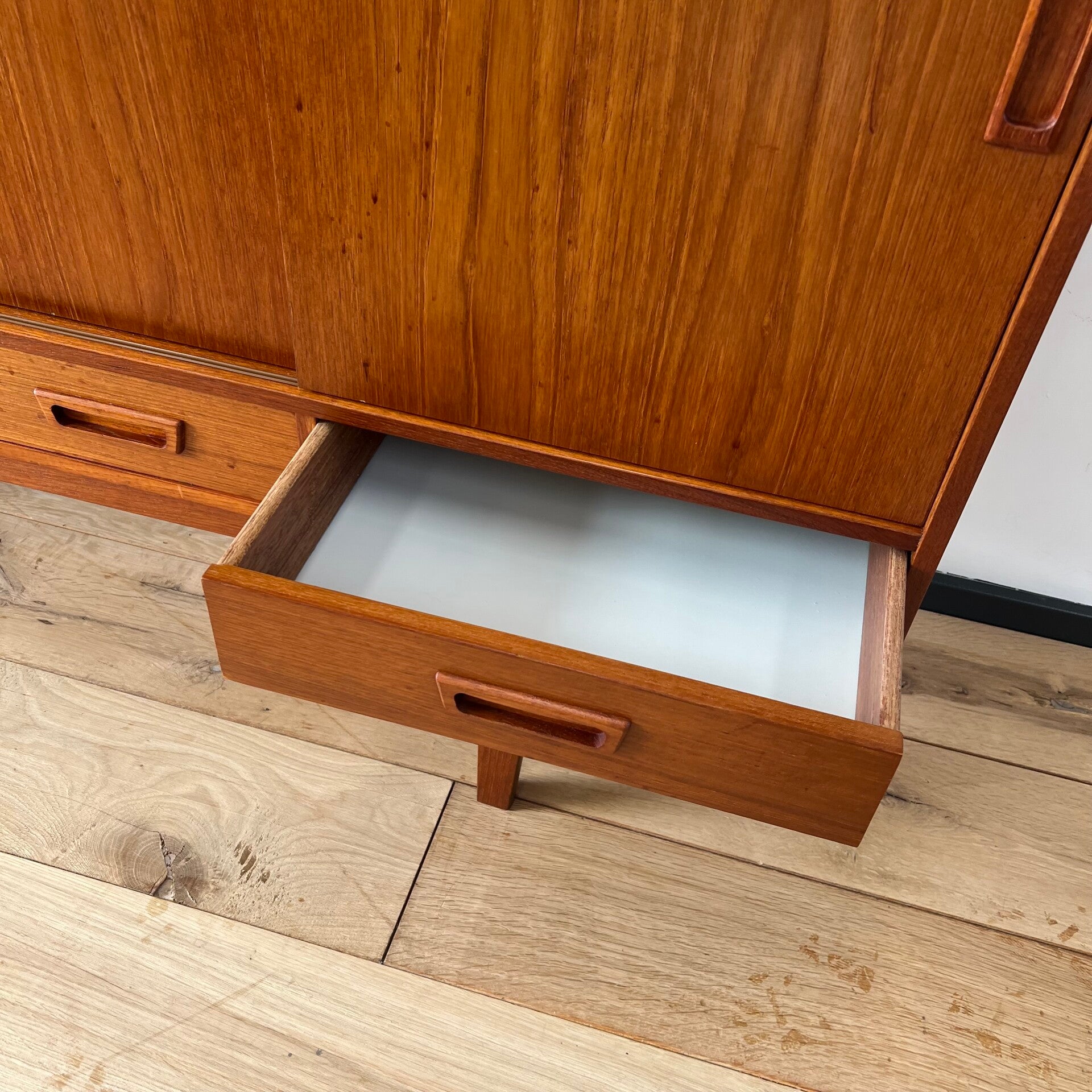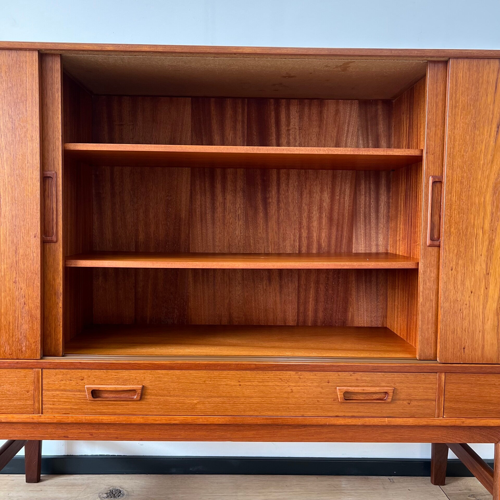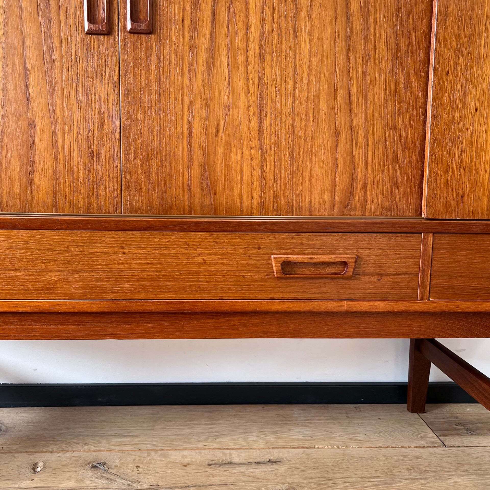 Vintage Deens highboard, buffetkast of barkast in teak.