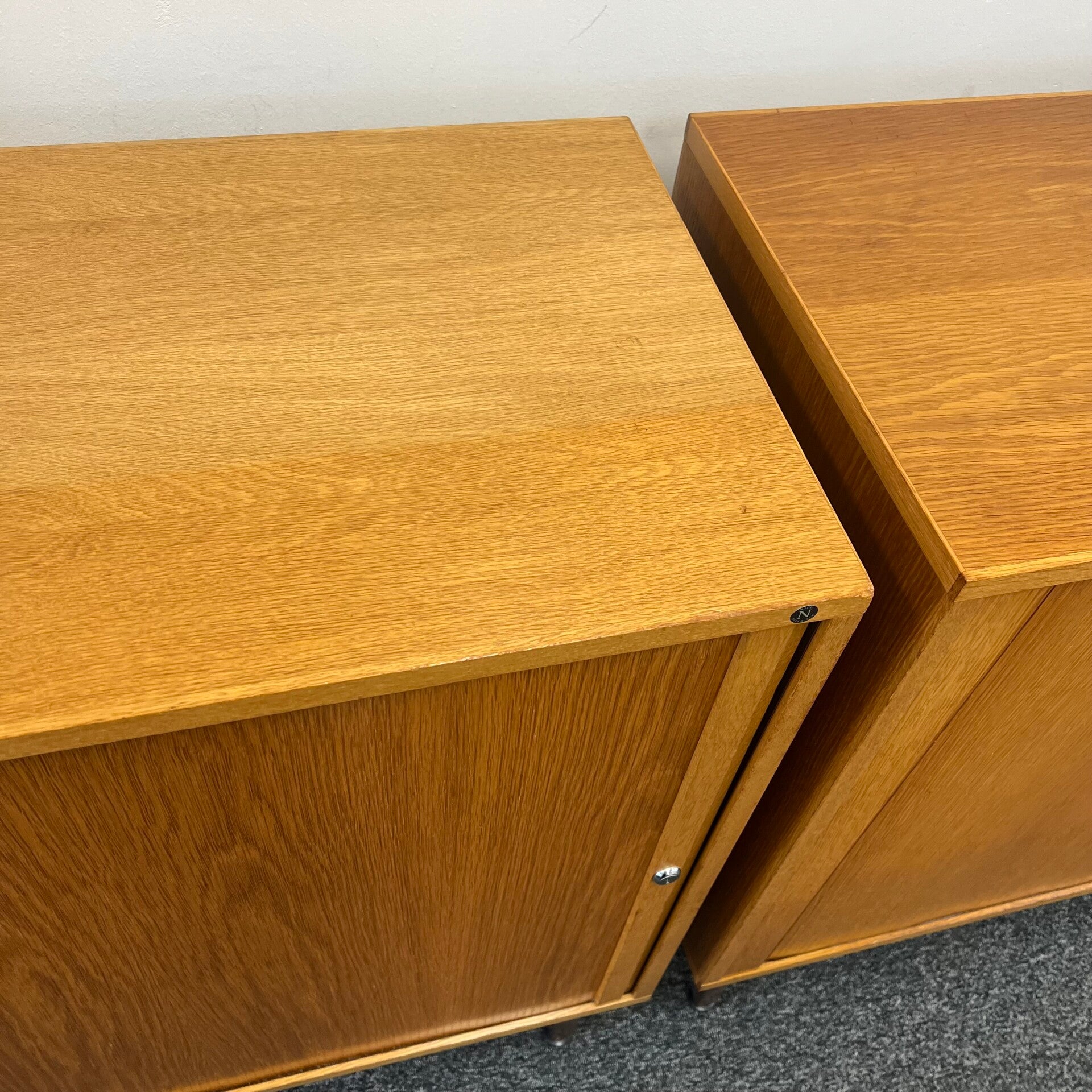 Beide kasten hebben een tamboer roldeur, welke mooi aan de binnenzijde wegrolt, en een slot (geen sleutels aanwezig).