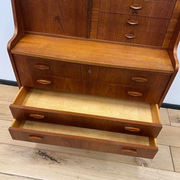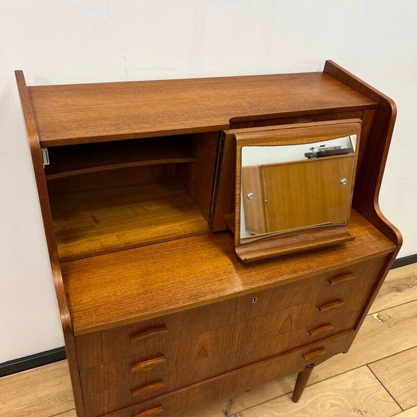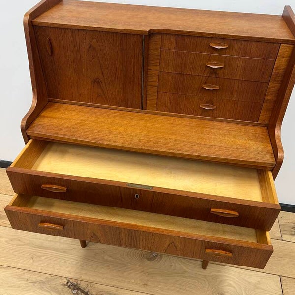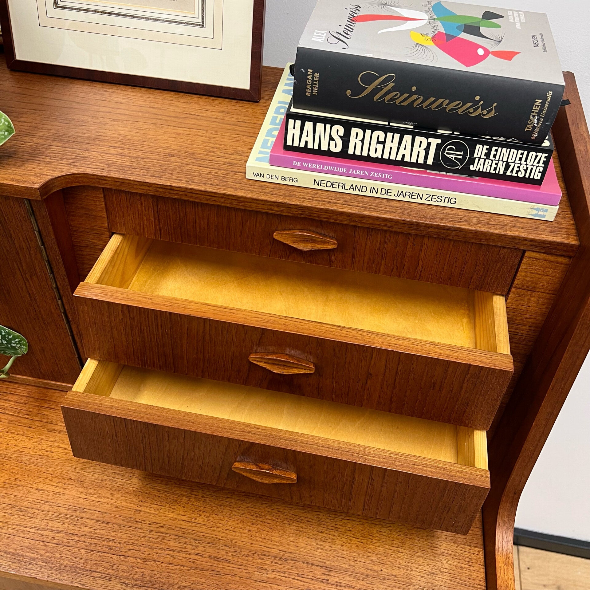 Mooie vintage Deens chatol, secretaire uitgevoerd in teak (fineer).