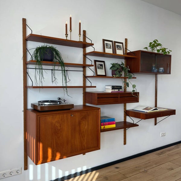 Prachtig vintage wandmeubel, wall unit ontworpen door de iconische Deense designer Poul Cadovius voor Royal System in de jaren 60.