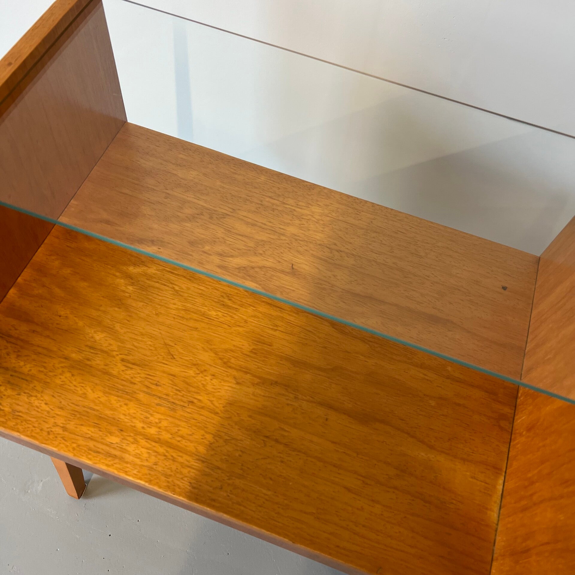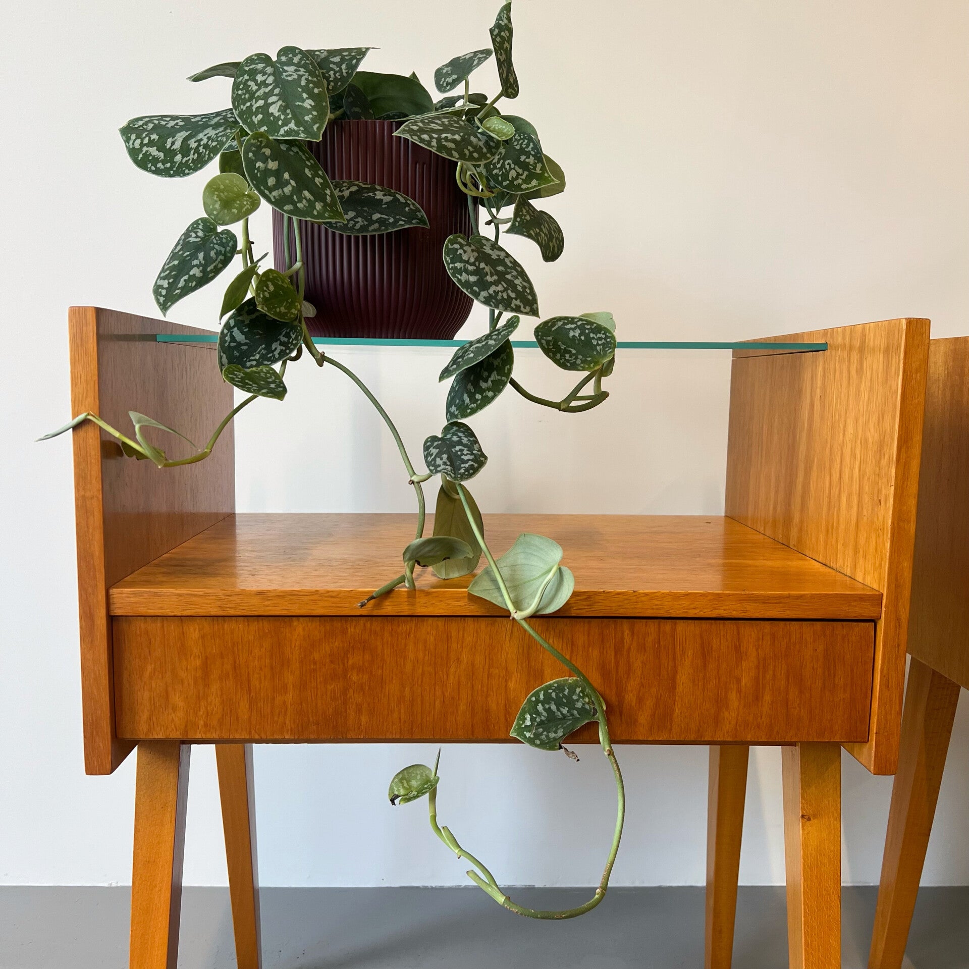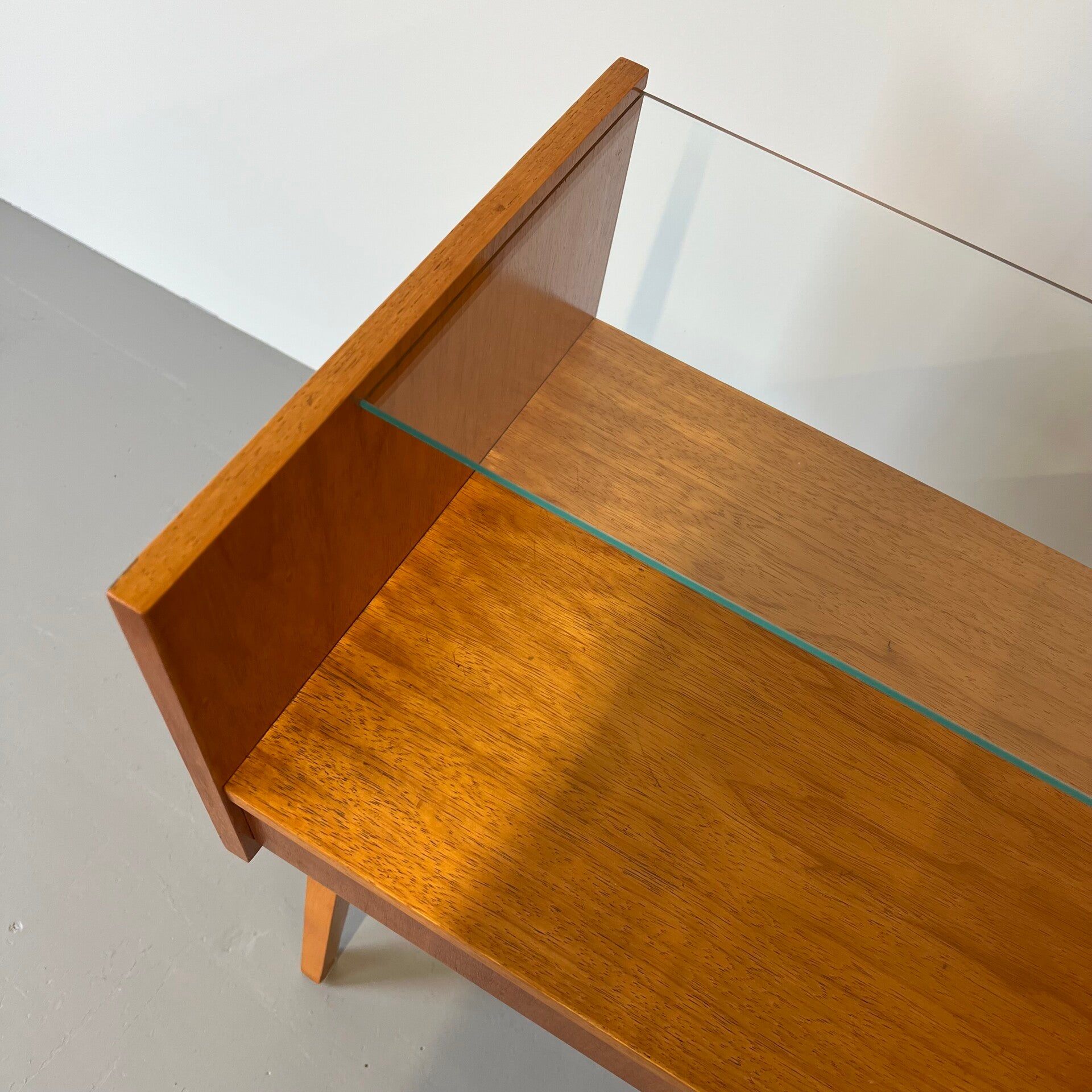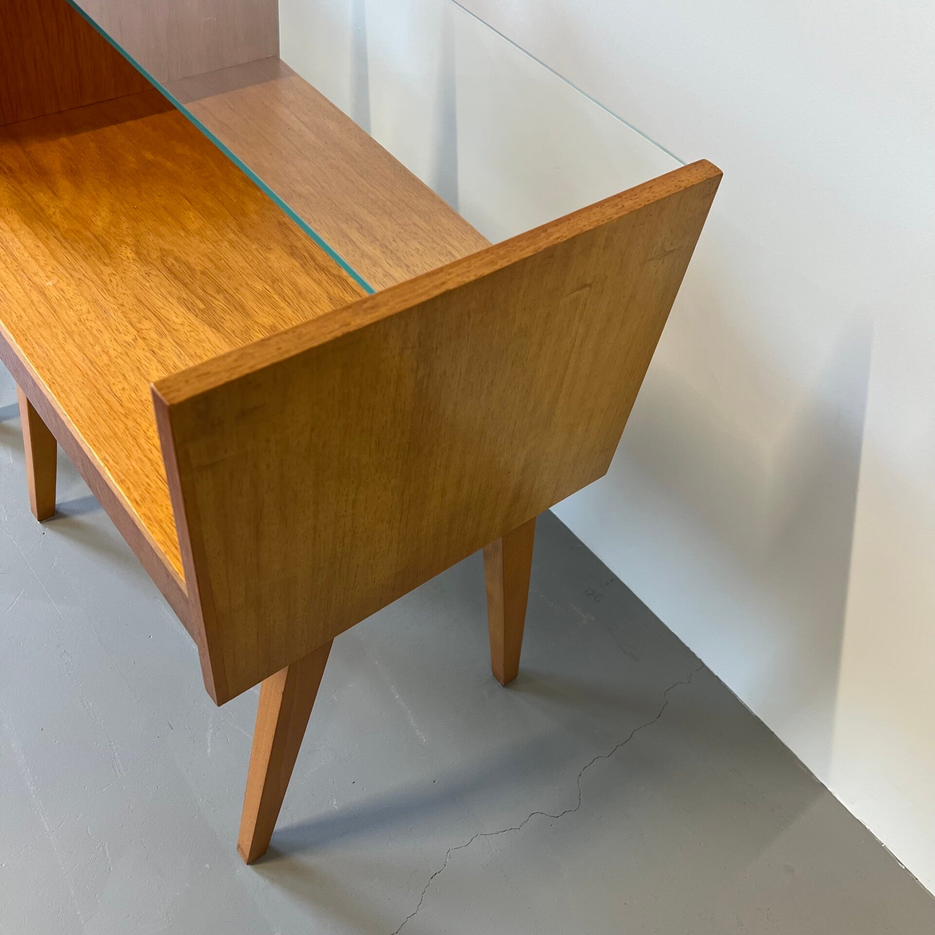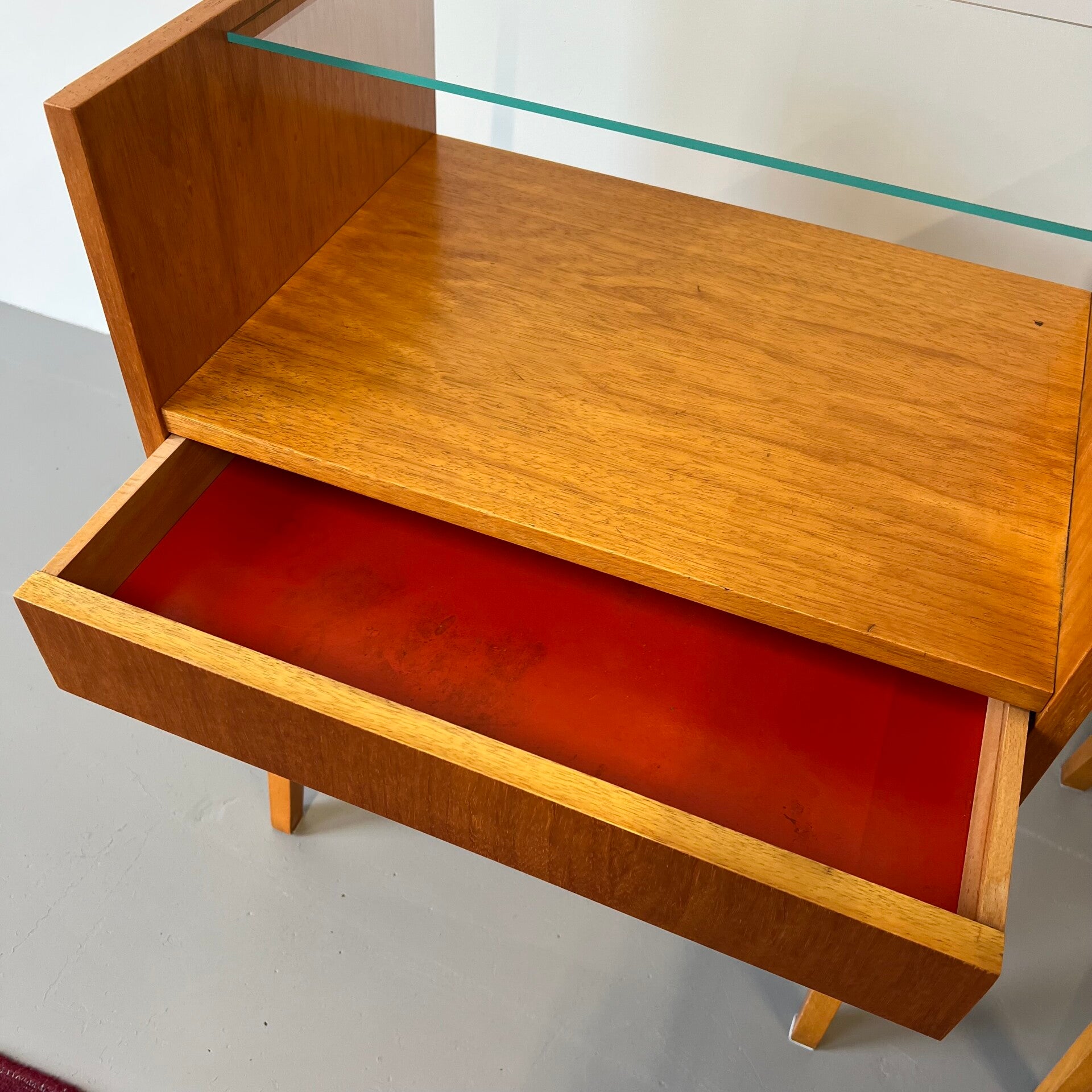 2 leuke vintage (nacht) kastjes met glazen plaat en hoge slanke poten.
