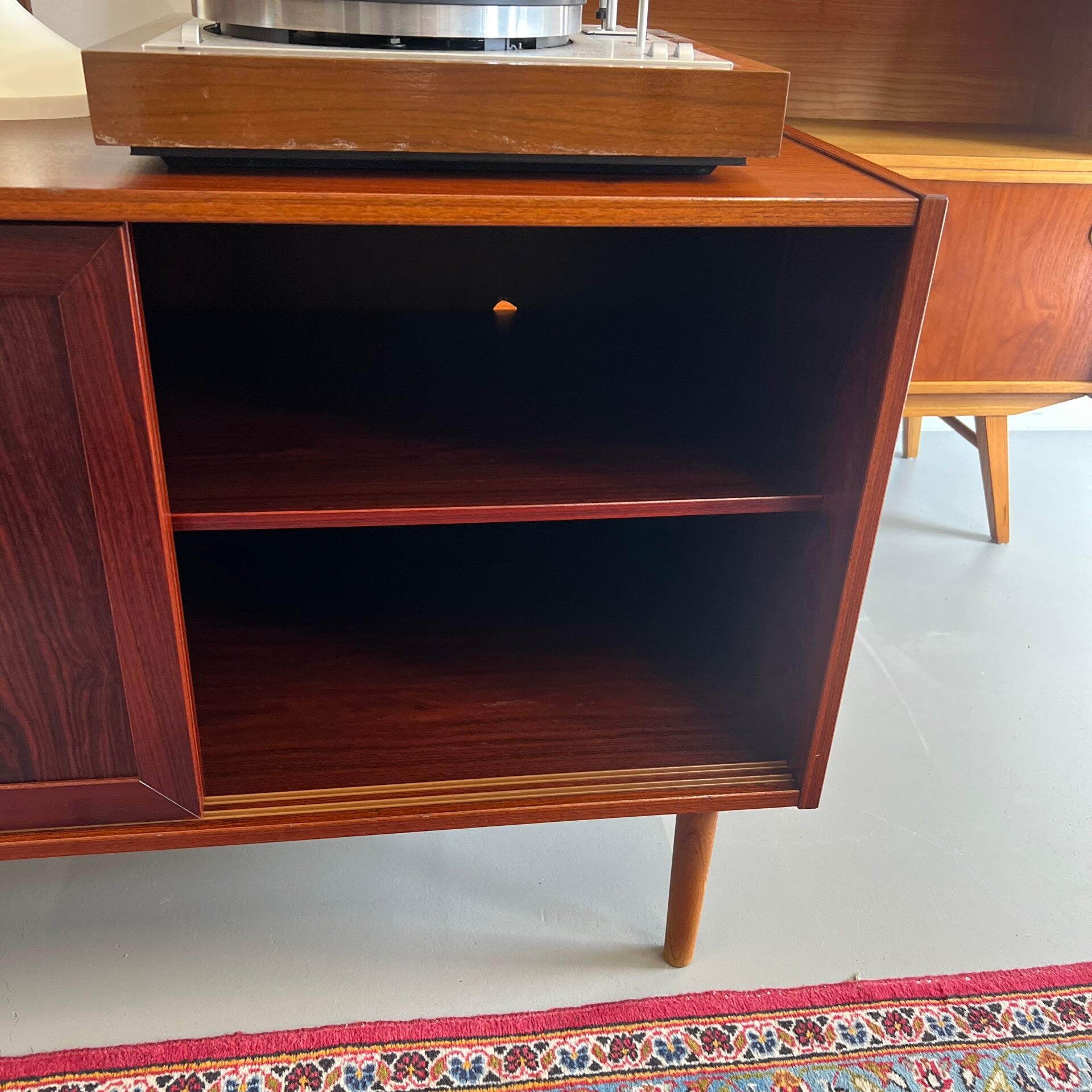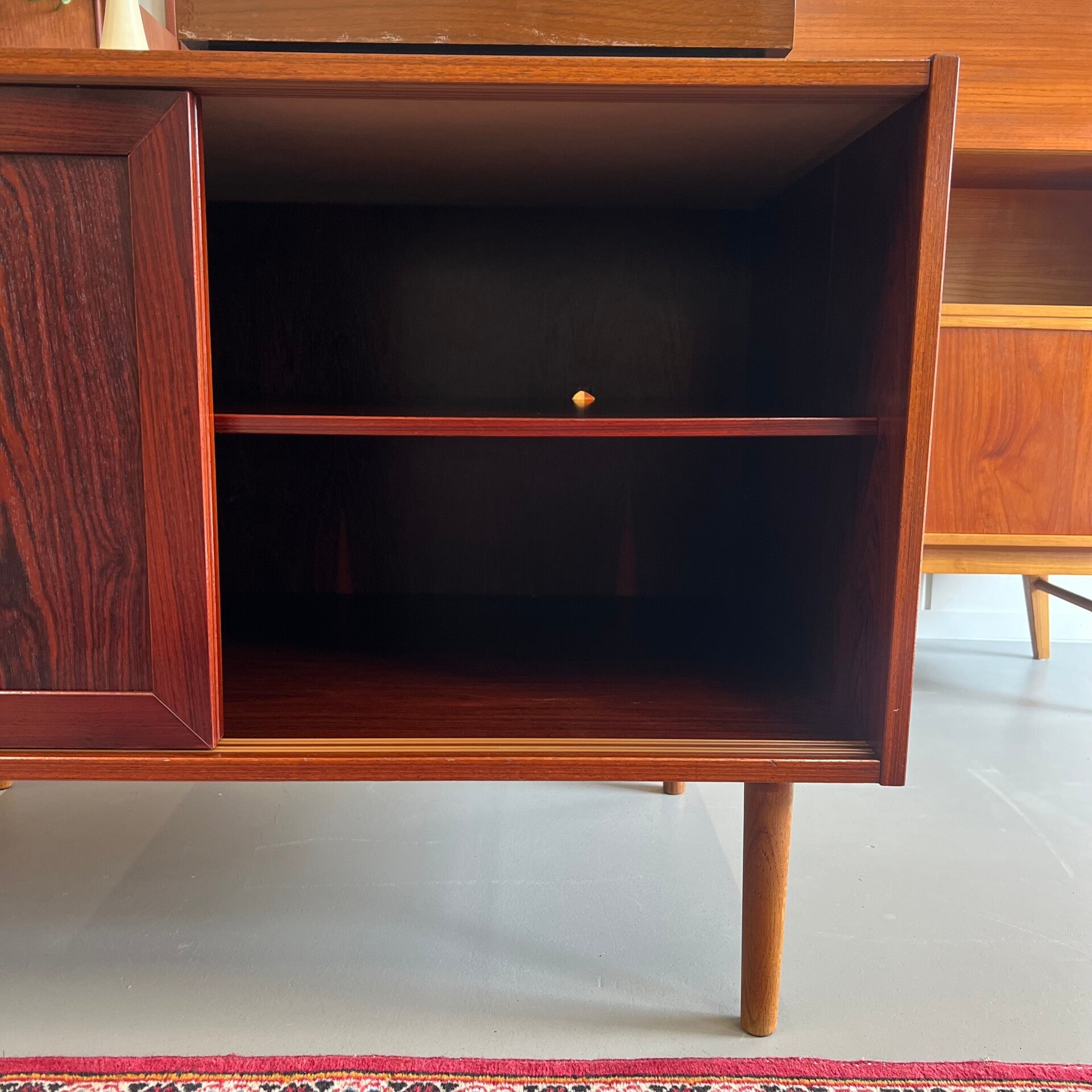 Vintage schuifdeurkast, dressoir of audiomeubel uitgevoerd in rosewood (palissander) fineer.