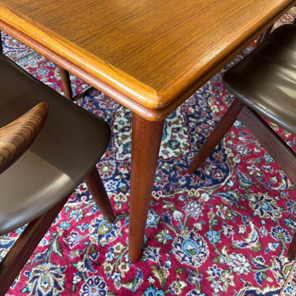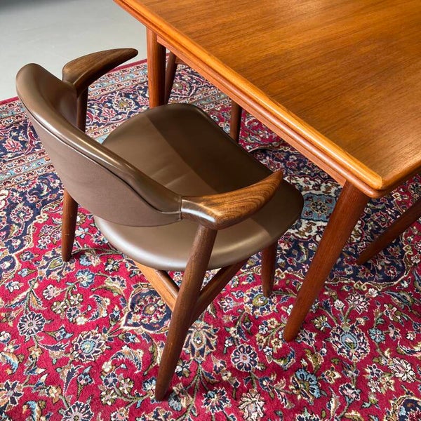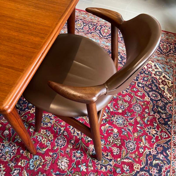 Fantastische set van 4 koehoorn (cowhorn) eetkamerstoelen in massief teakhout.