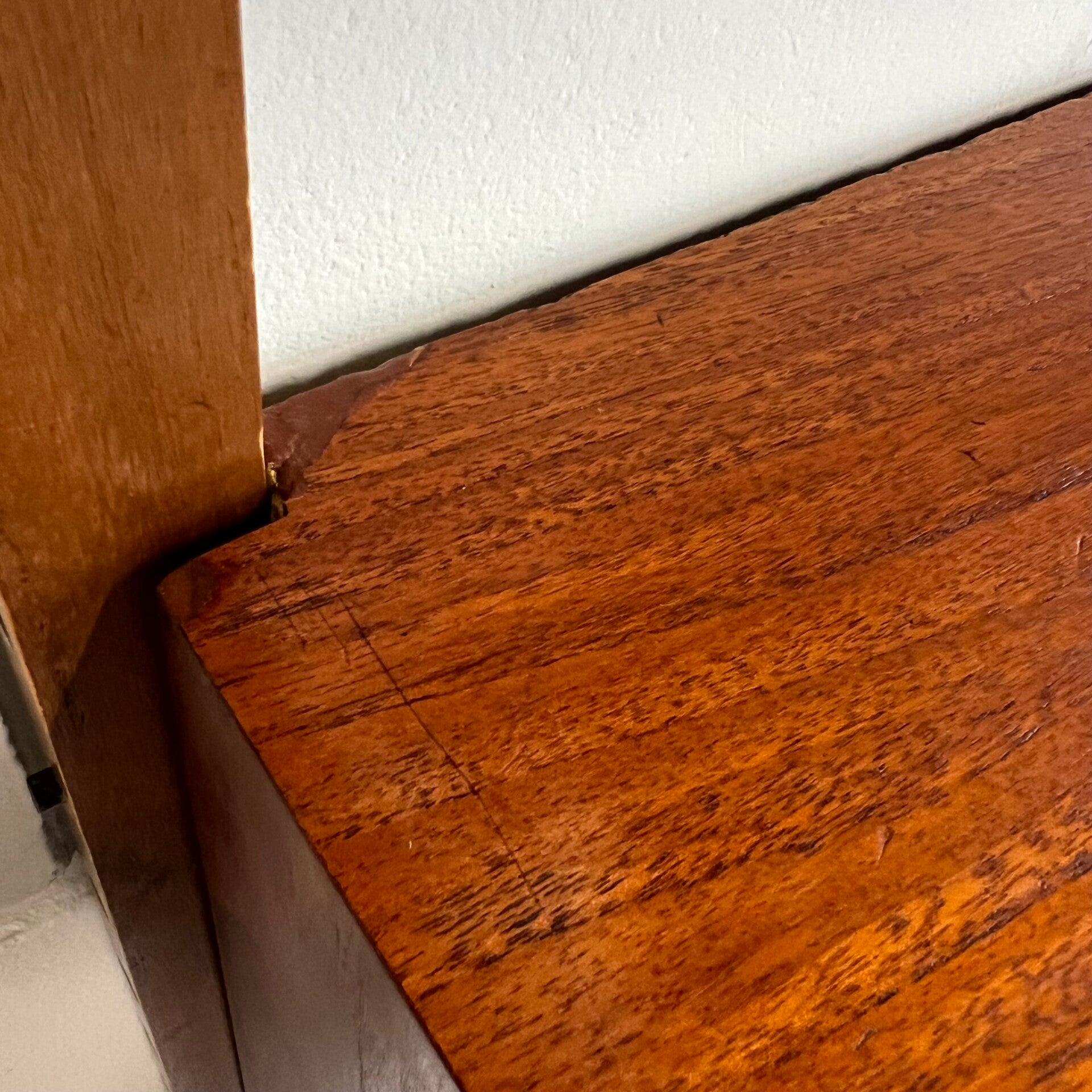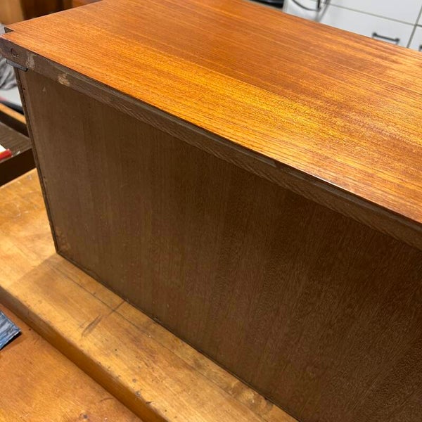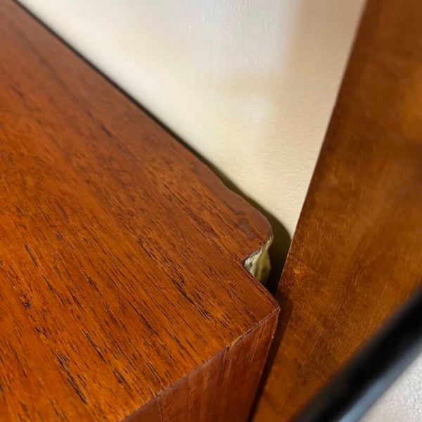 De klepkast is aan de achterzijde beschadigd geweest, dit is door de vorige eigenaar verstevigd met een houten plank. Hangend in het systeem is dit onzichtbaar.
