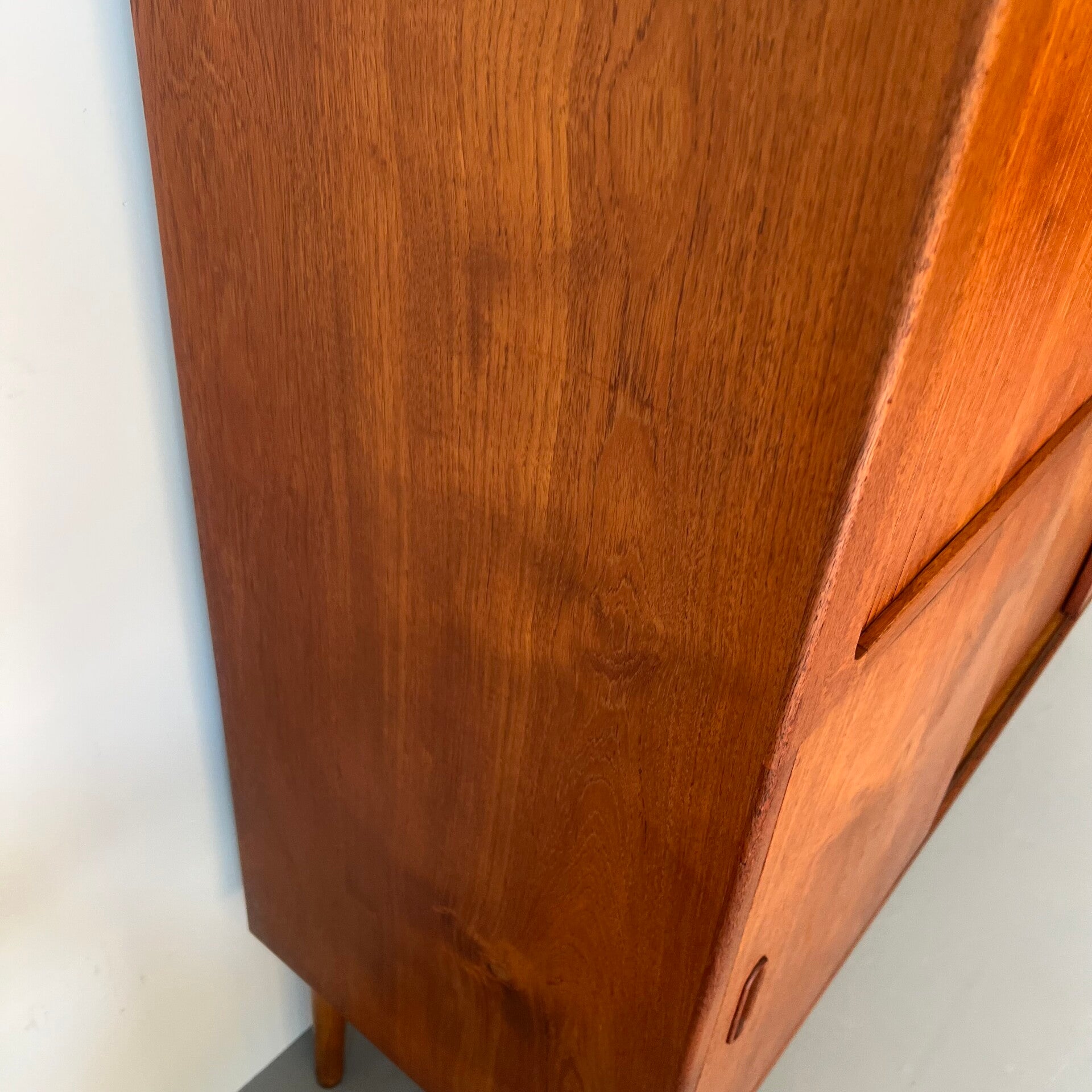 Mooi vintage highboard, uitgebreid in teak en afkomstig uit Denemarken.