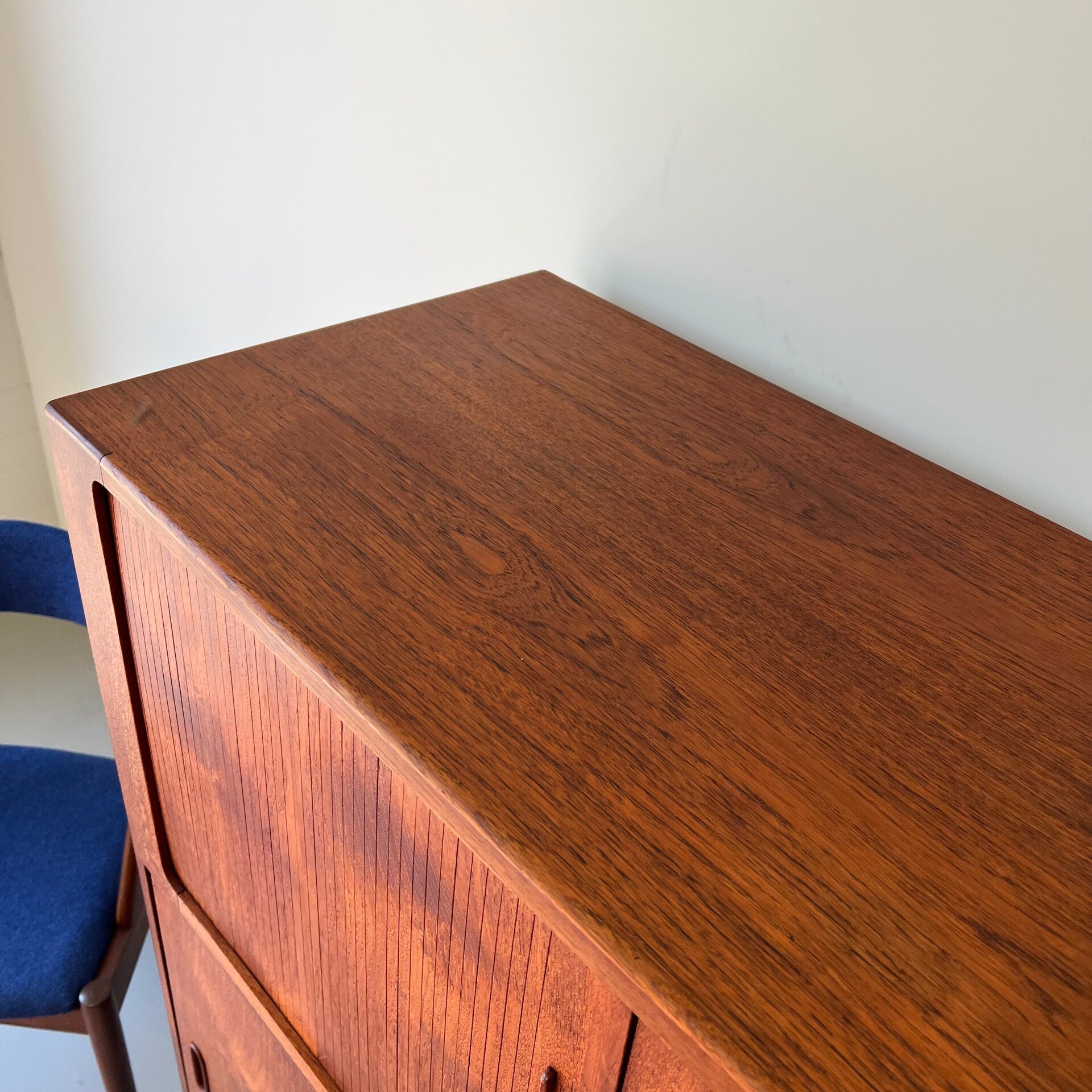 Het meubel heeft bovenin aan weerszijden prachtige tambour deurtjes met een uitneembare plank.