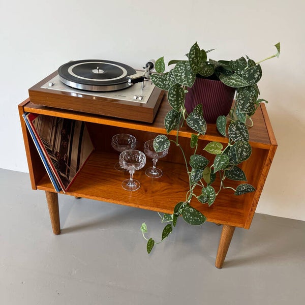 Leuk open vintage kastje, afkomstig uit Denemarken en uitgevoerd in teak.