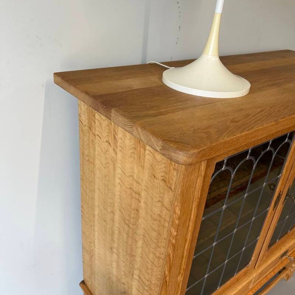 Prachtige massief eiken buffetkast, vitrinekast ontworpen door de Deen Henning Kjaernulf in de jaren 60.