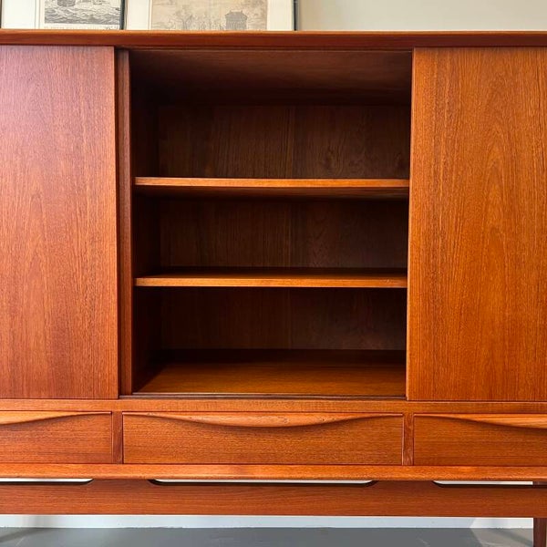 Prachtig vintage highboard, buffetkast of servieskast uitgevoerd in teak (massief / fineer).
