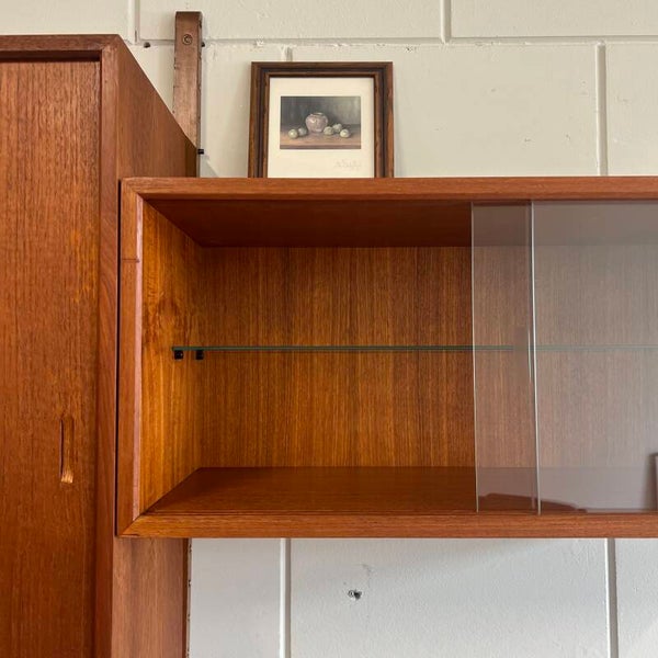 2x vitrinekast met glazen schuifruitjes en uitneembare glazen plaat -