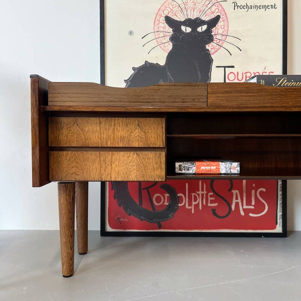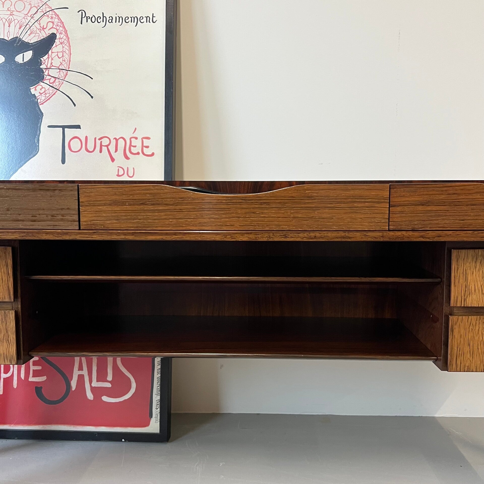 Onderop aan weerszijden 2 lades met in het midden 2 planken.