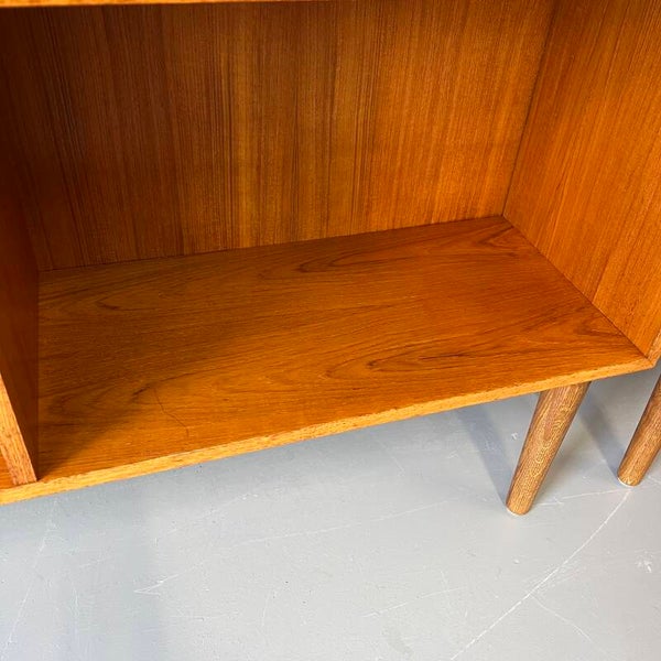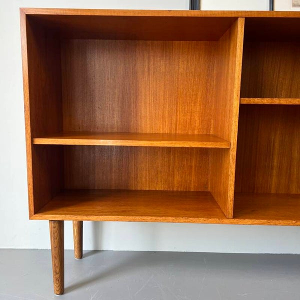 Mooi vintage dressoir of boekenkast, bestaande uit 2 losse delen en uitgevoerd in teak (fineer).