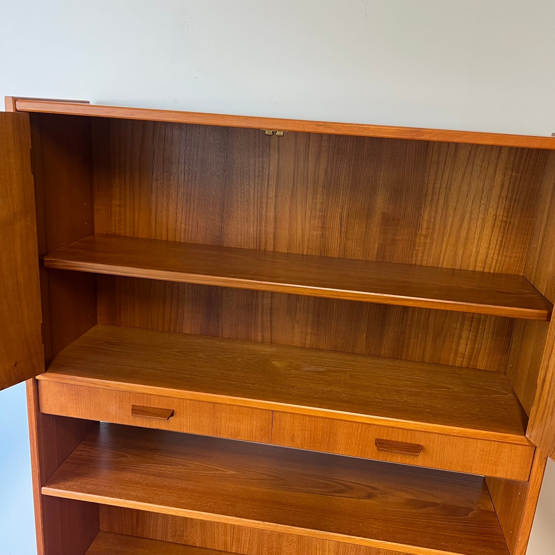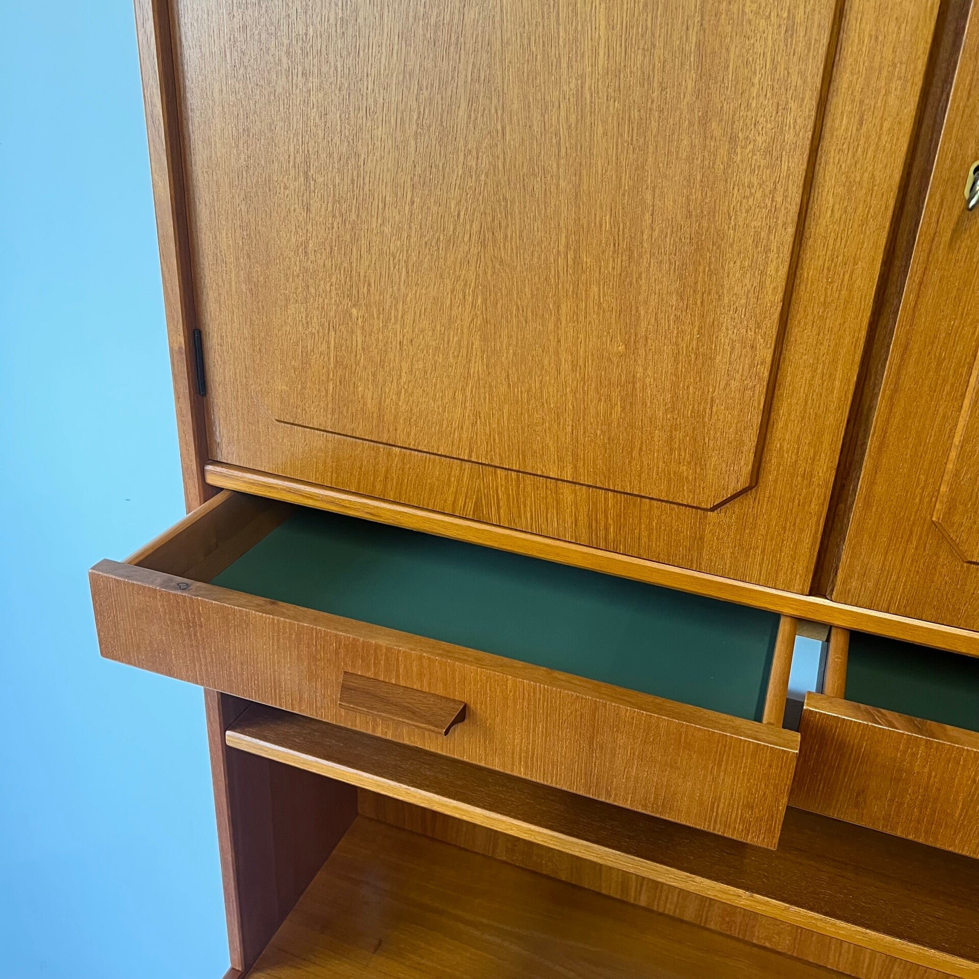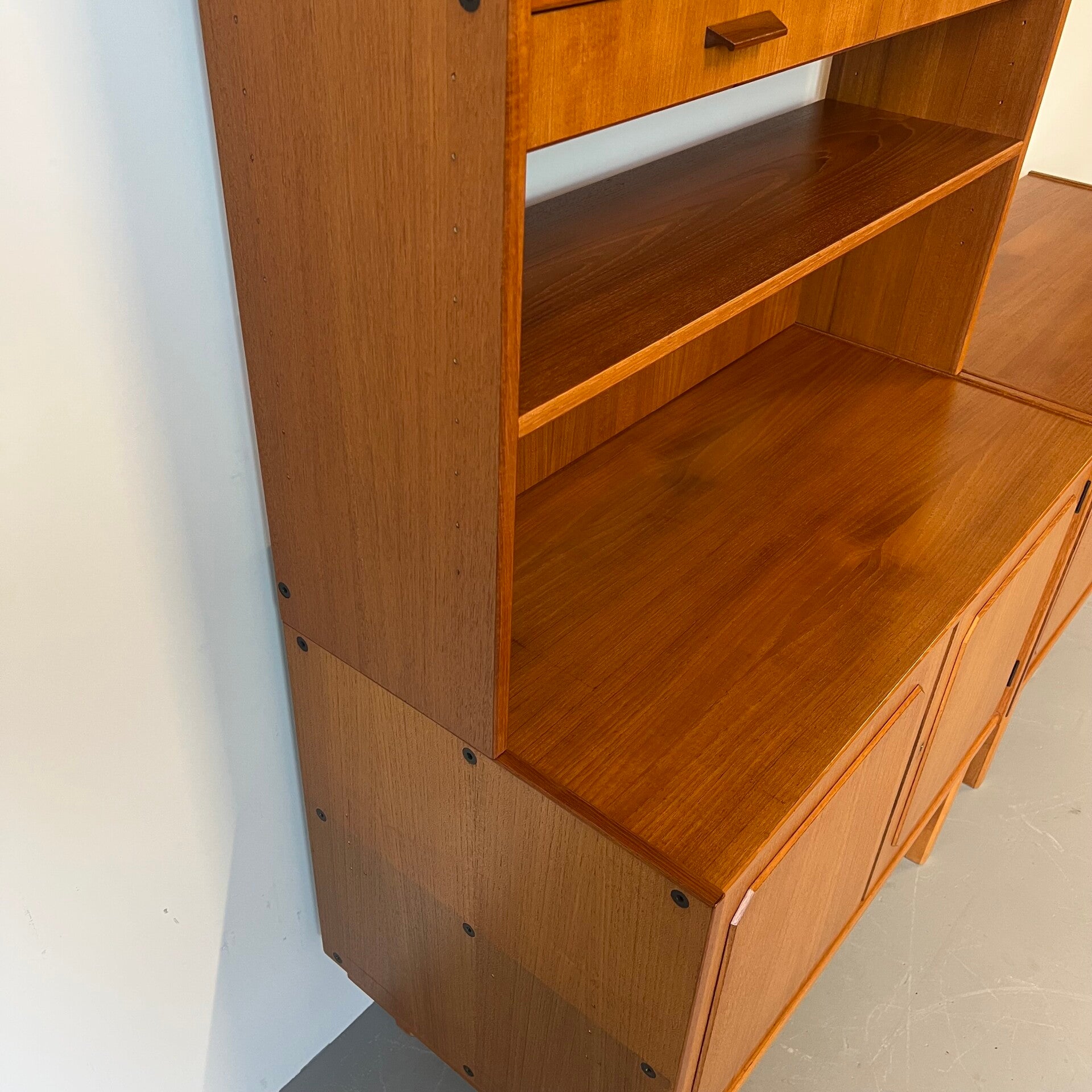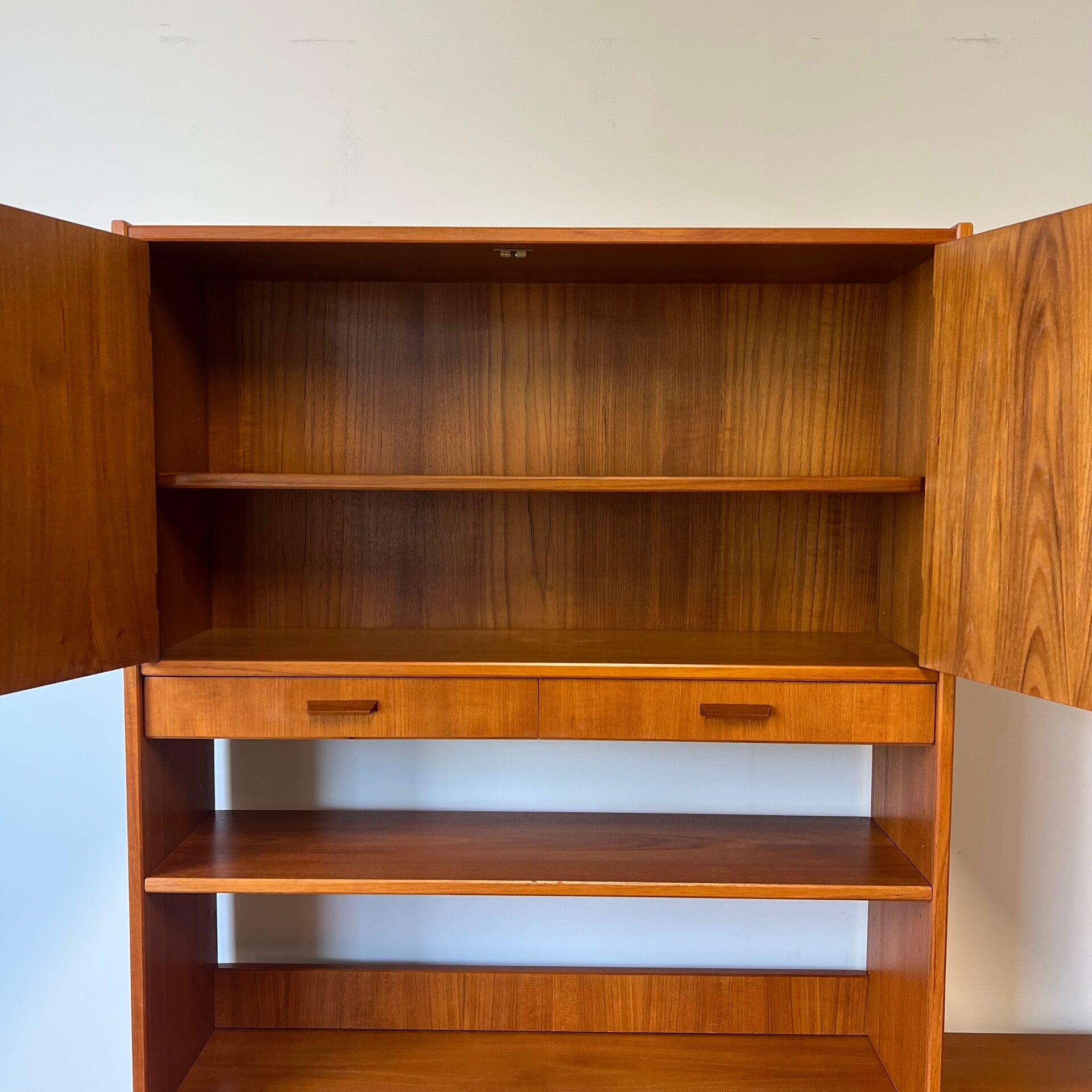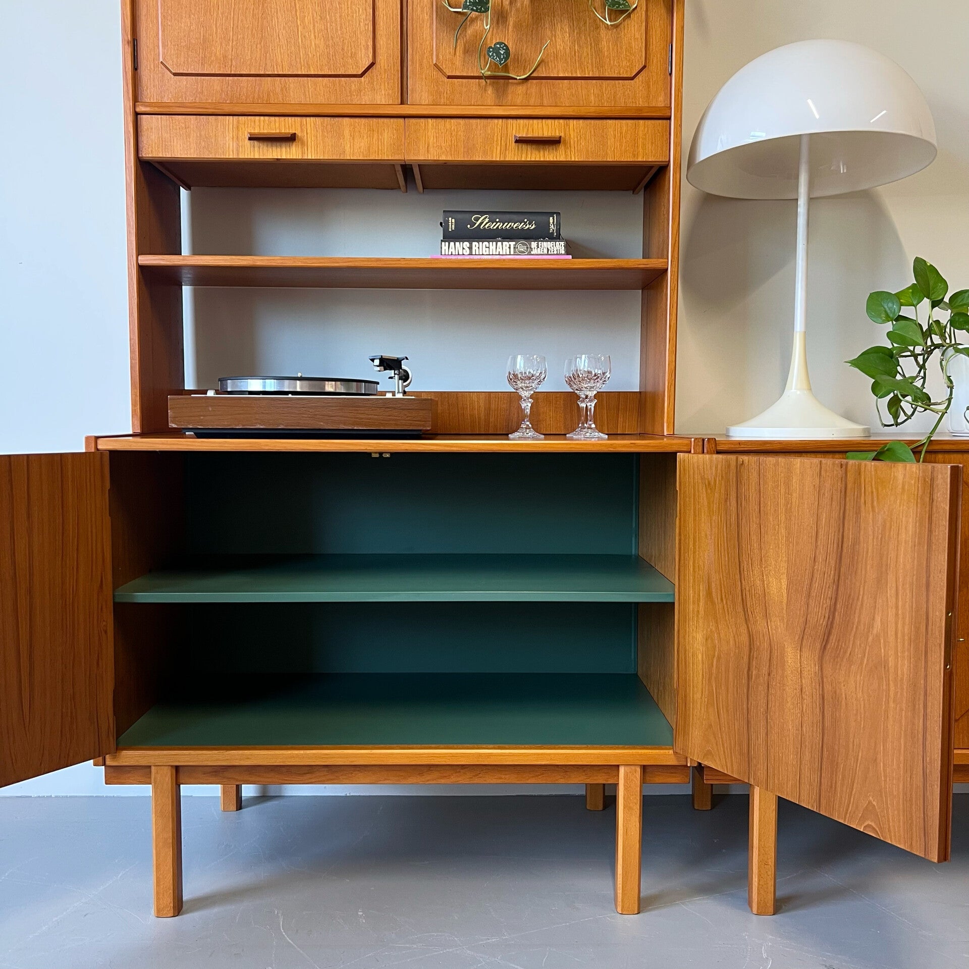 Mooi vintage wandmeubel of highboard in teak (fineer).
