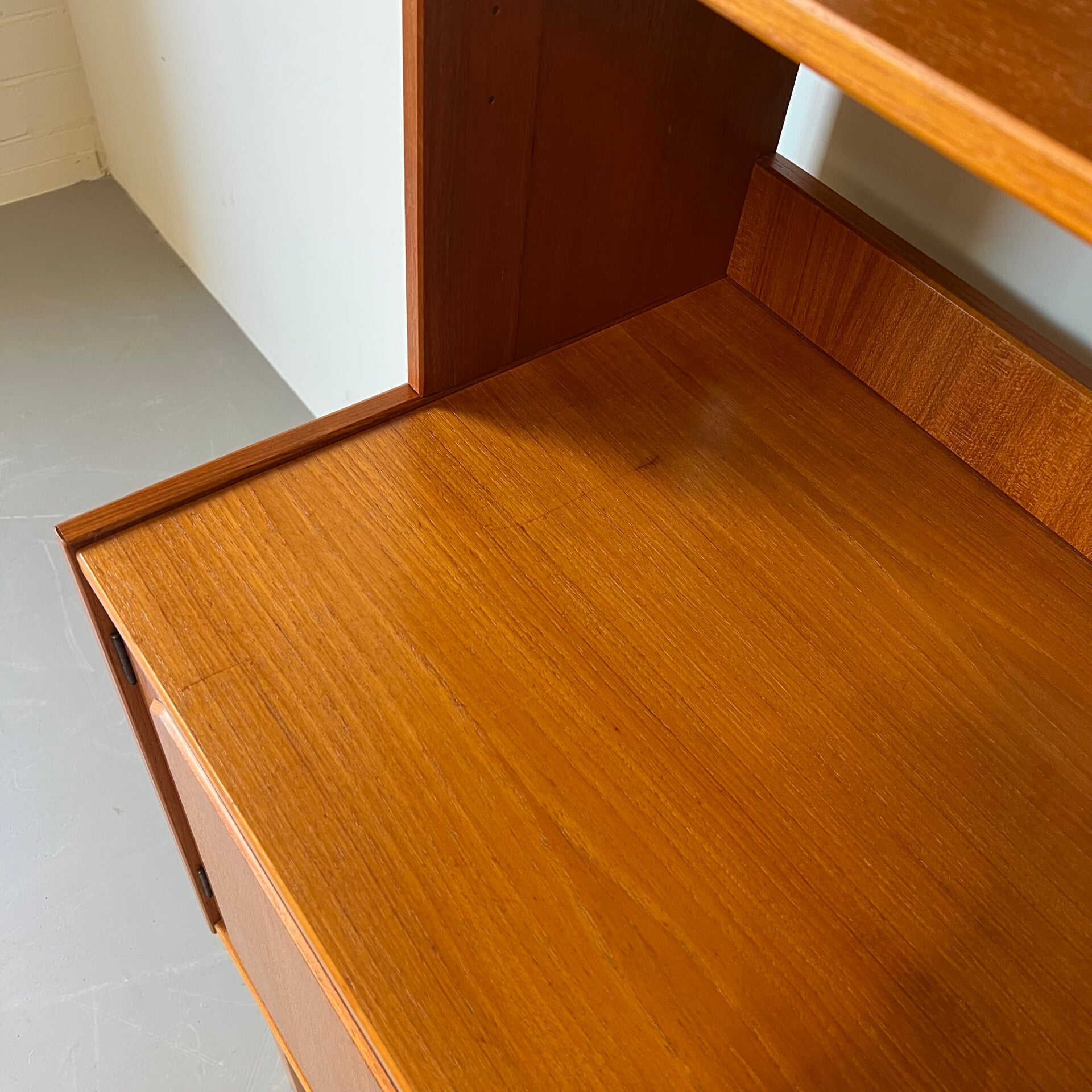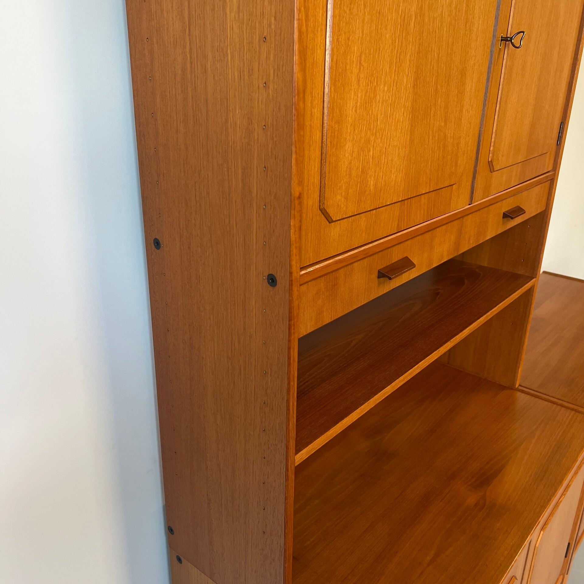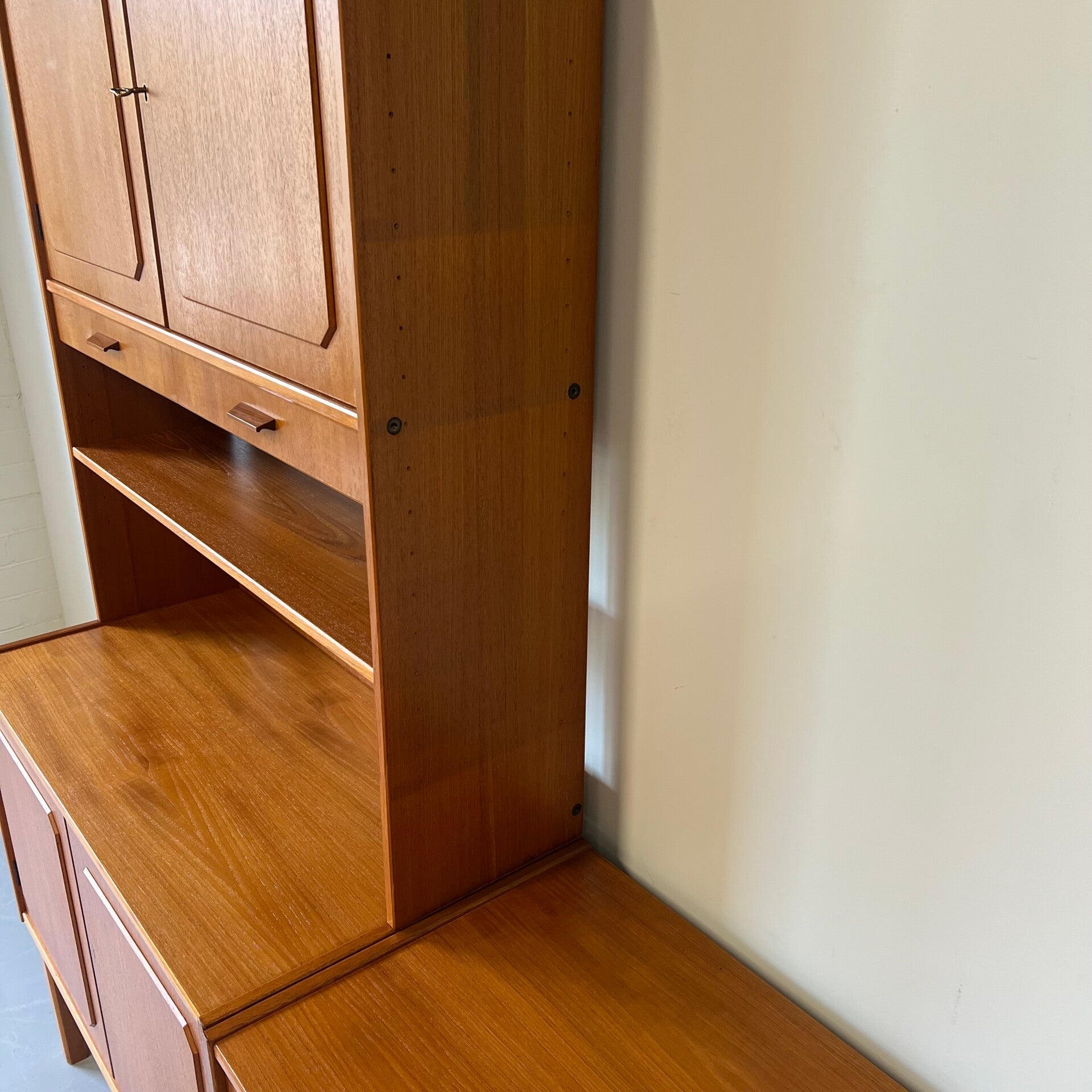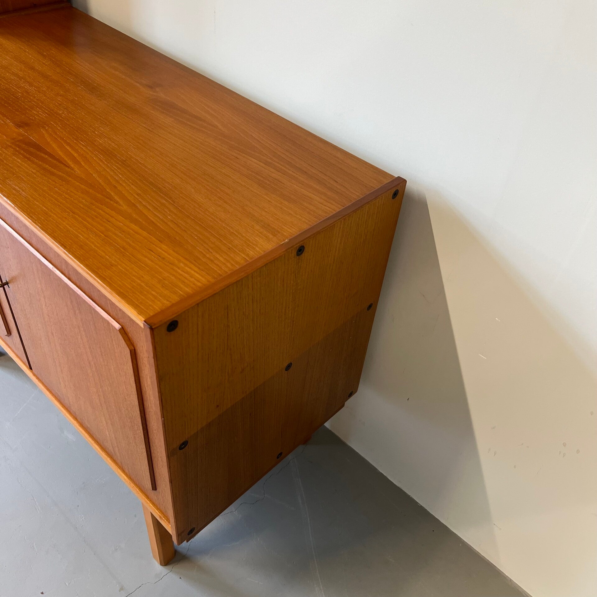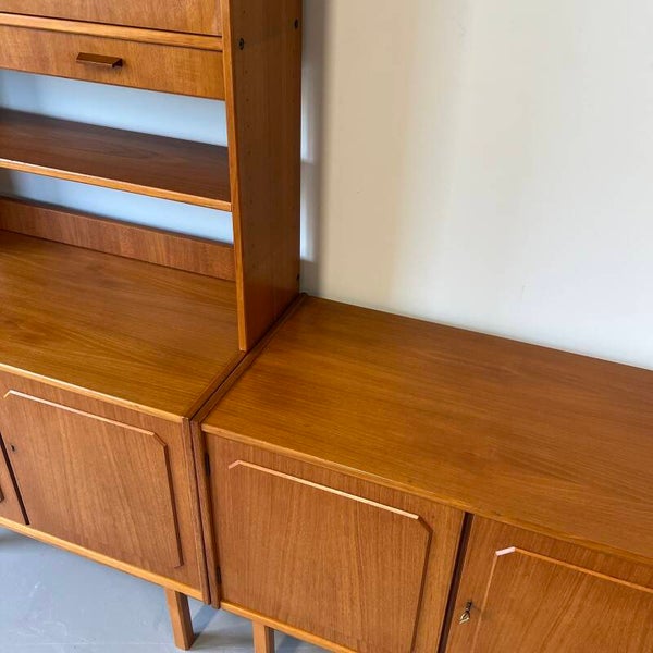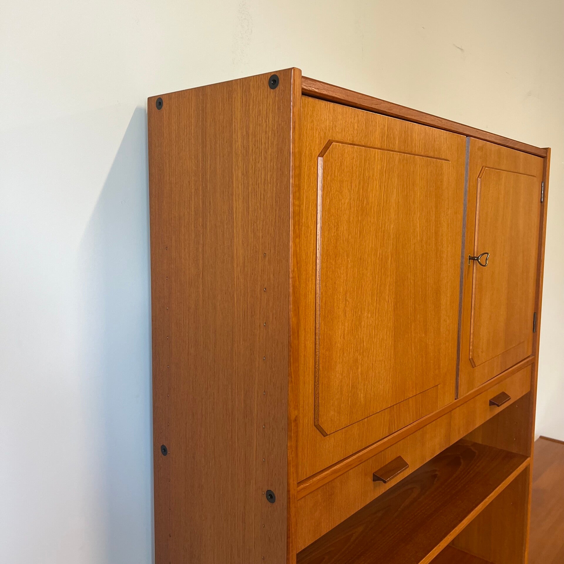 Mooi vintage wandmeubel of highboard in teak (fineer).