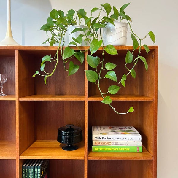 Prachtige vintage boekenkast, uitgevoerd in teak (fineer).