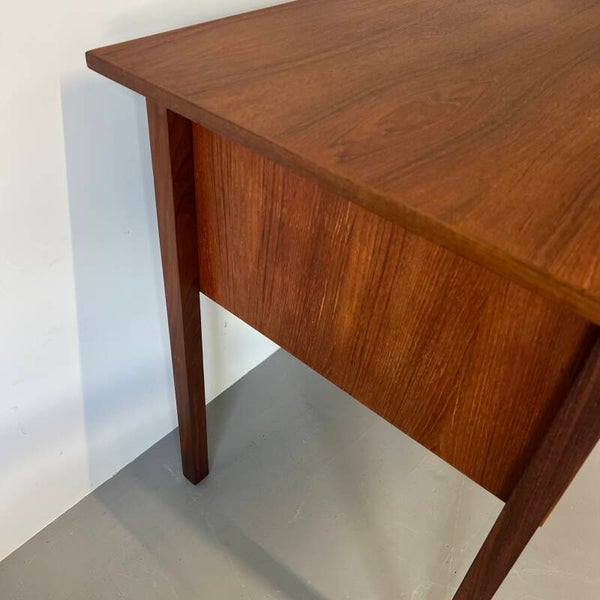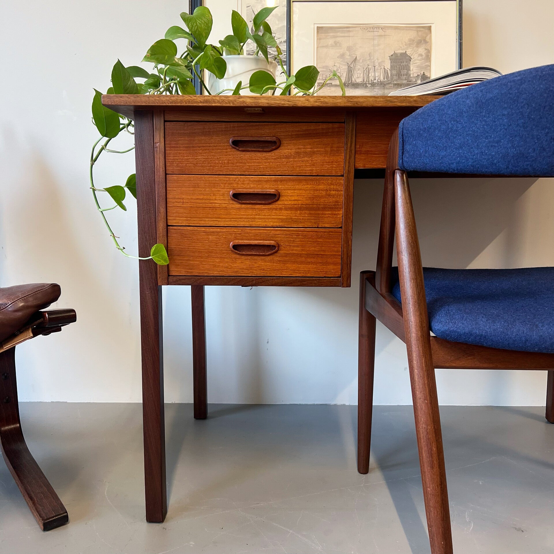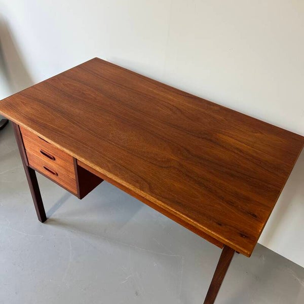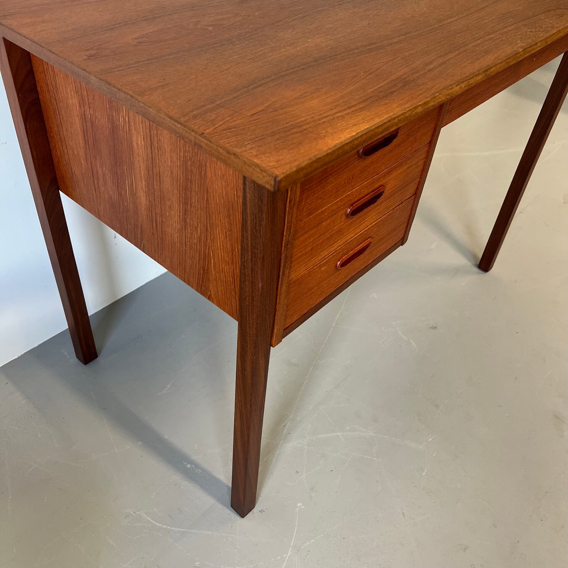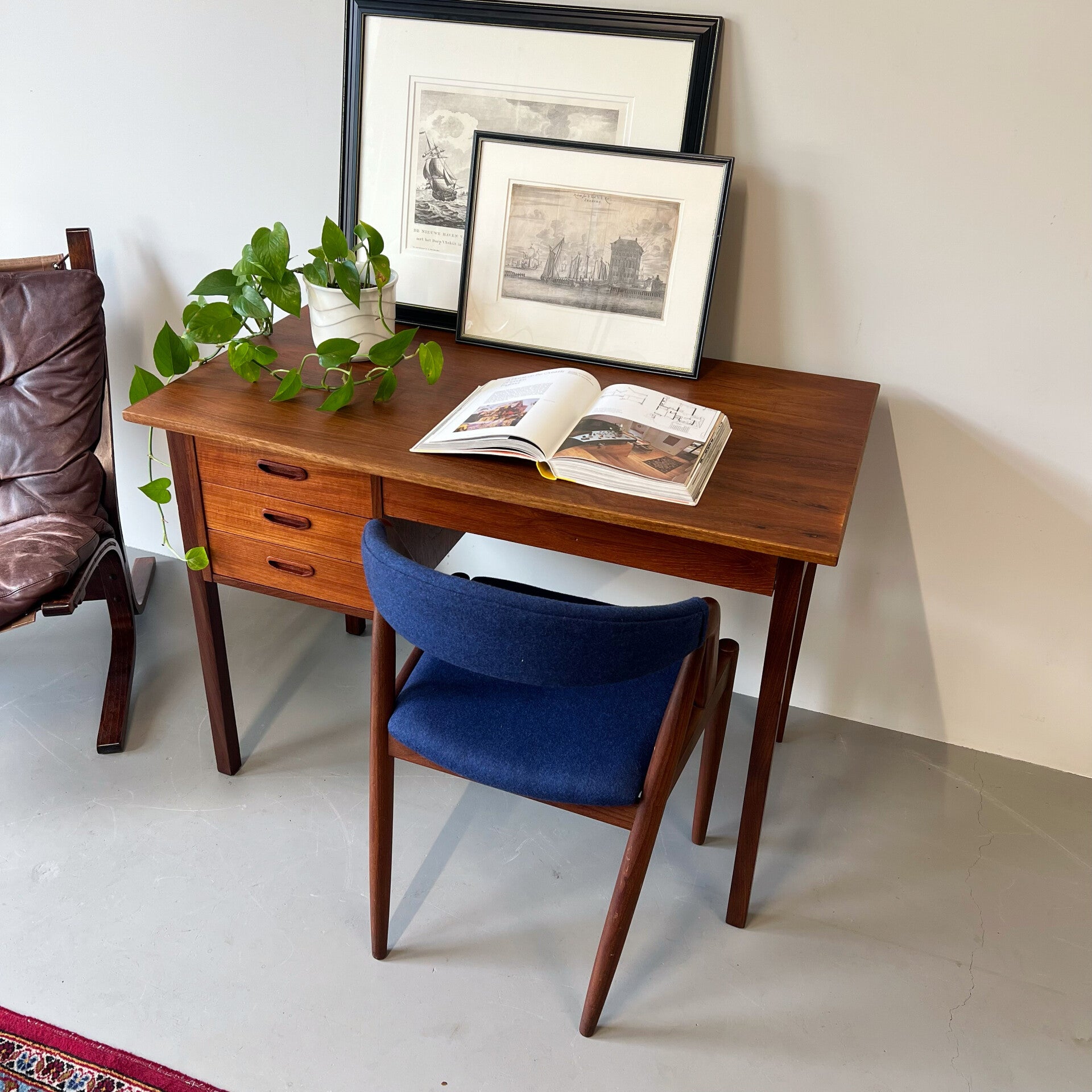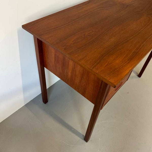 Leuk Deens bureau, uitgevoerd in teak (fineer) en op slanke poten.