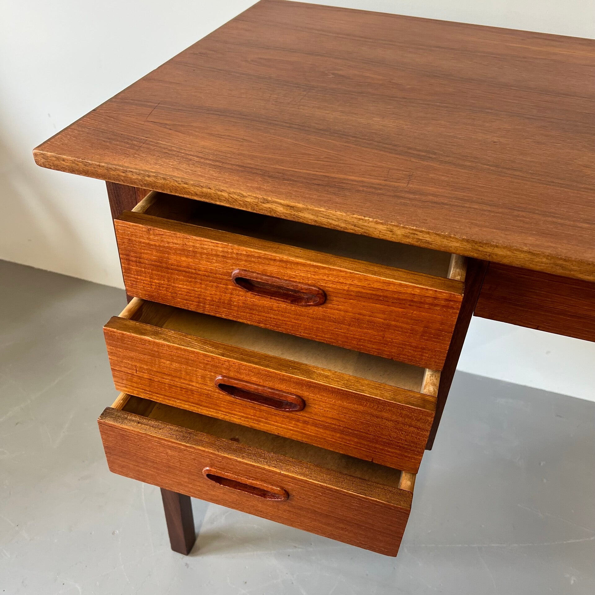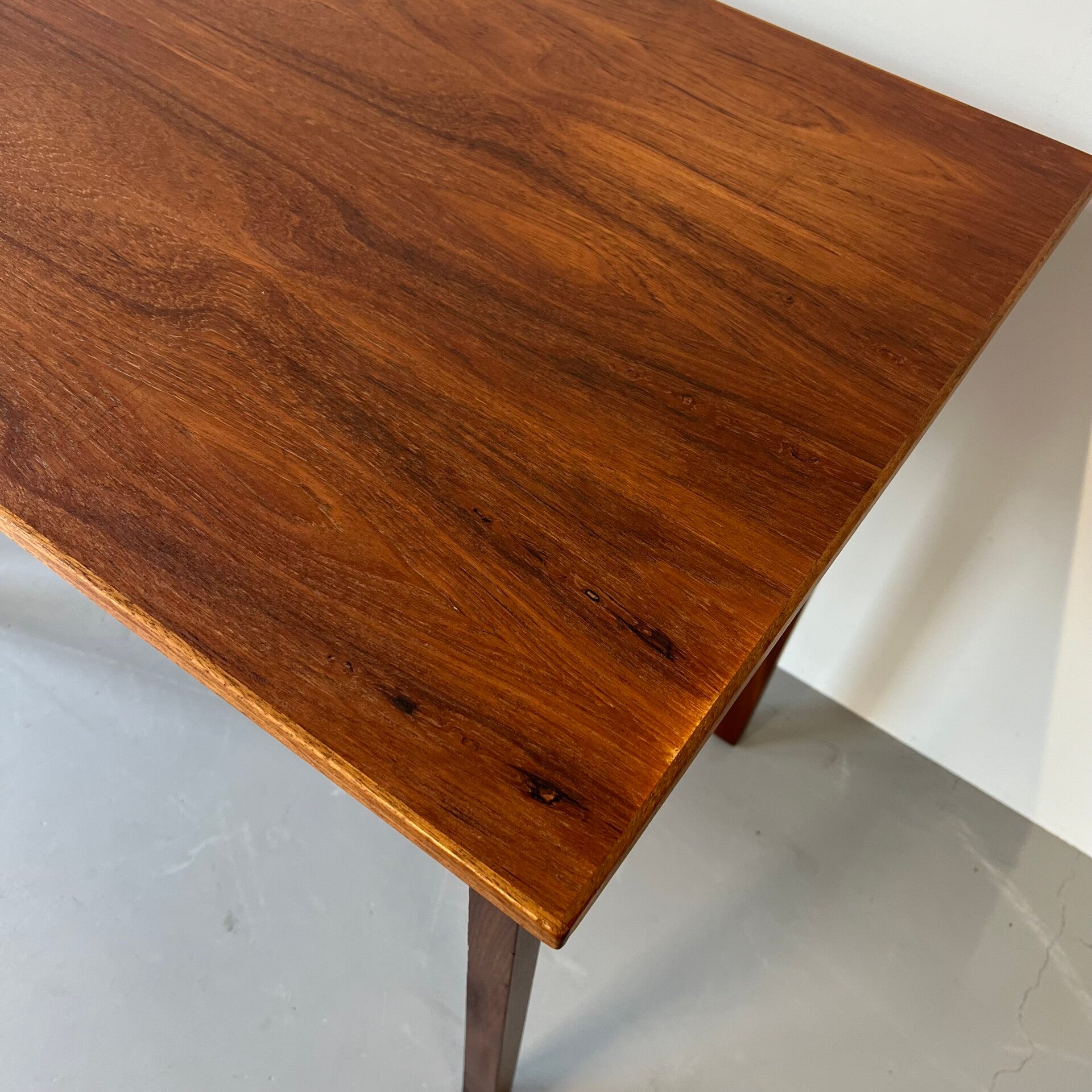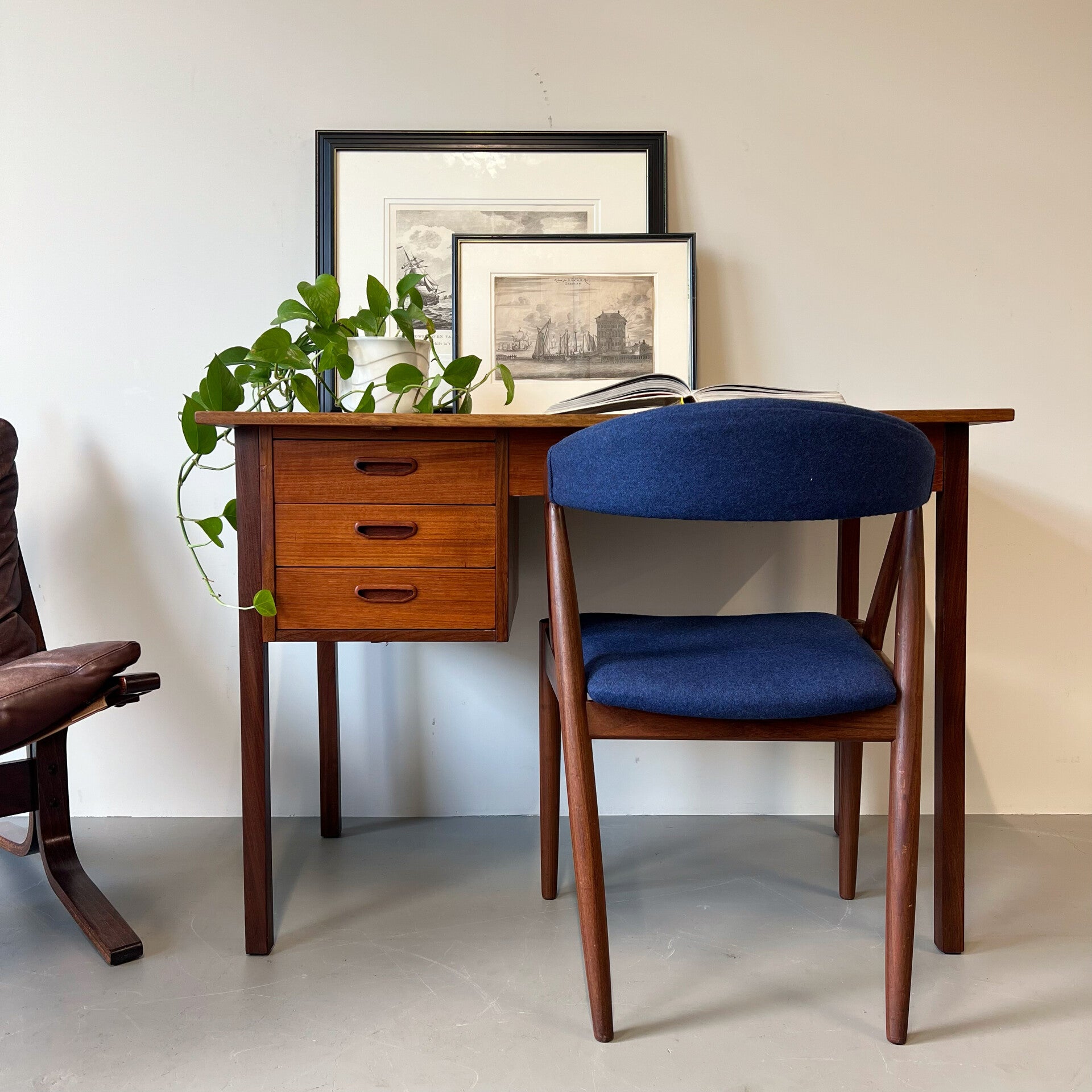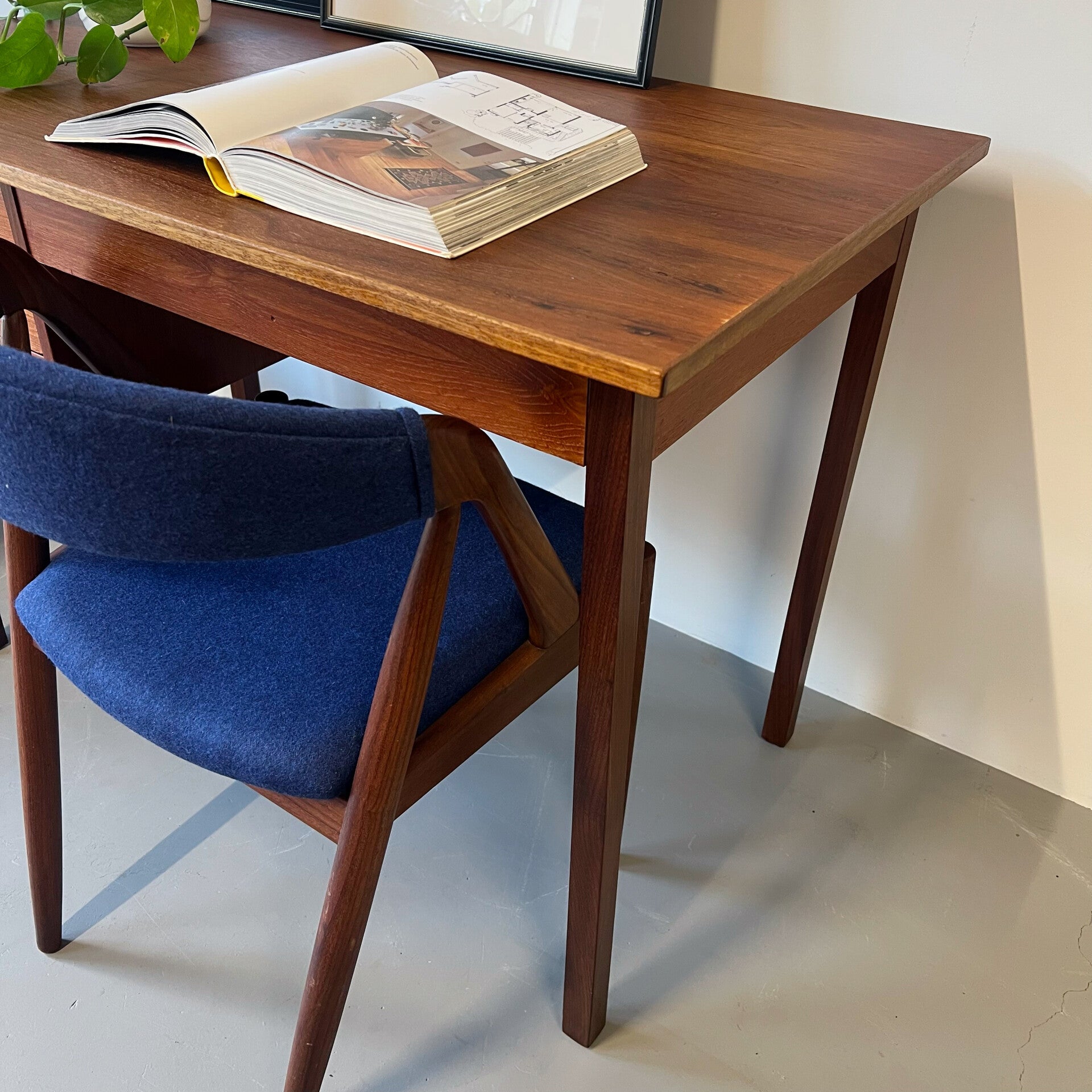 Leuk Deens bureau, uitgevoerd in teak (fineer) en op slanke poten.