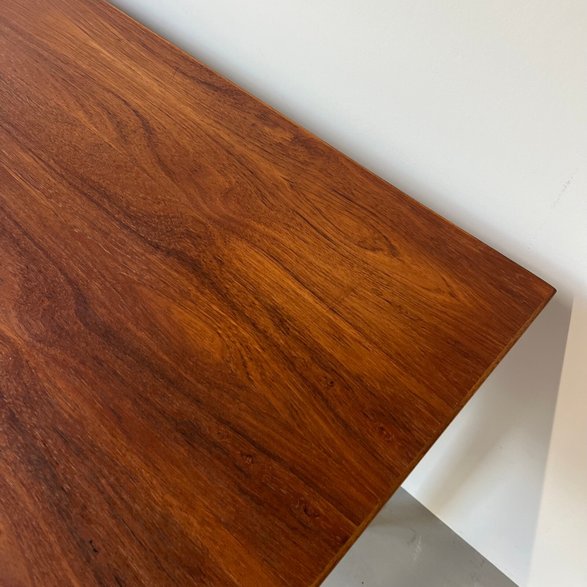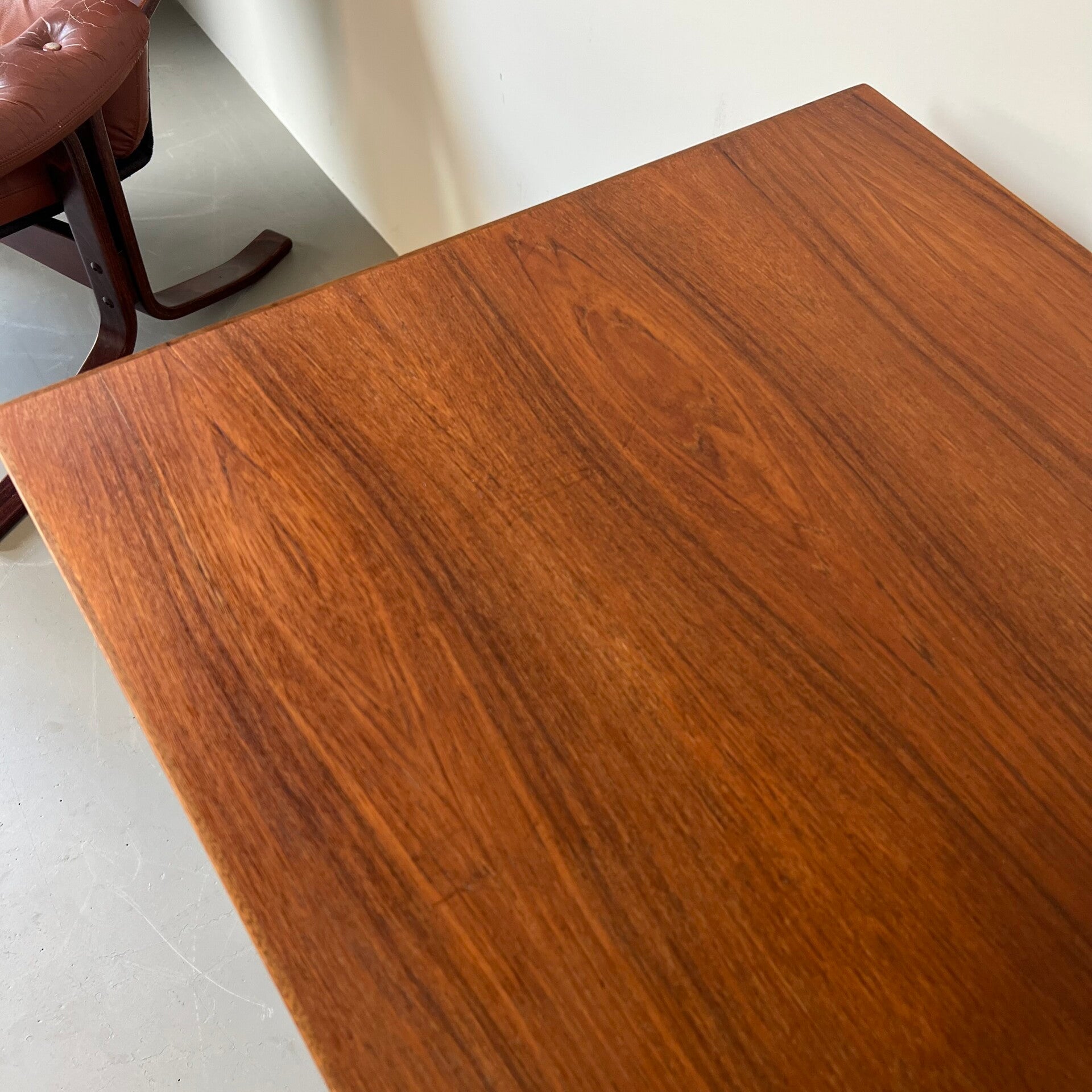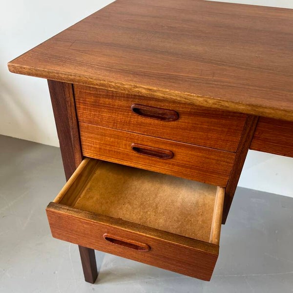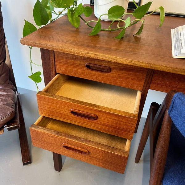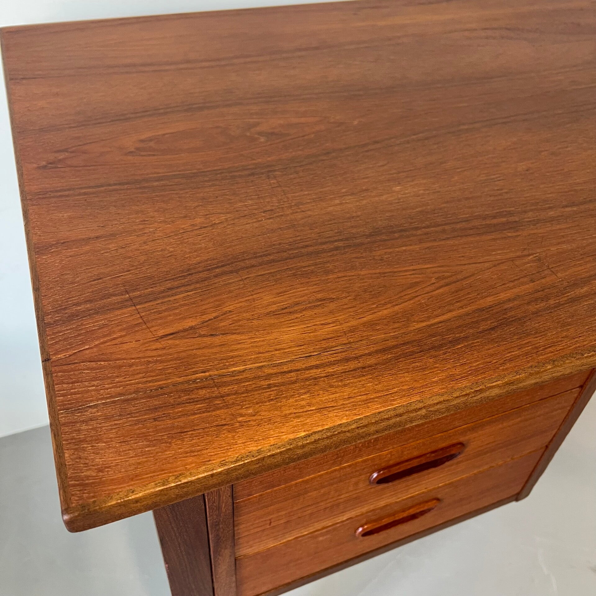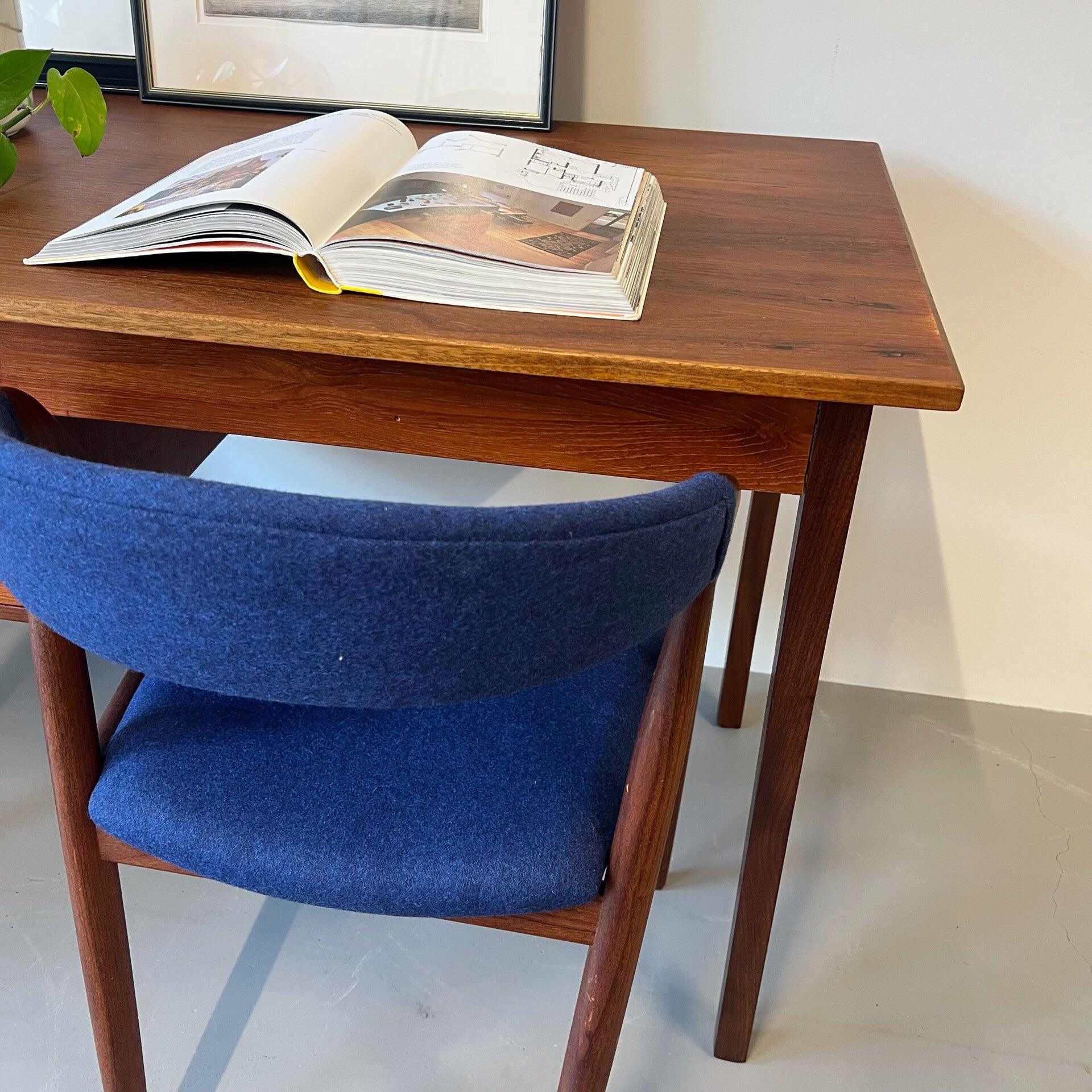 Leuk Deens bureau, uitgevoerd in teak (fineer) en op slanke poten.