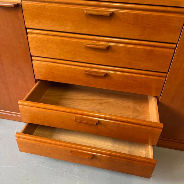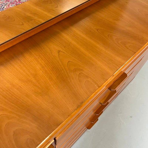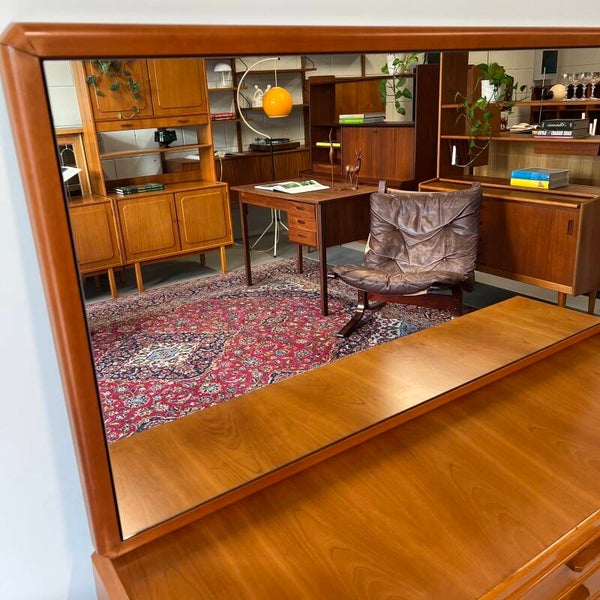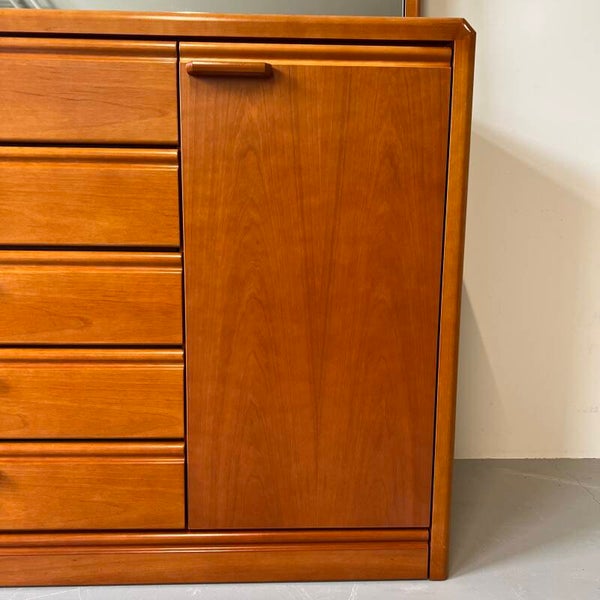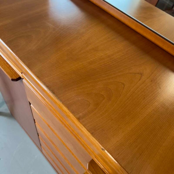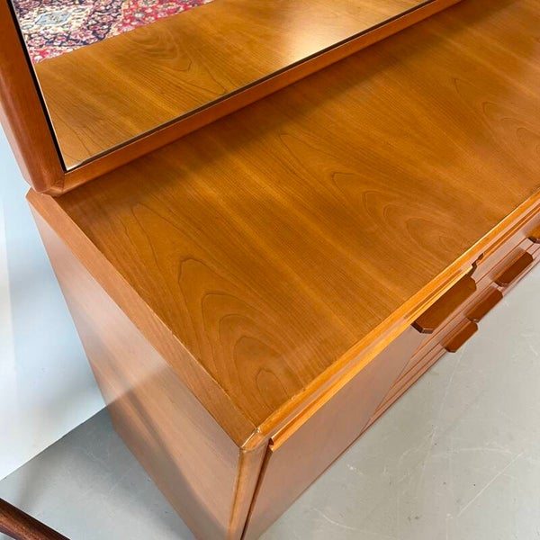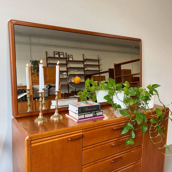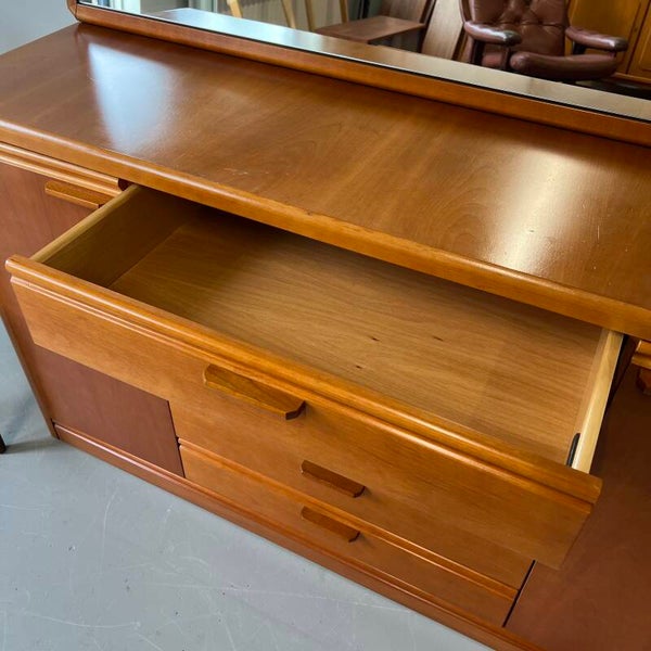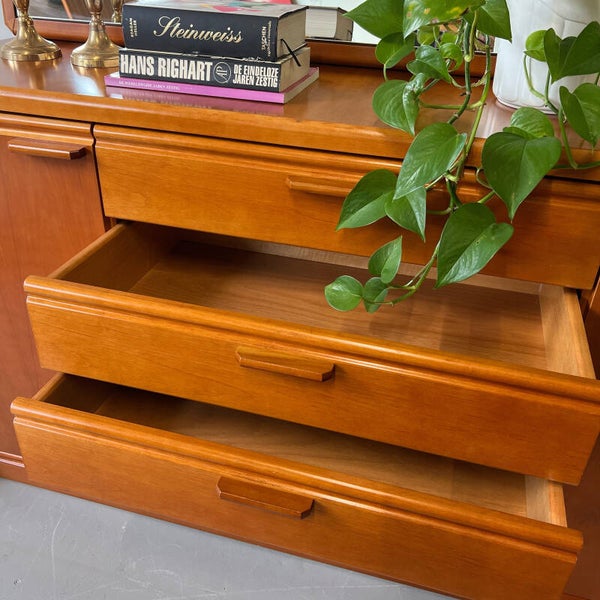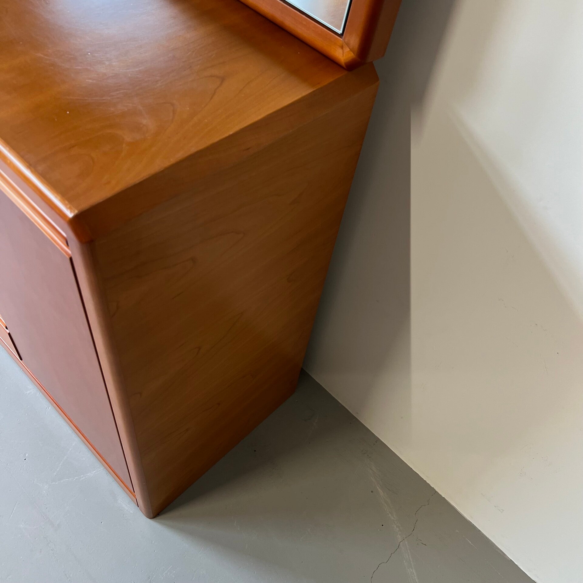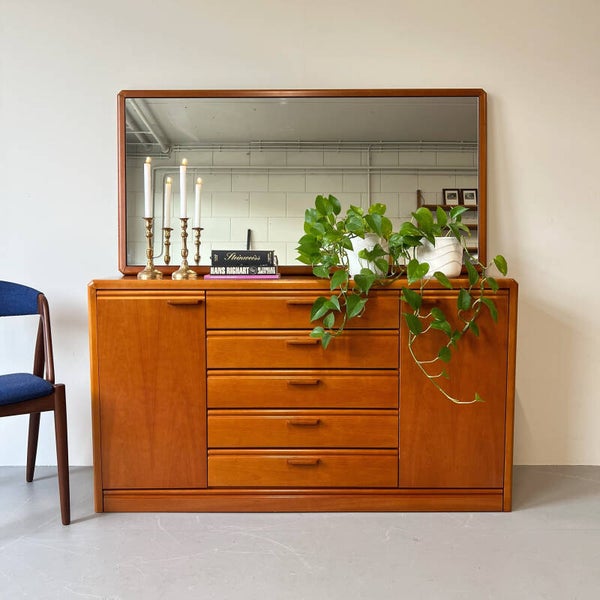 Prachtig kersenhouten dressoir met bijpassende kristalspiegel.