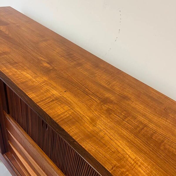 In het midden 3 ruime lades met erboven 2 prachtige lameldeurtjes, waarachter 4 smalle lades en een bargedeelte met spiegel schuilgaat.