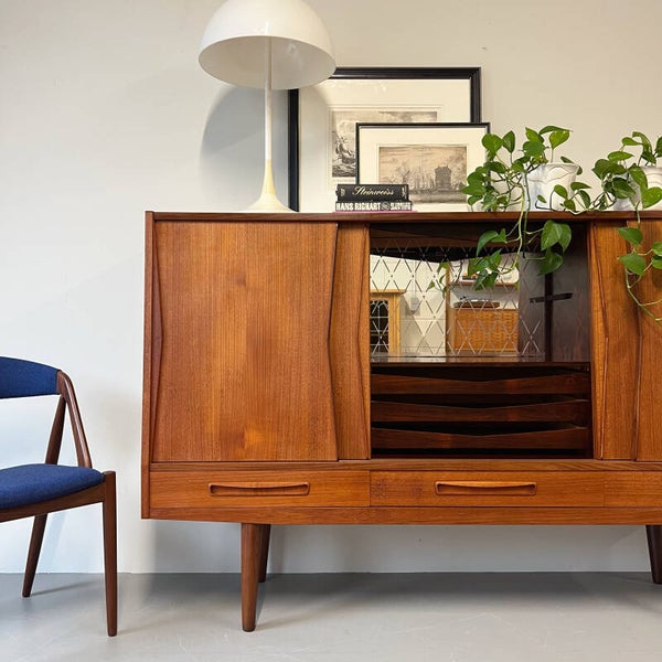Prachtig vintage highboard, buffetkast of servieskast uitgevoerd in teak (massief / fineer)