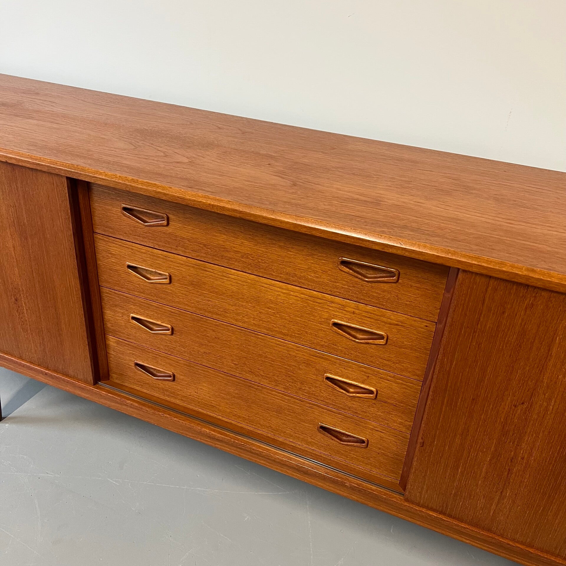 Prachtig vintage dressoir of sideboard, uitgevoerd in teak (fineer).