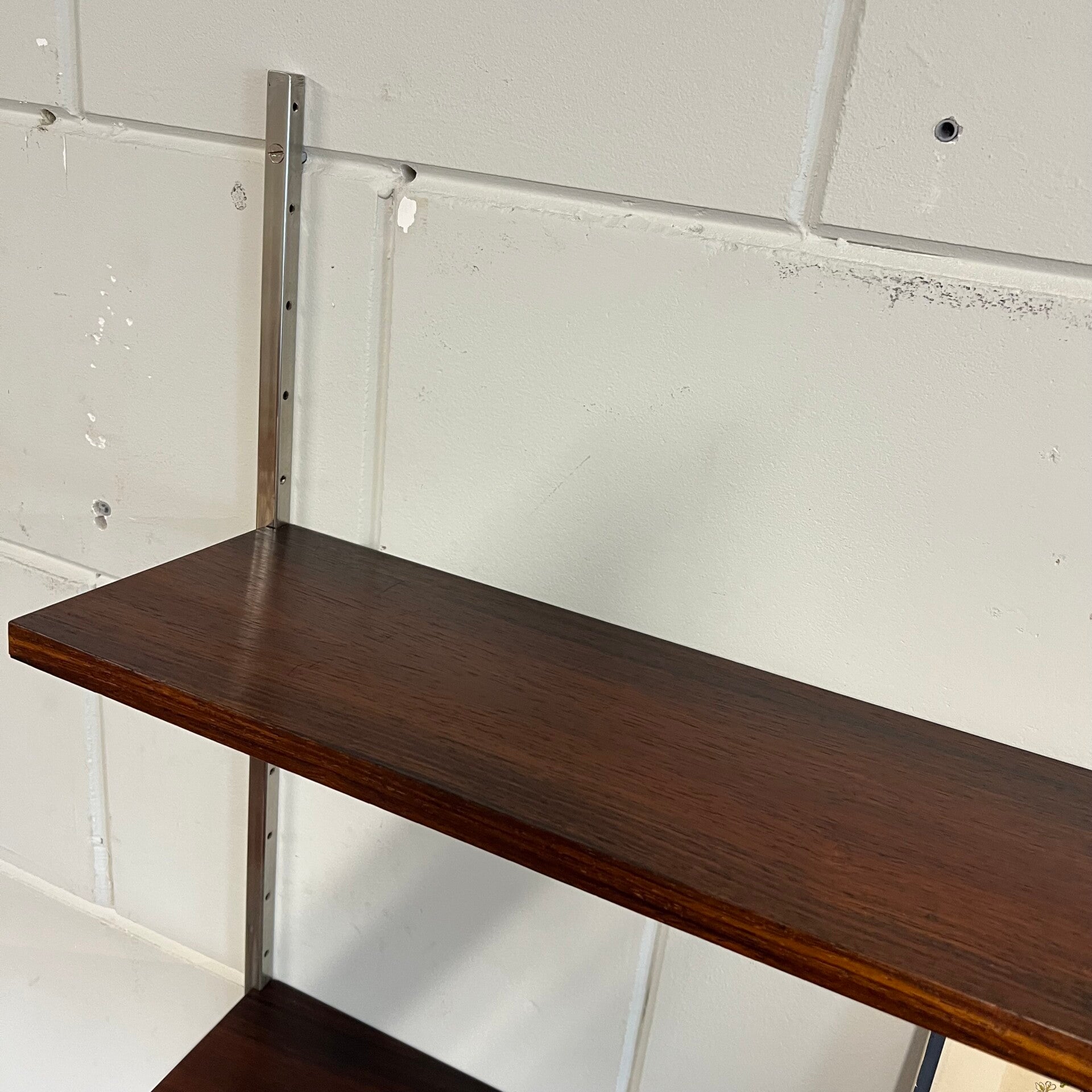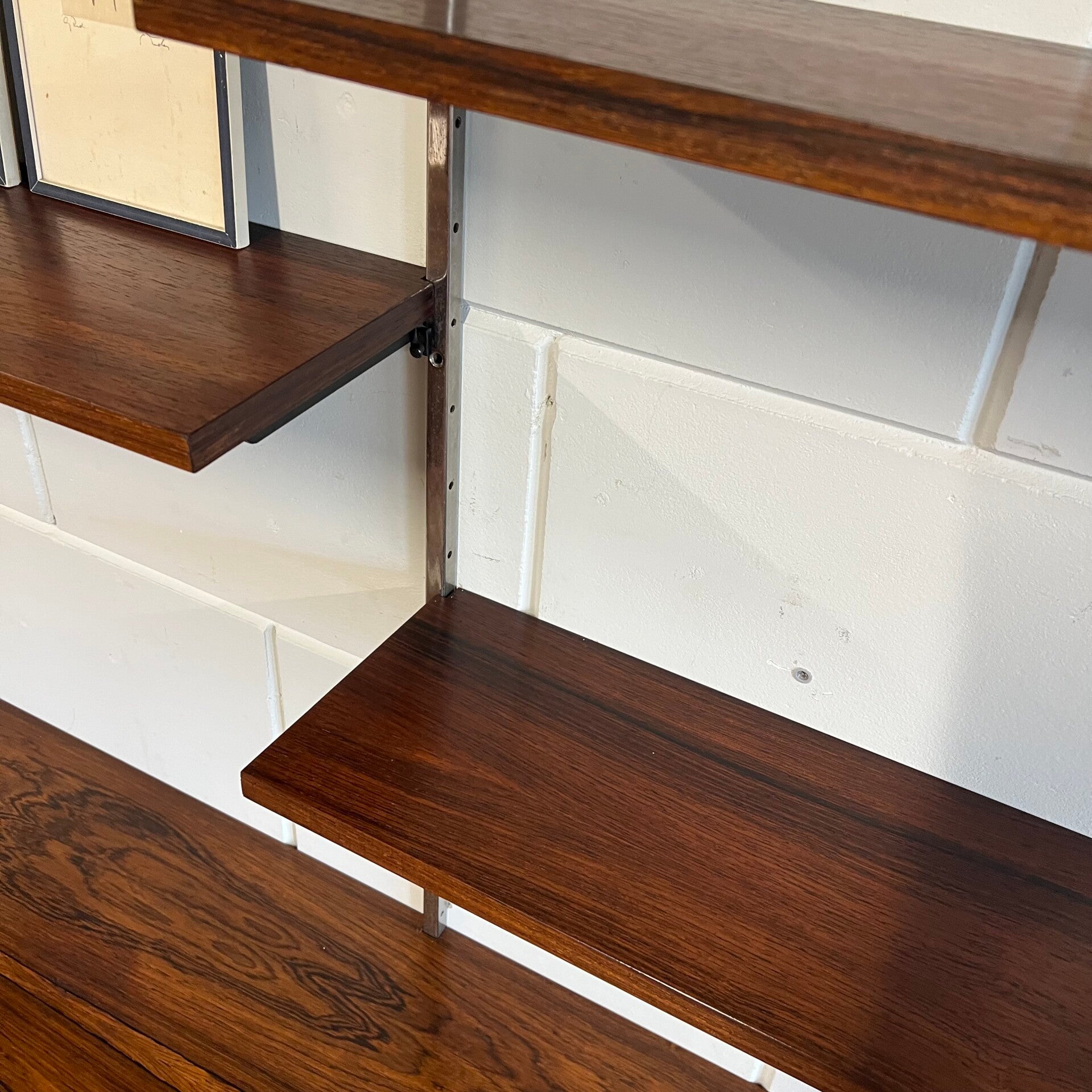 Authentiek vintage wandsysteem, uitgevoerd in rosewood (palissander) met wandlatten in nikkel.