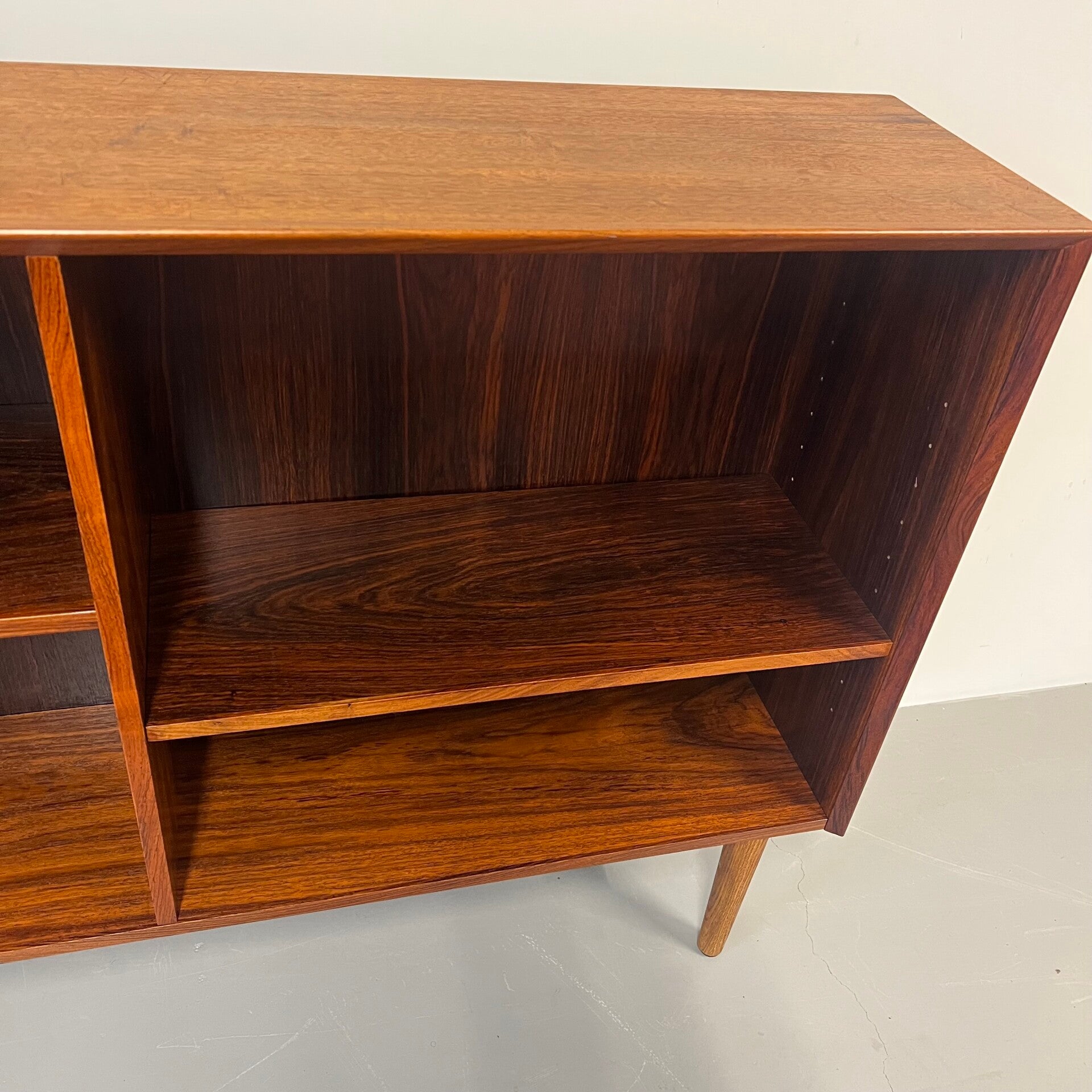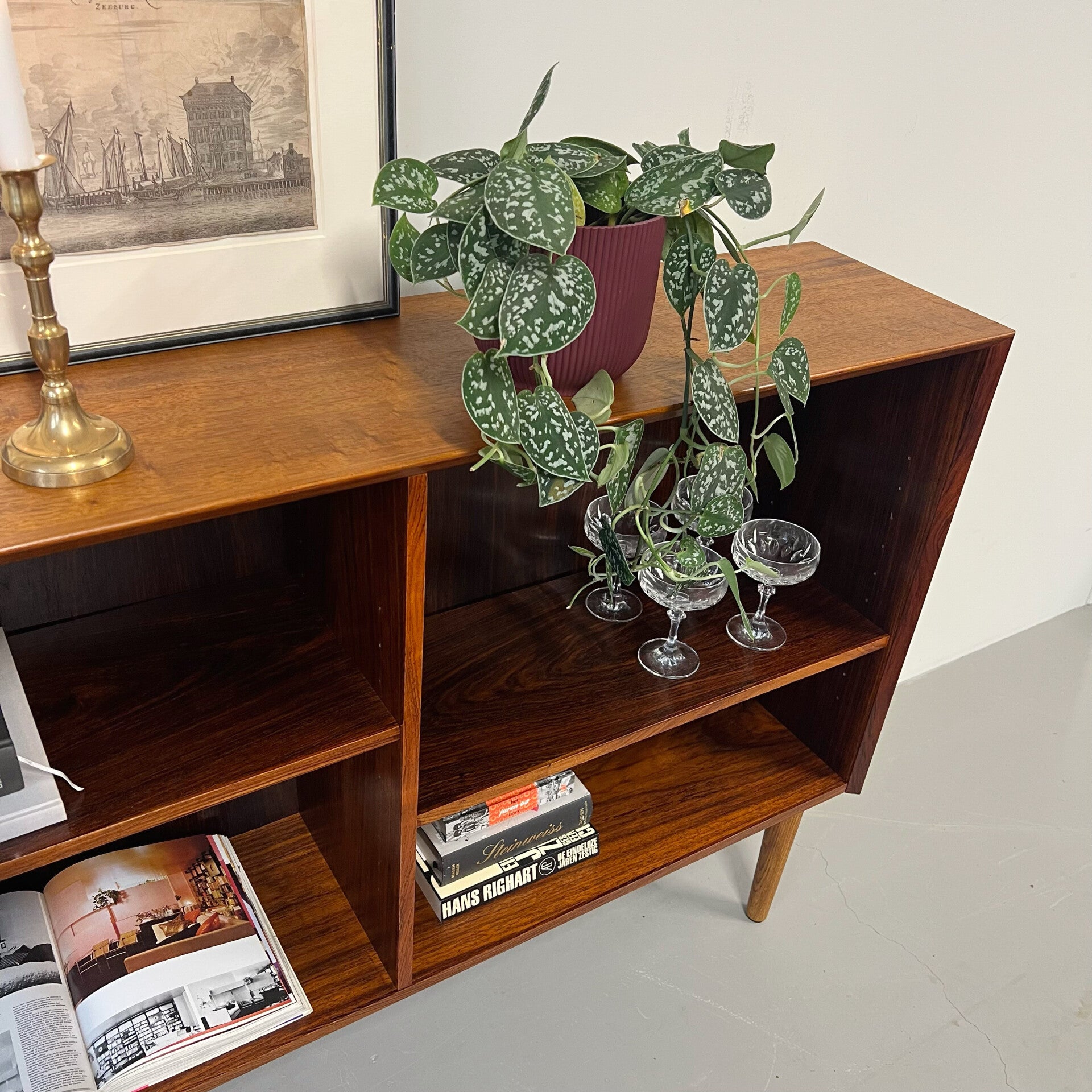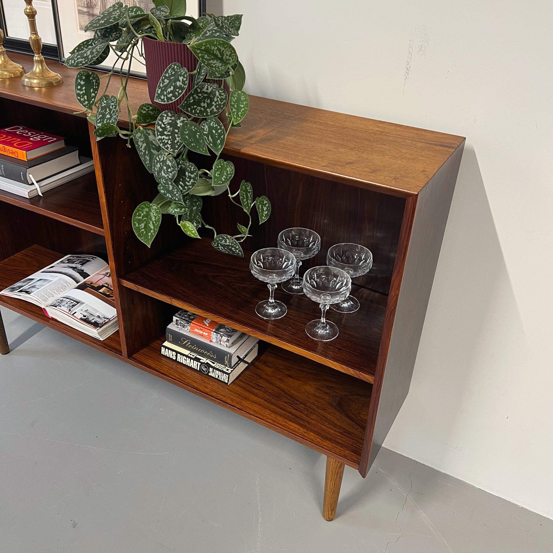Mooie vintage open boekenkast, uitgevoerd in warm palissander (rosewood).