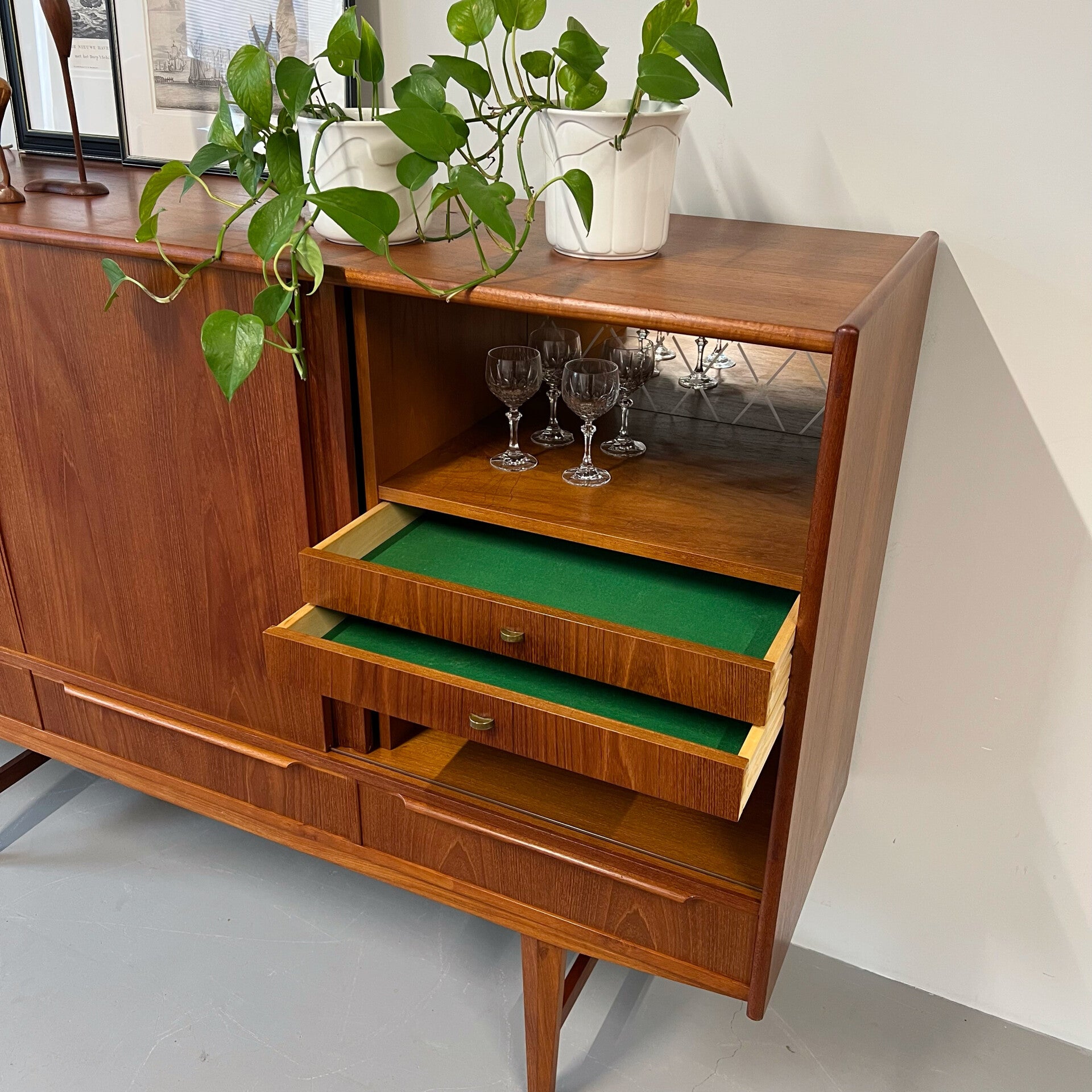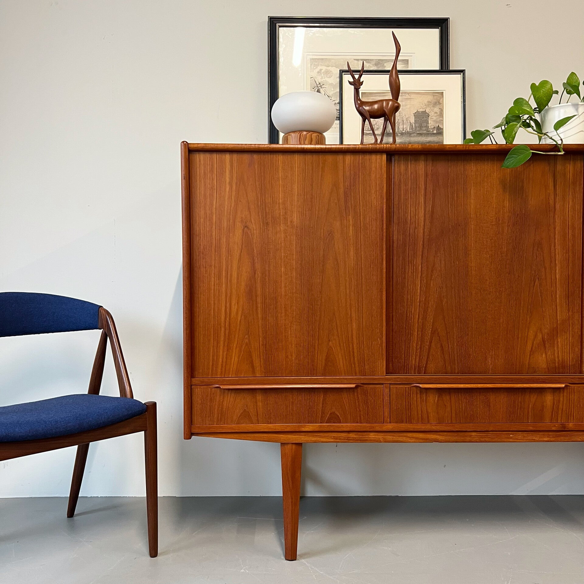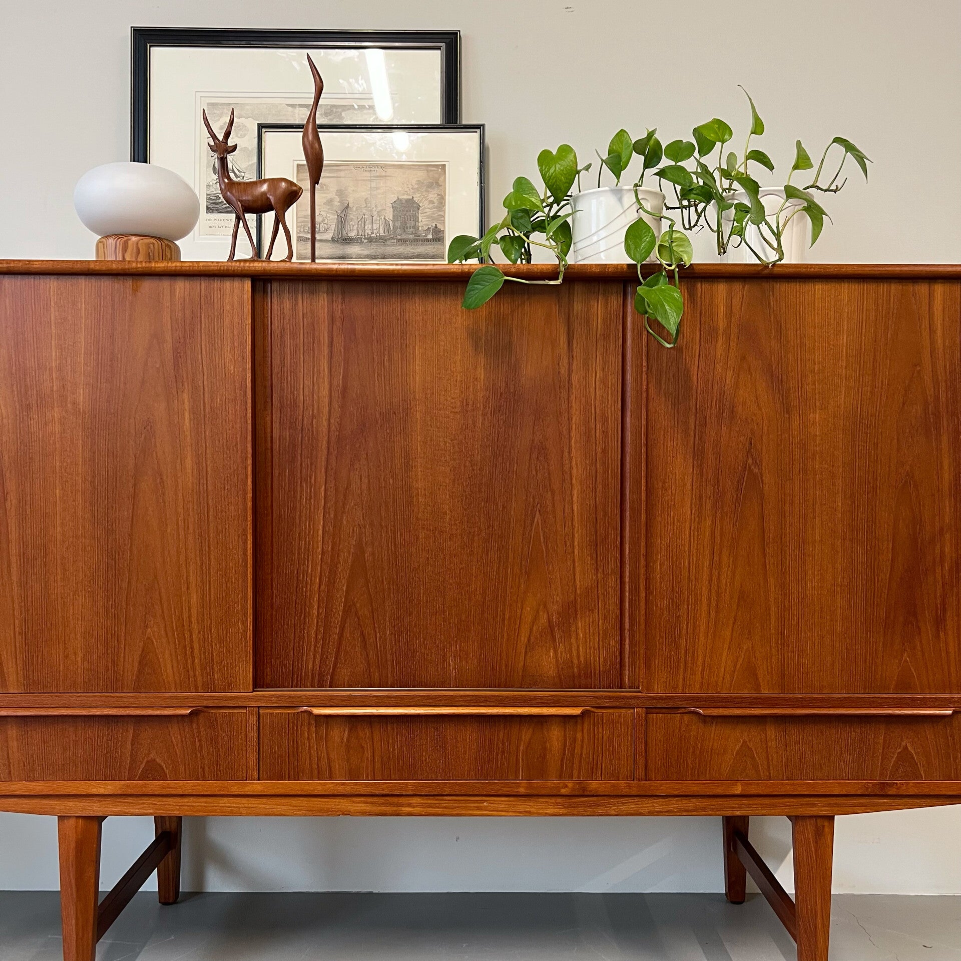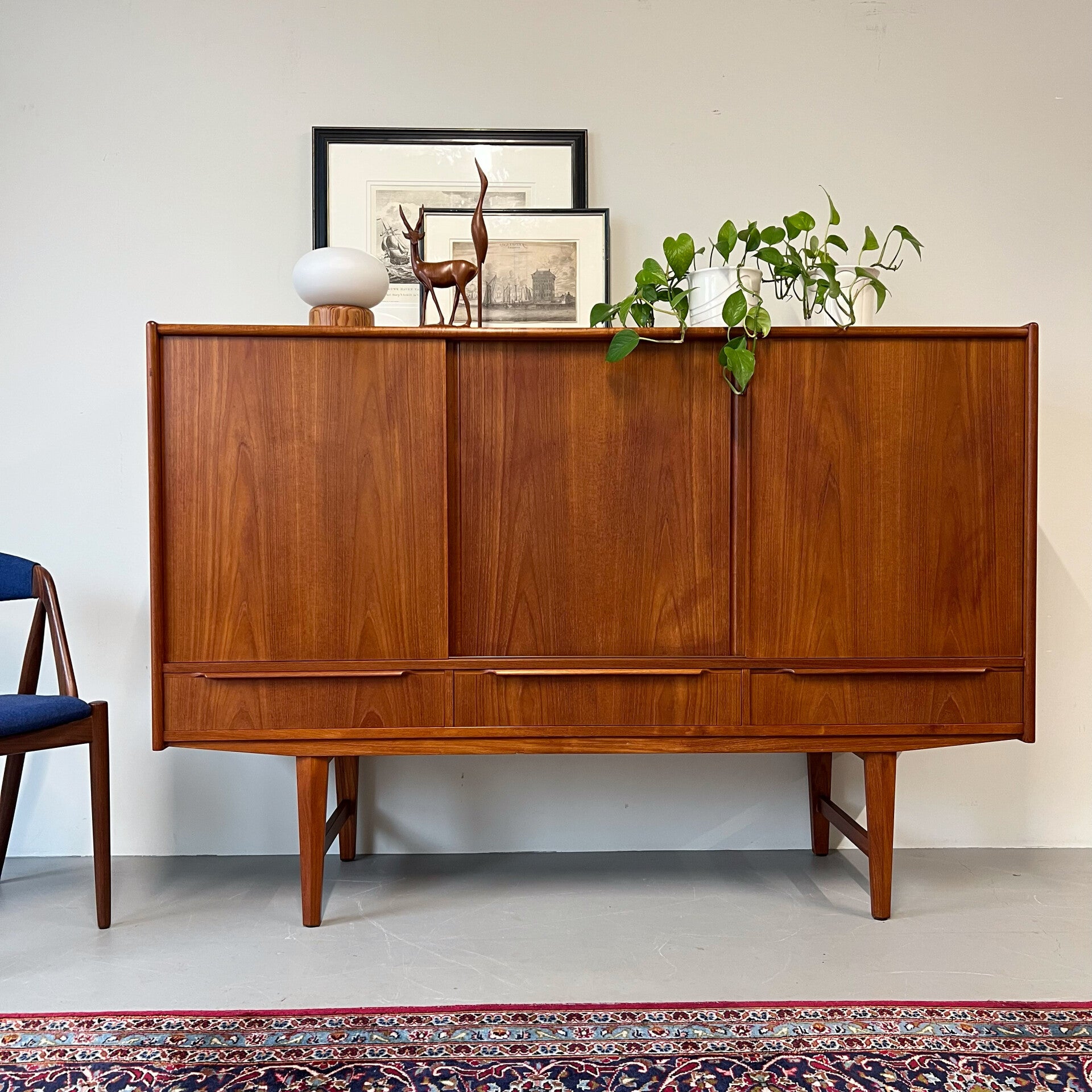 Prachtig vintage highboard, buffetkast of servieskast uitgevoerd in teak (massief / fineer)