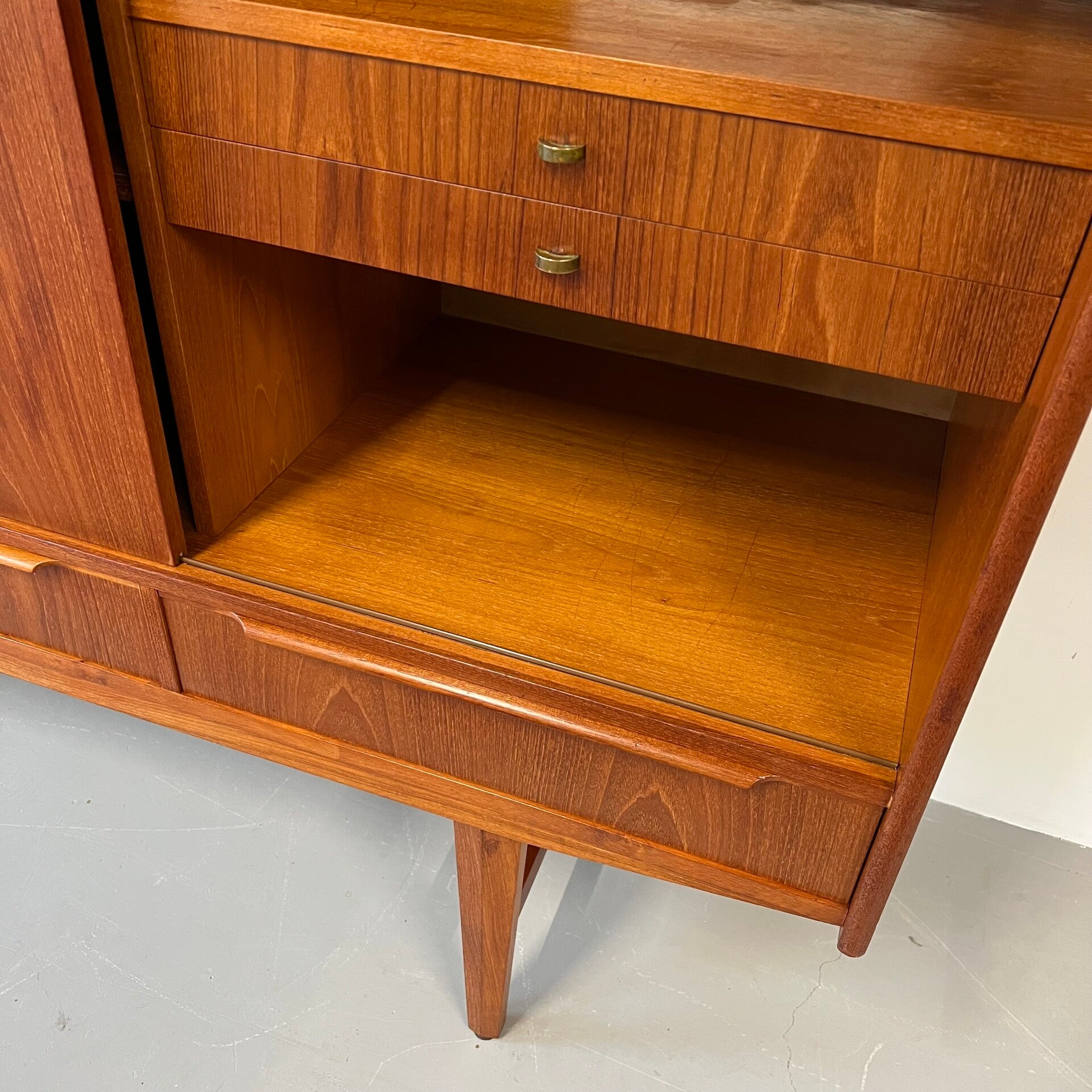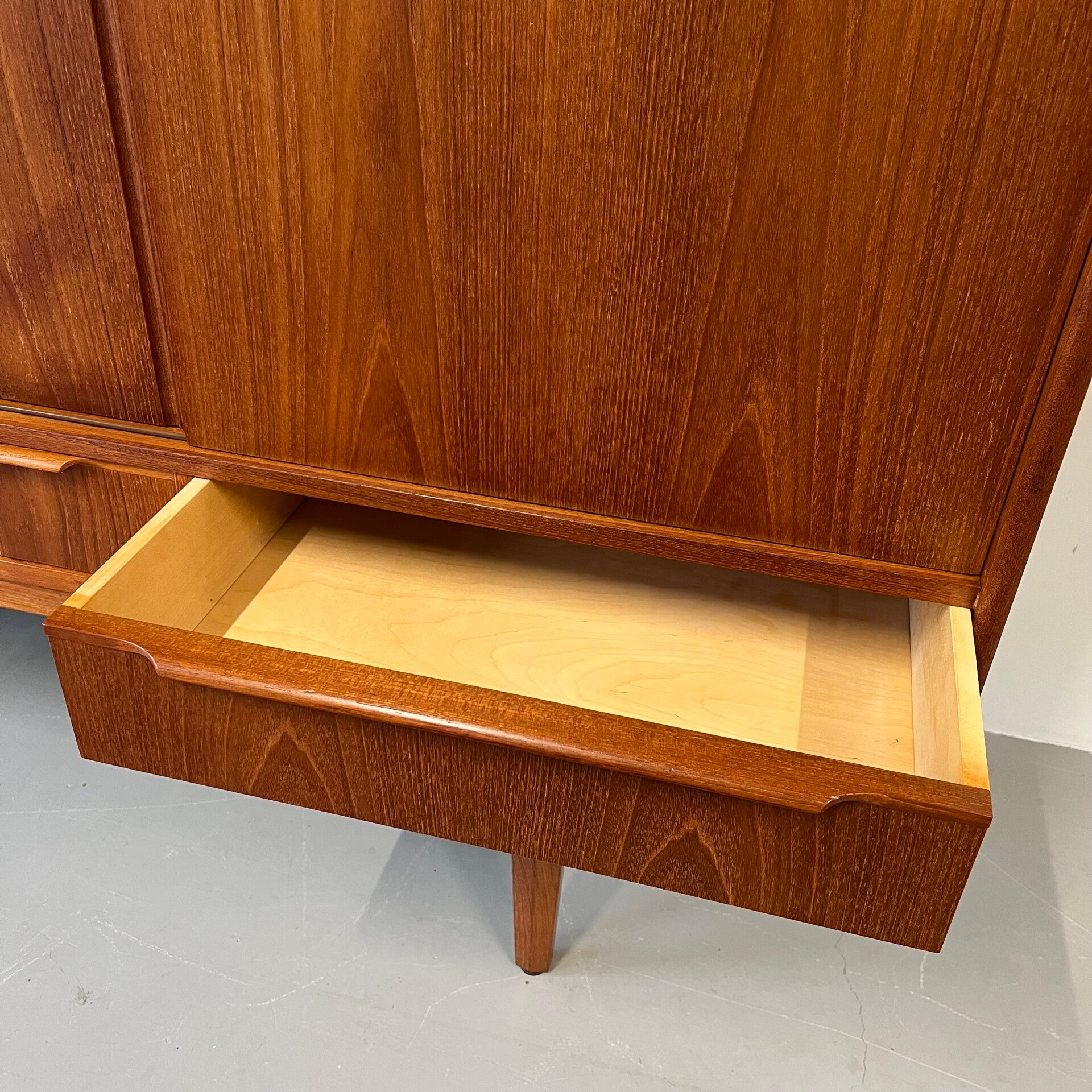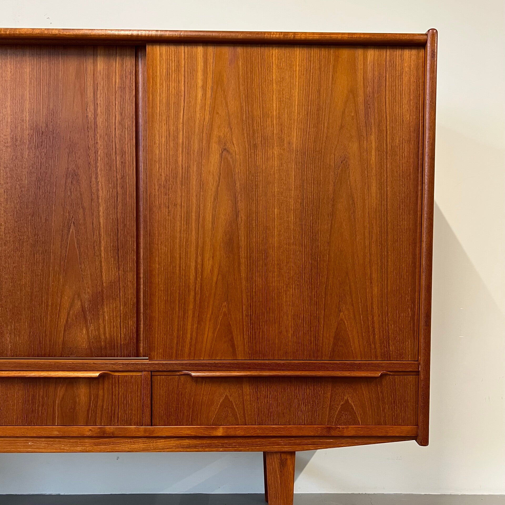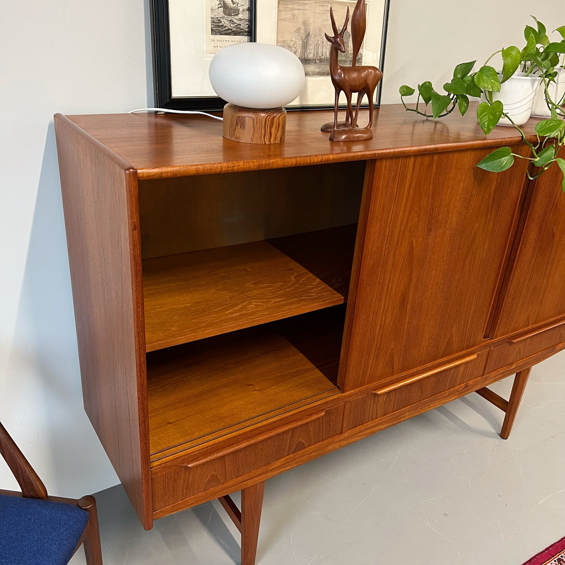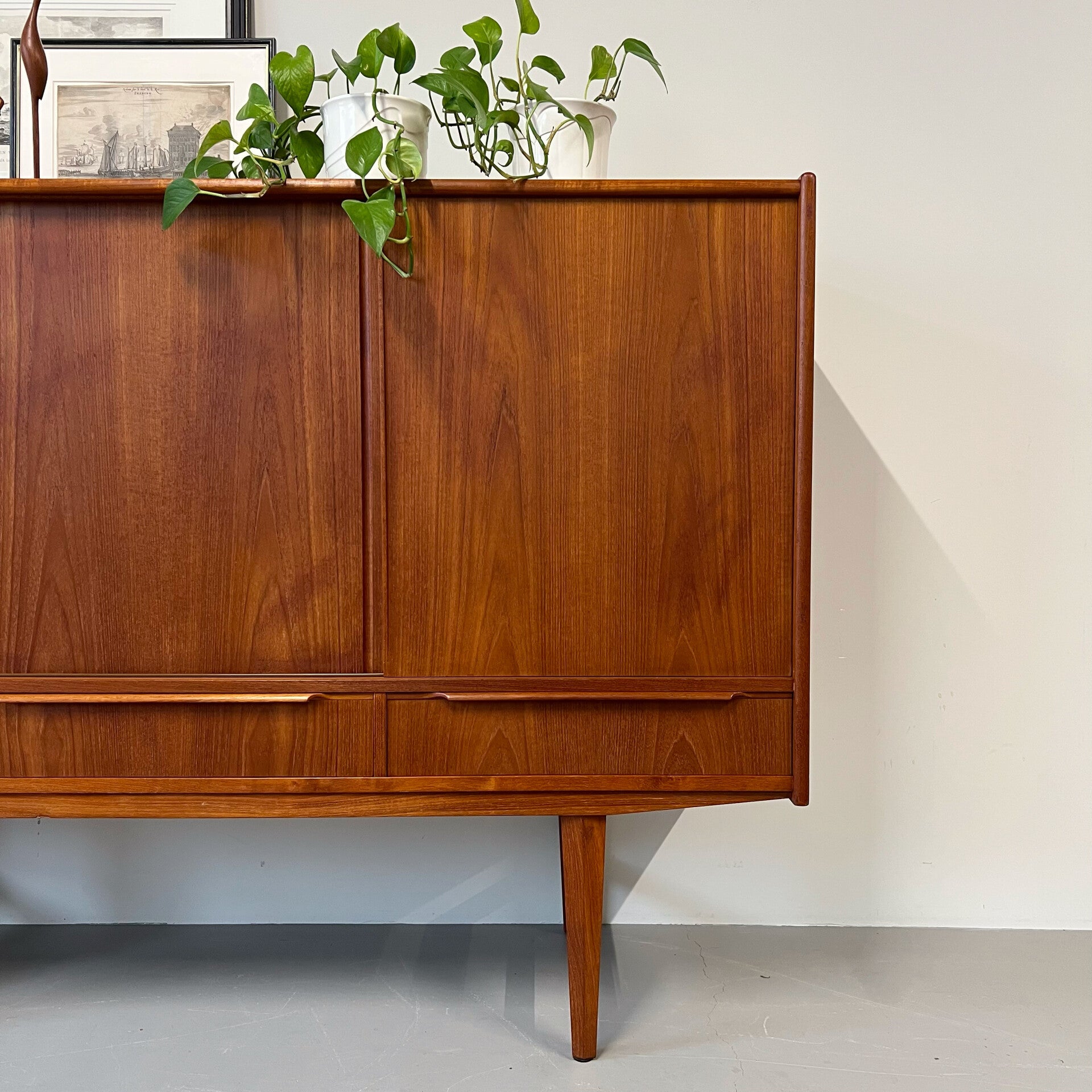 Prachtig vintage highboard, buffetkast of servieskast uitgevoerd in teak (massief / fineer)