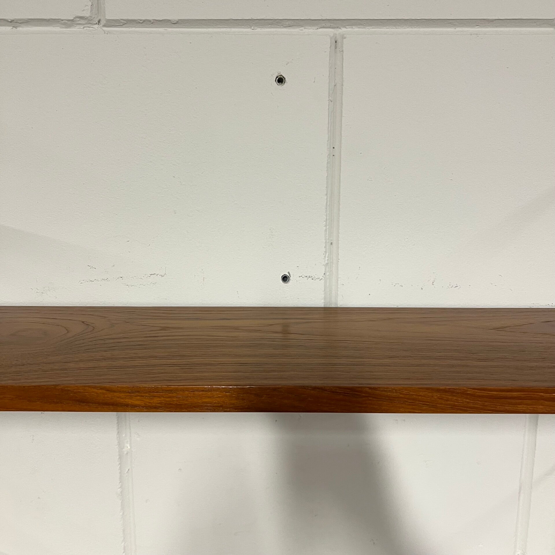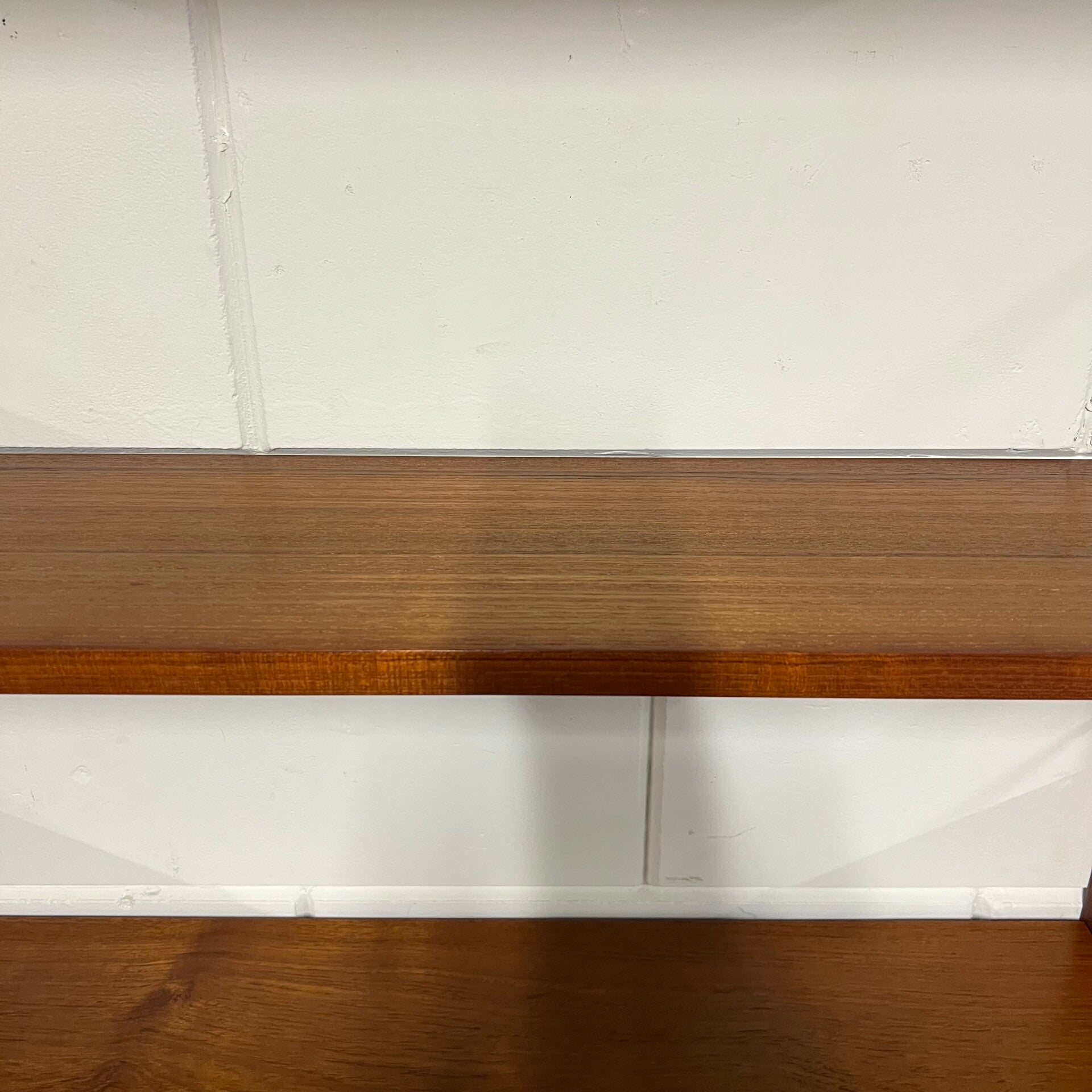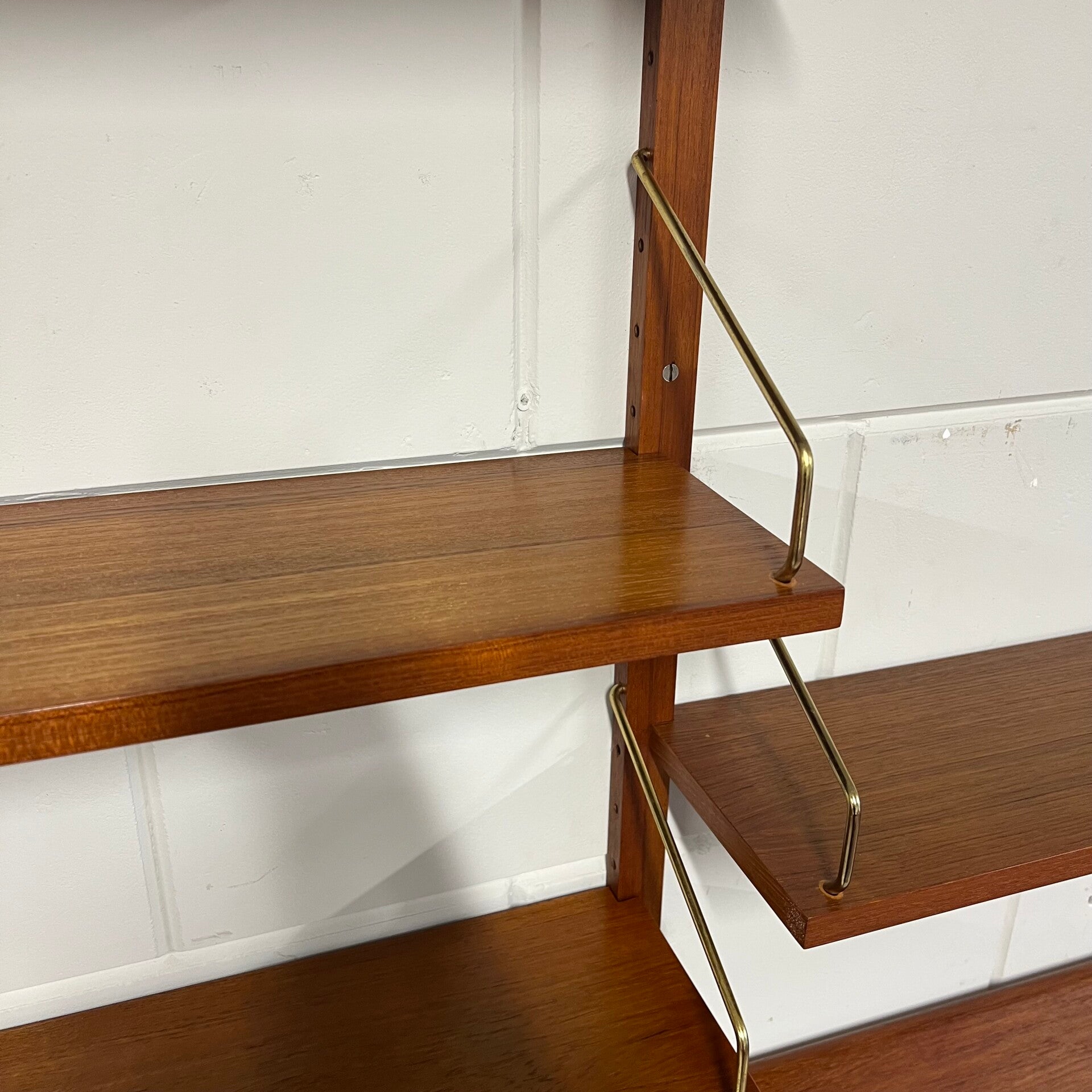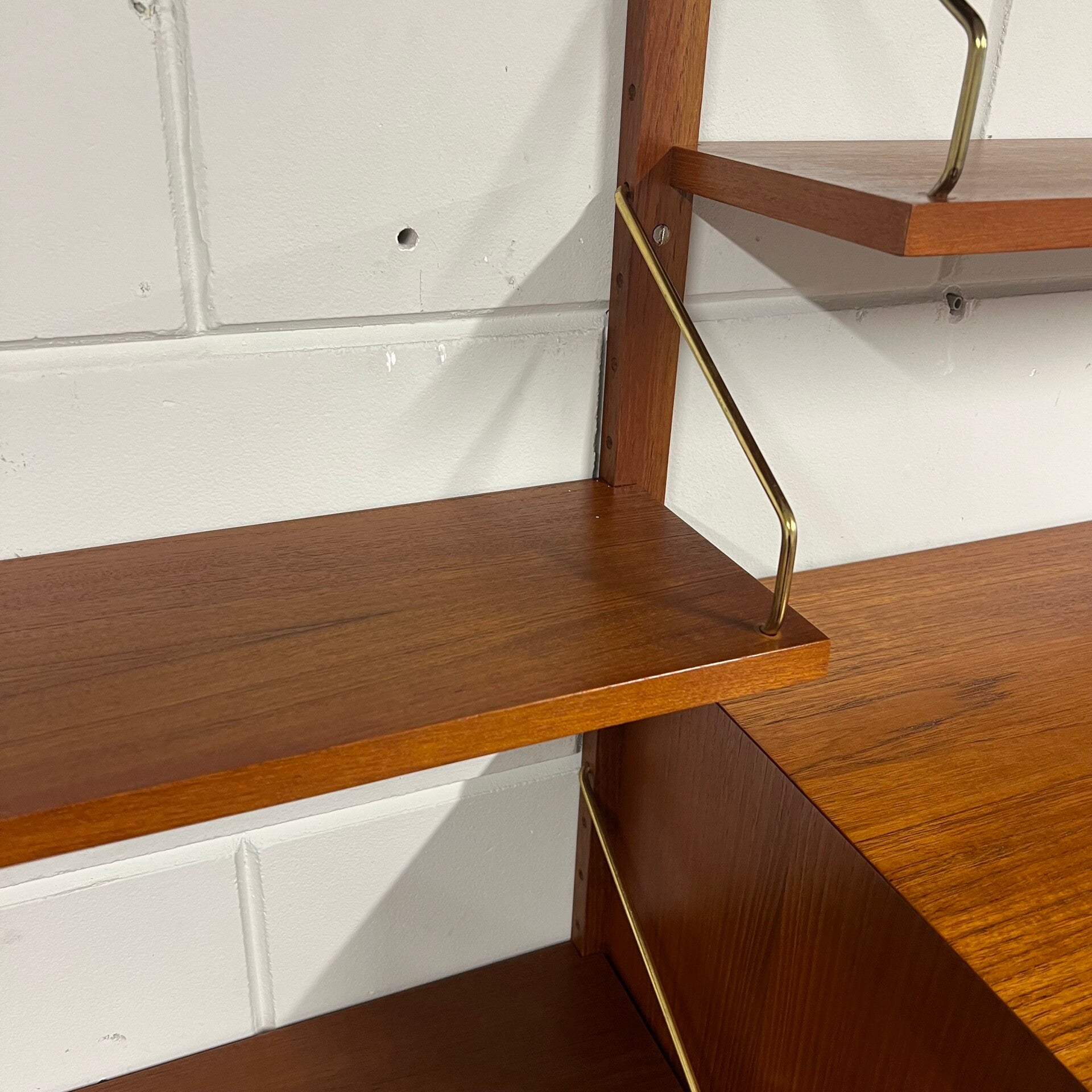 Geweldig vintage wandmeubel, wall unit uitgevoerd in teakhout met messing beugels.