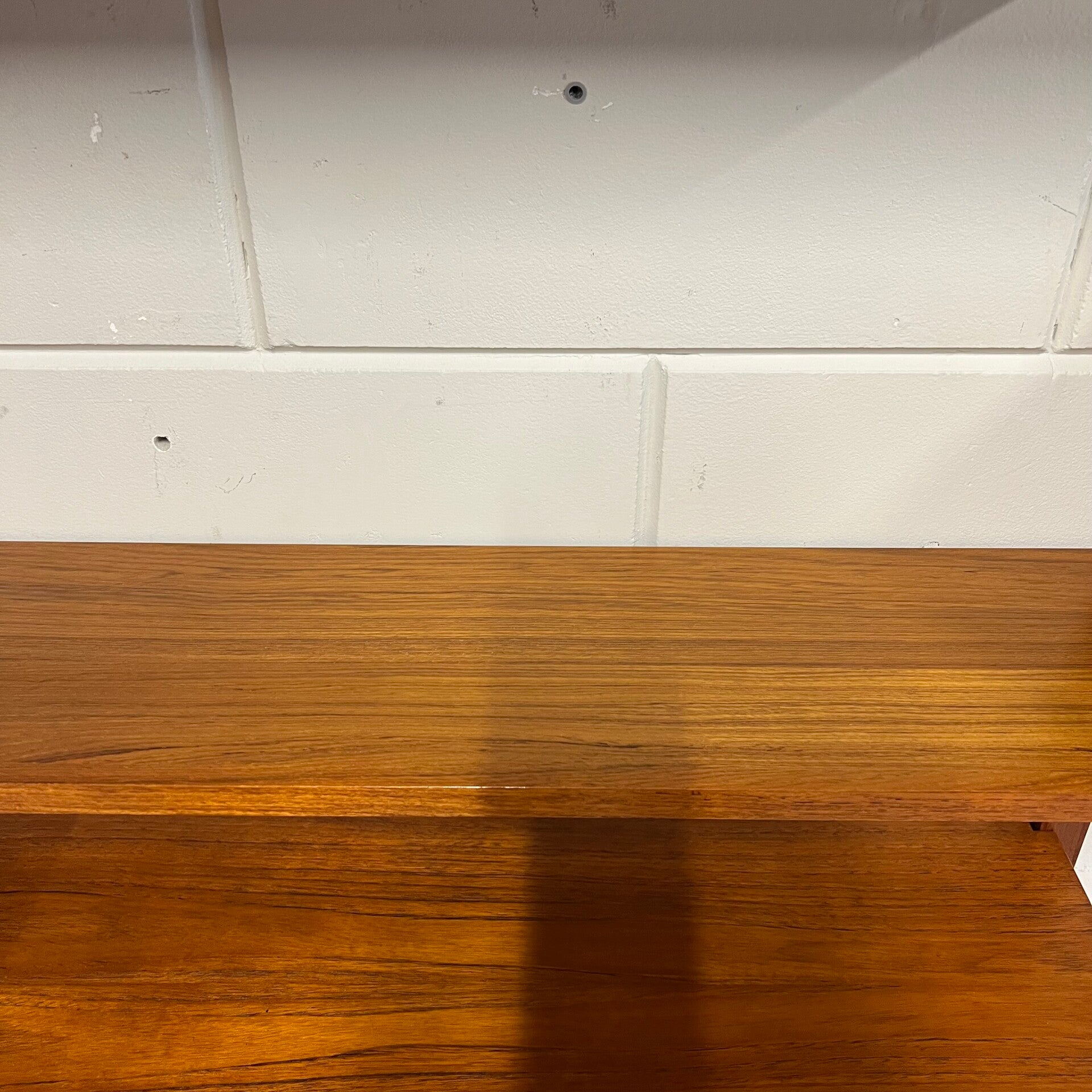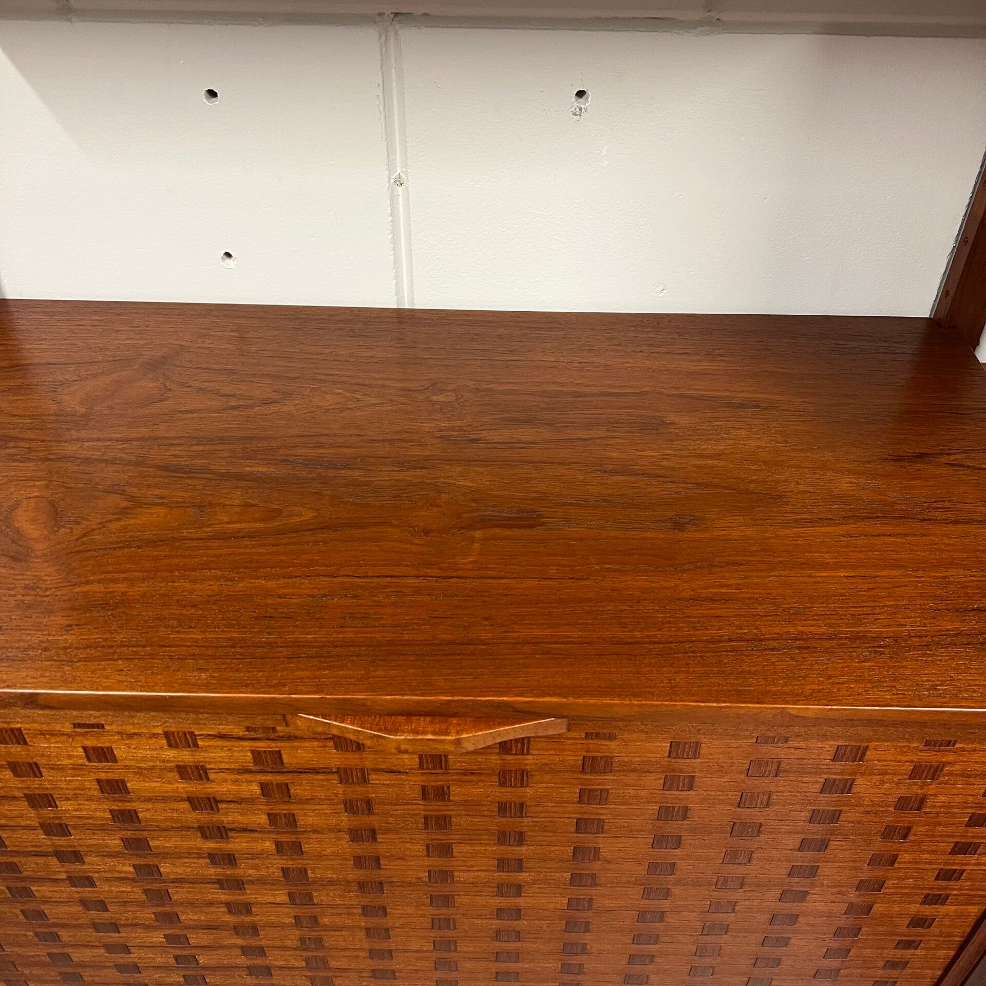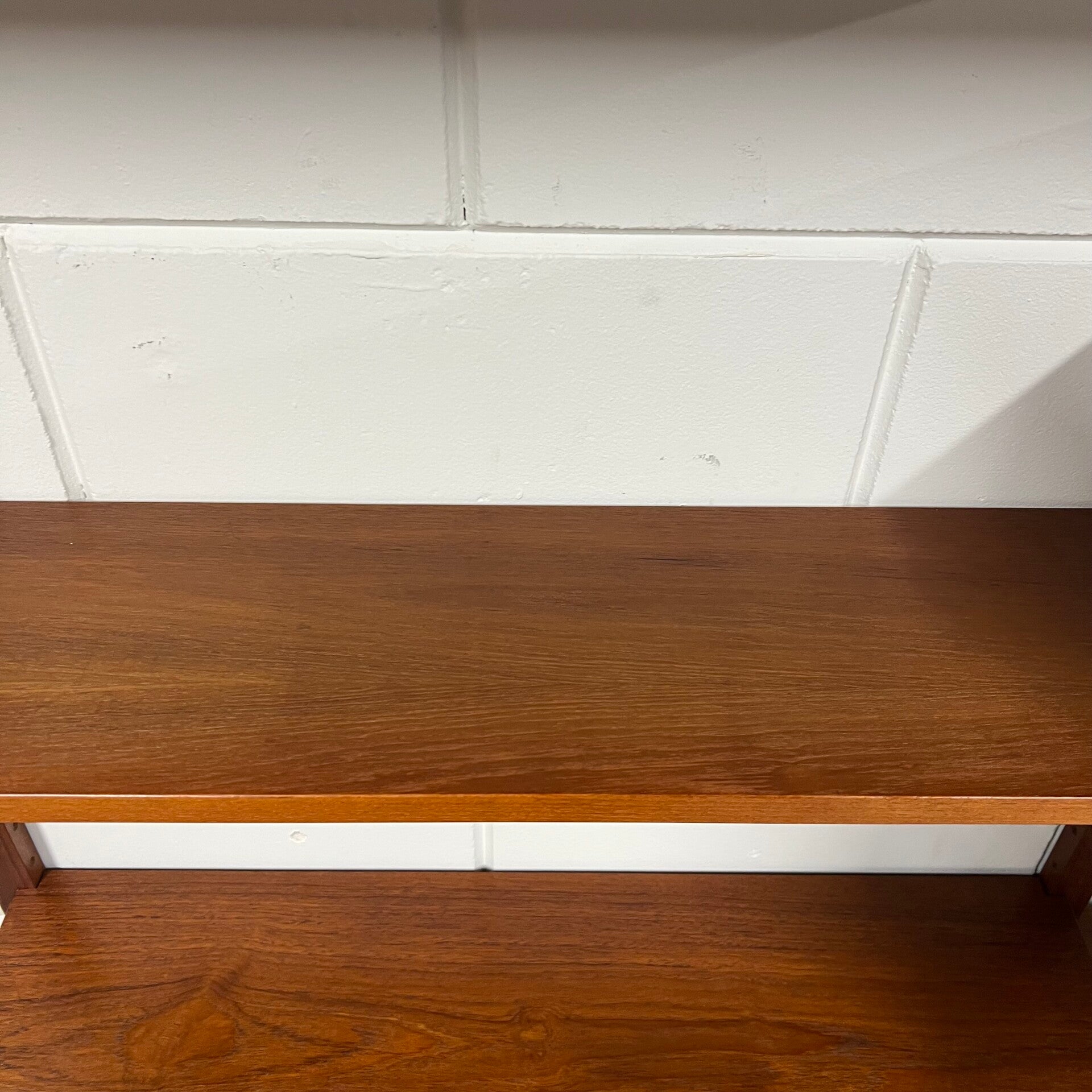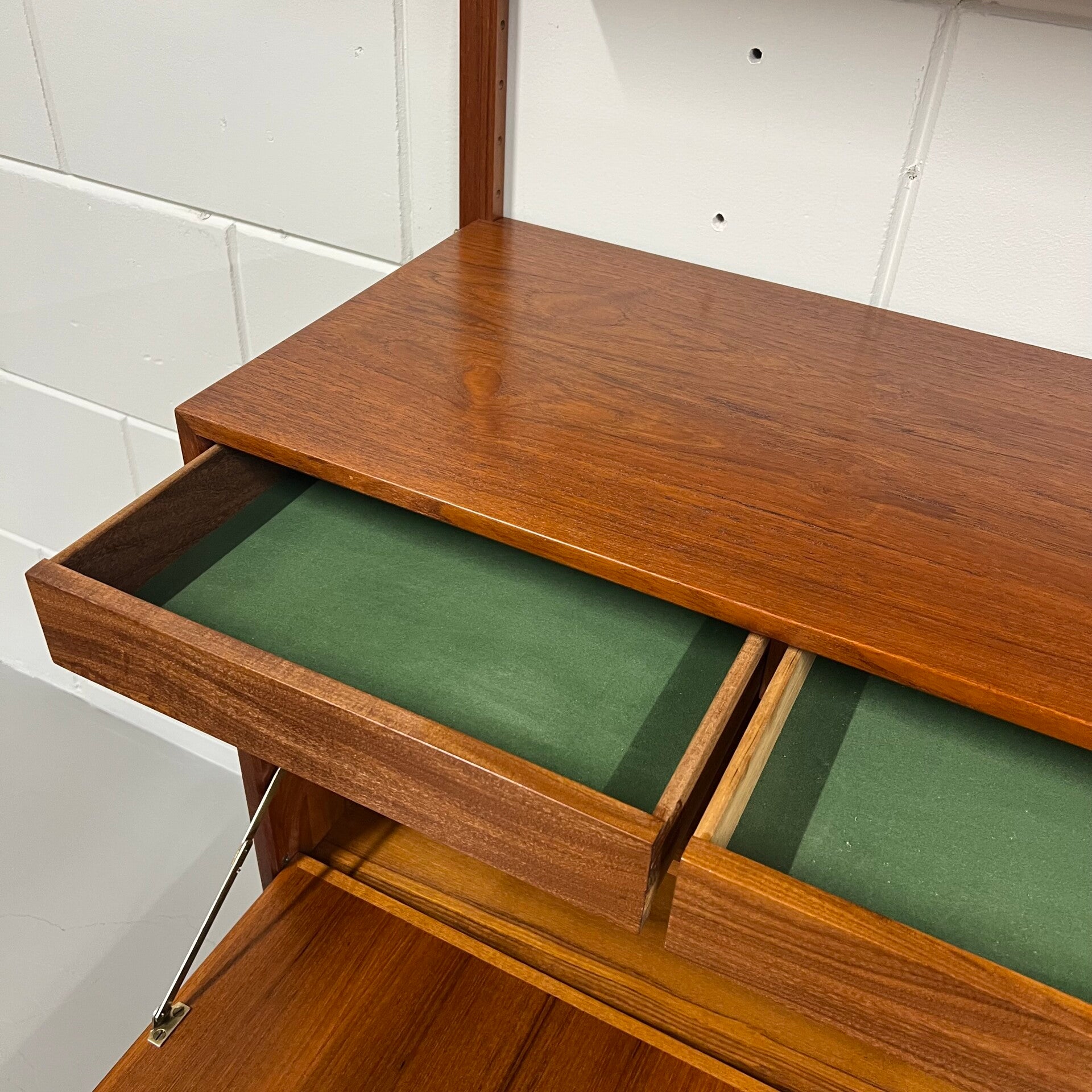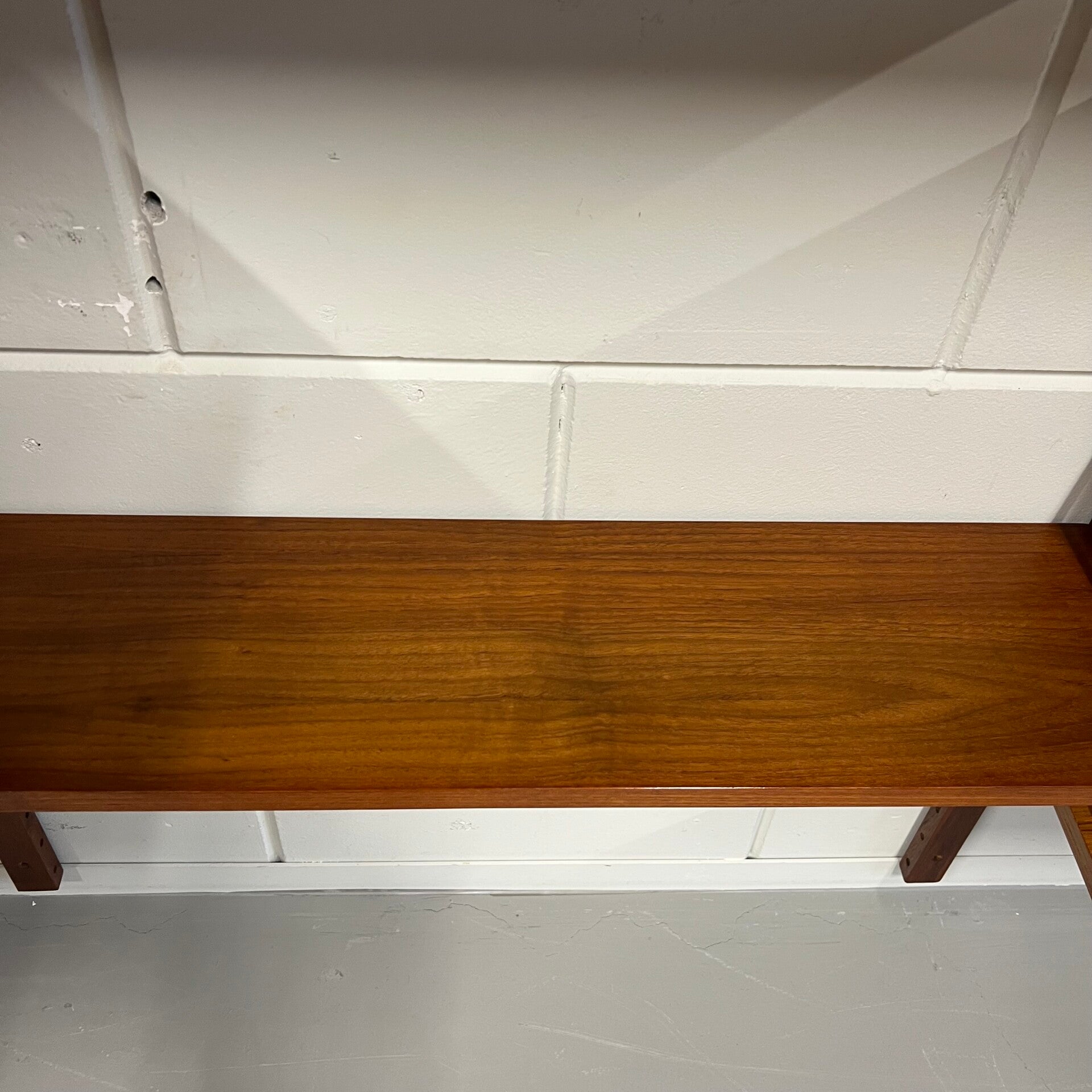 Geweldig vintage wandmeubel, wall unit uitgevoerd in teakhout met messing beugels.