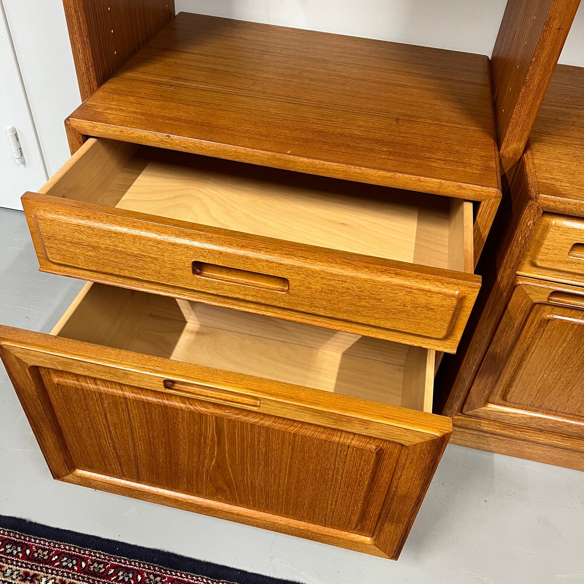 Indrukwekkend wandmeubel door het Deense Dyrlund, uitgevoerd in teak.