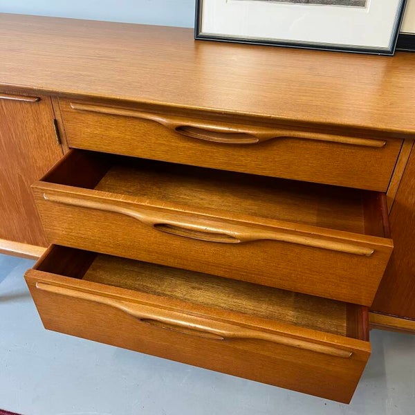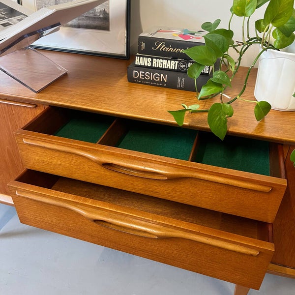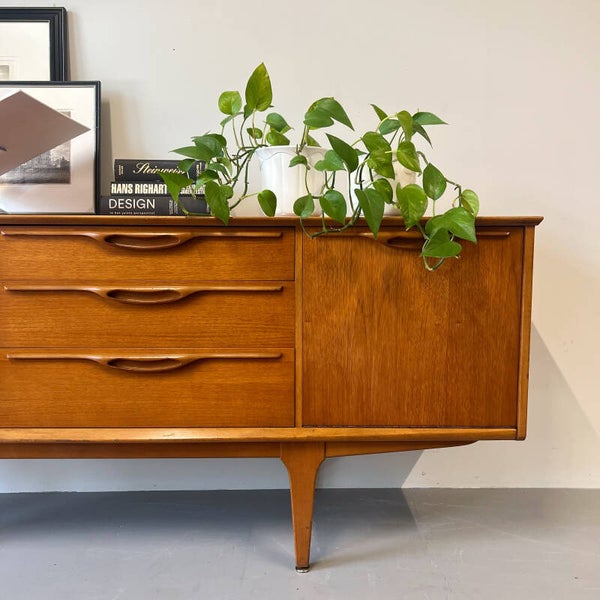 Schitterend vintage dressoir, uitgevoerd in teak (massief / fineer) en geproduceerd door het Britse Jentique Furniture Ltd.