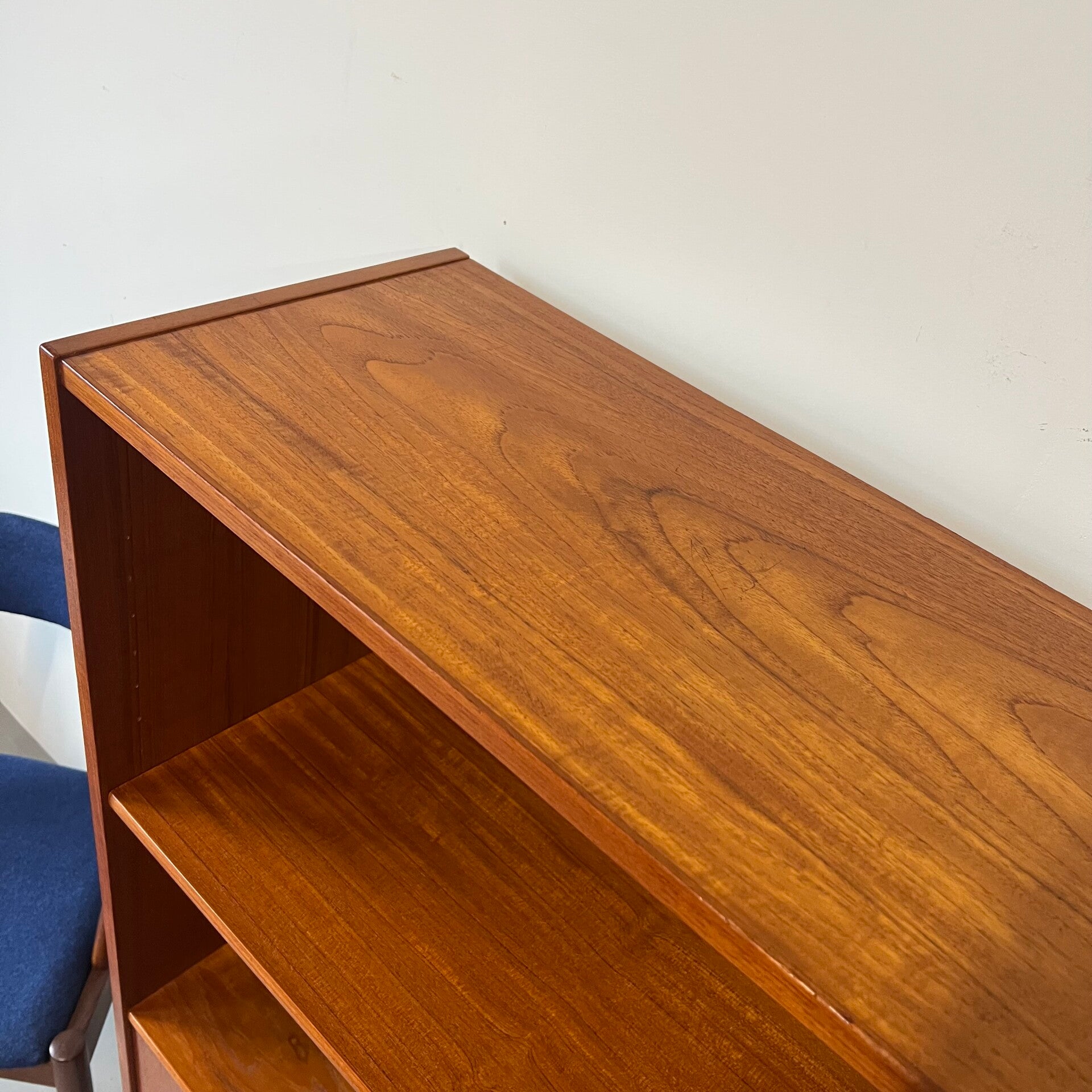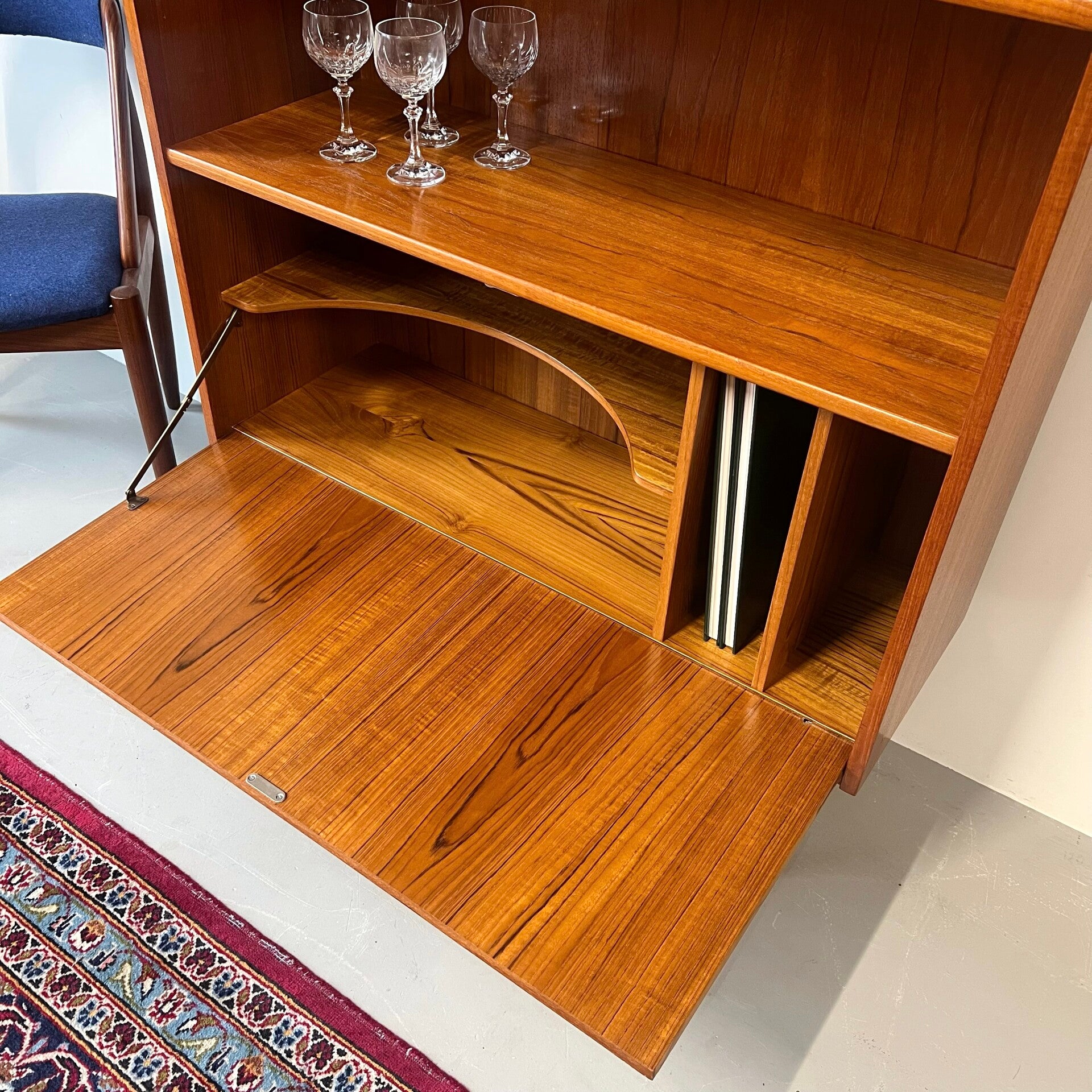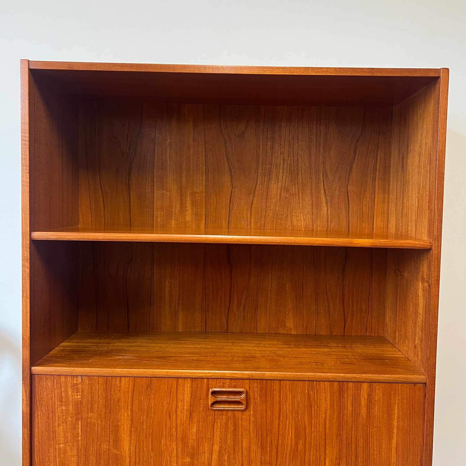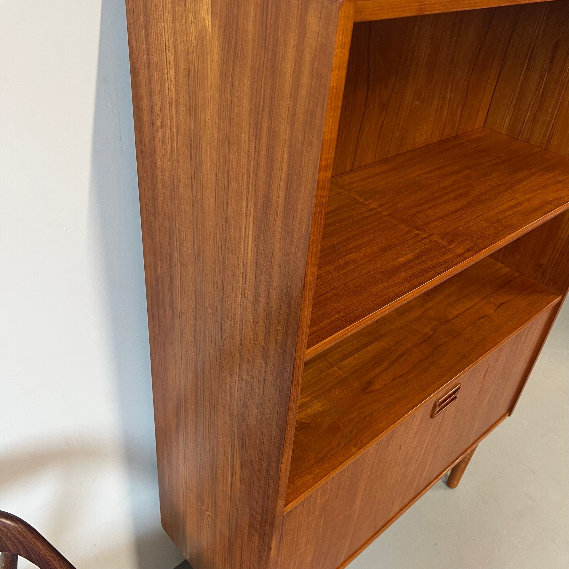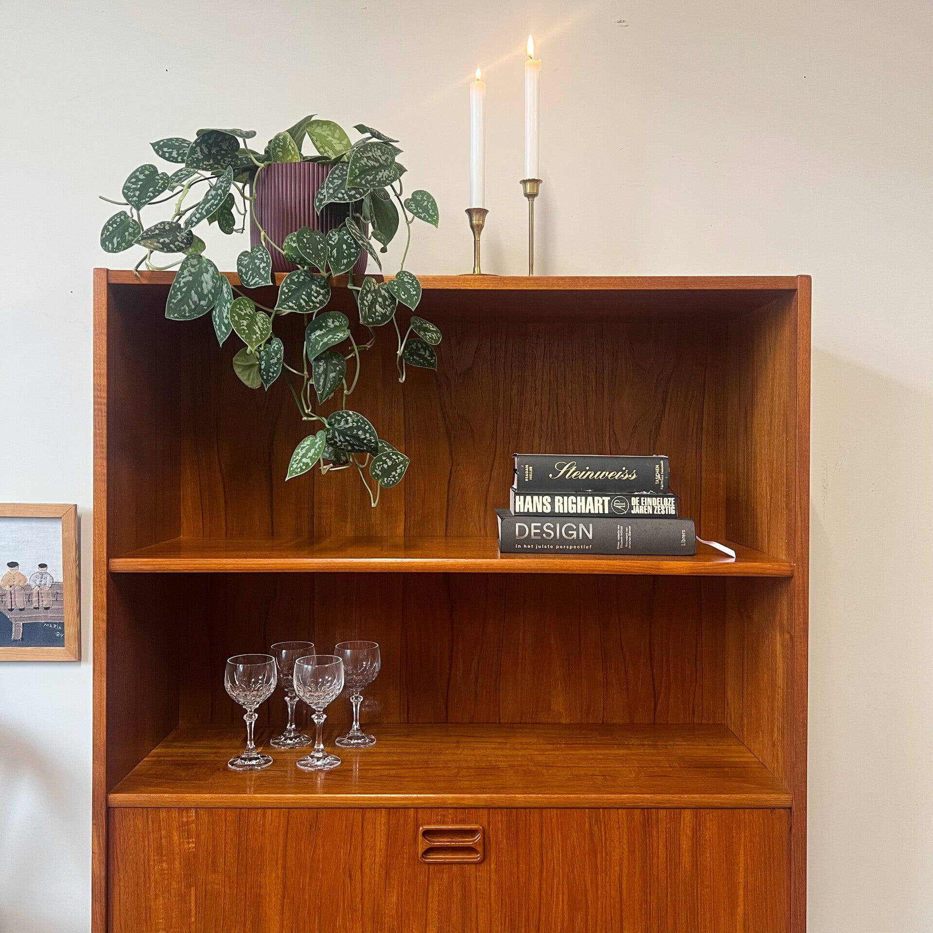 Leuke vintage klepkast, boekenkast uitgevoerd in teak (fineer).