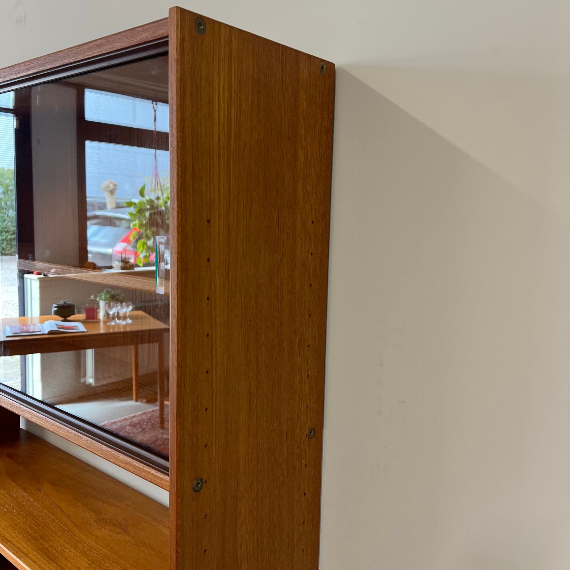 teak (massief / fineer) met beuken poten.