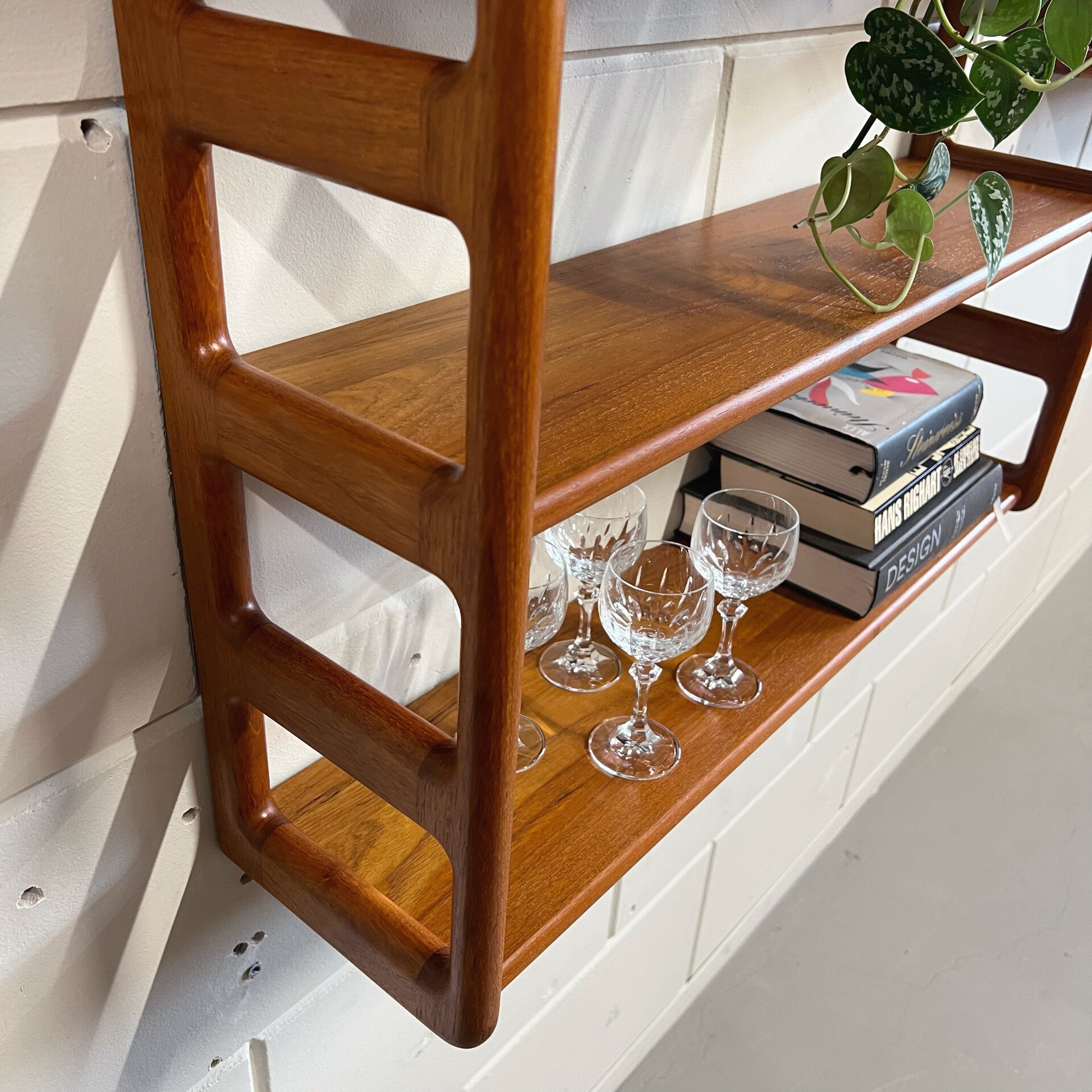 Geweldig vintage wandrek of boekenplank, geproduceerd door het Deense Dyrlund en uitgevoerd in massief teak.