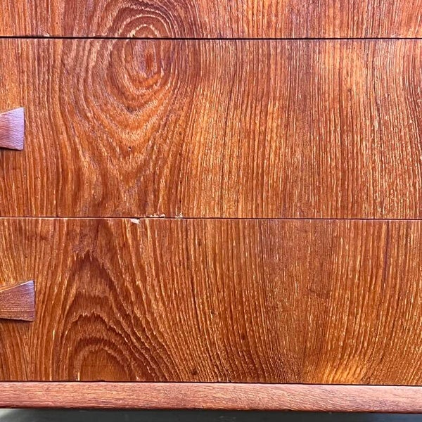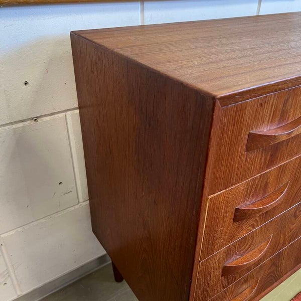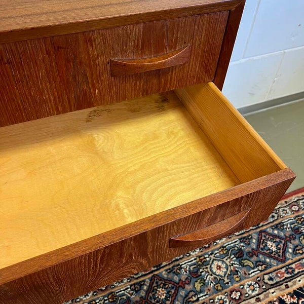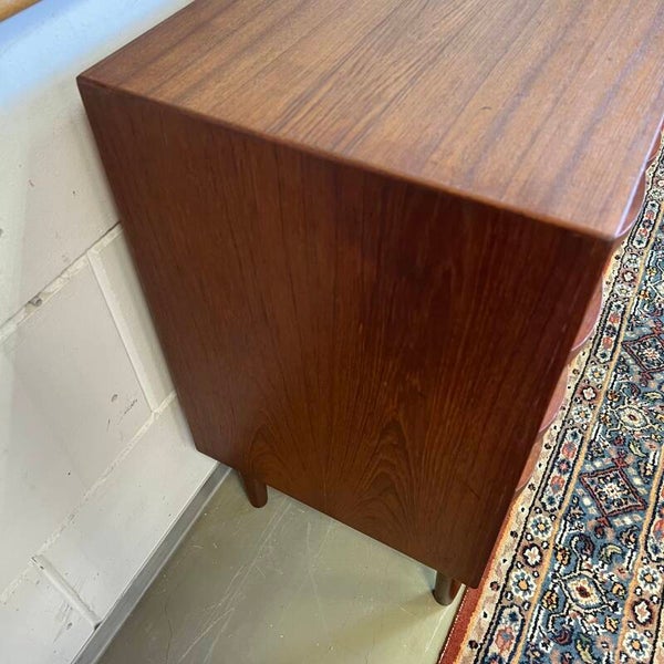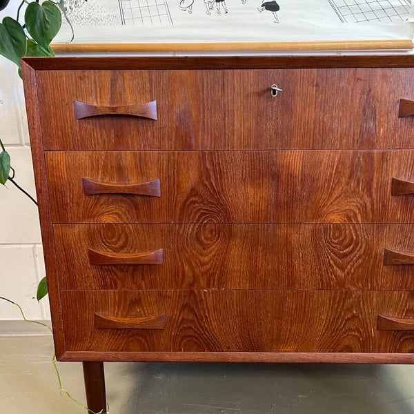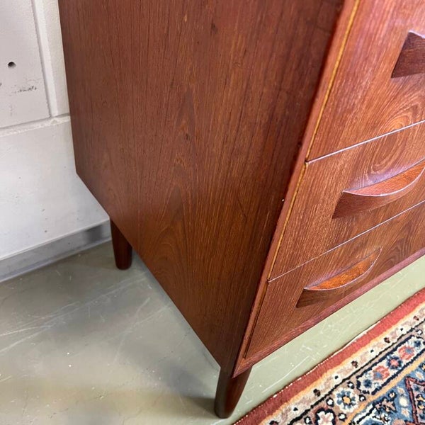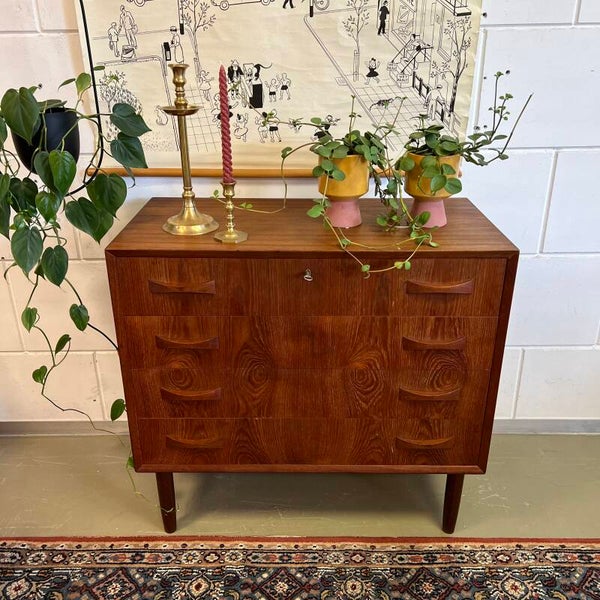 Vintage Deense ladekast of commode, op conische pootjes.