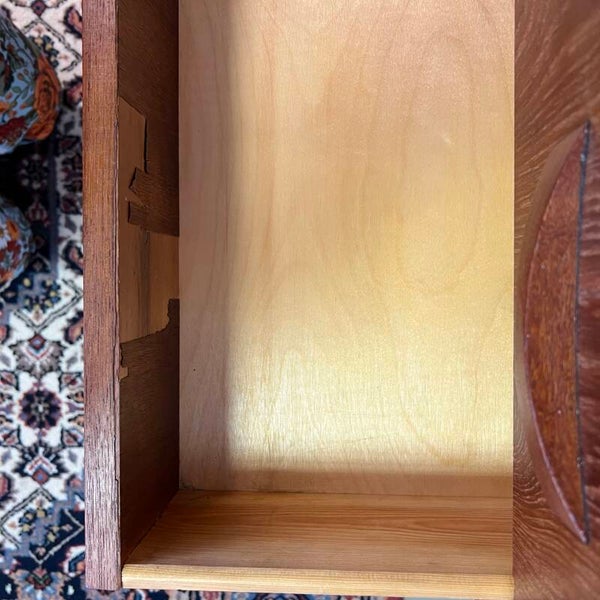 Gebruikerssporen zoals passend bij de leeftijd, aan de binnenzijde van de lades wat los fineer.