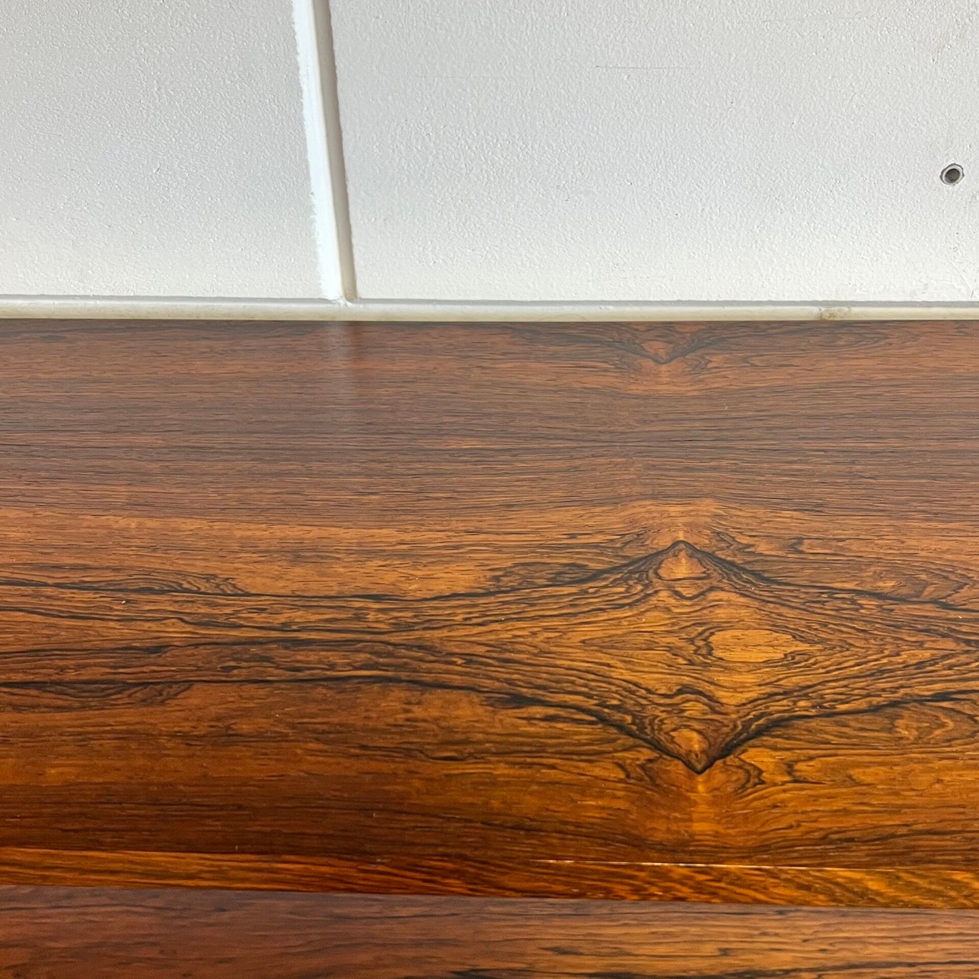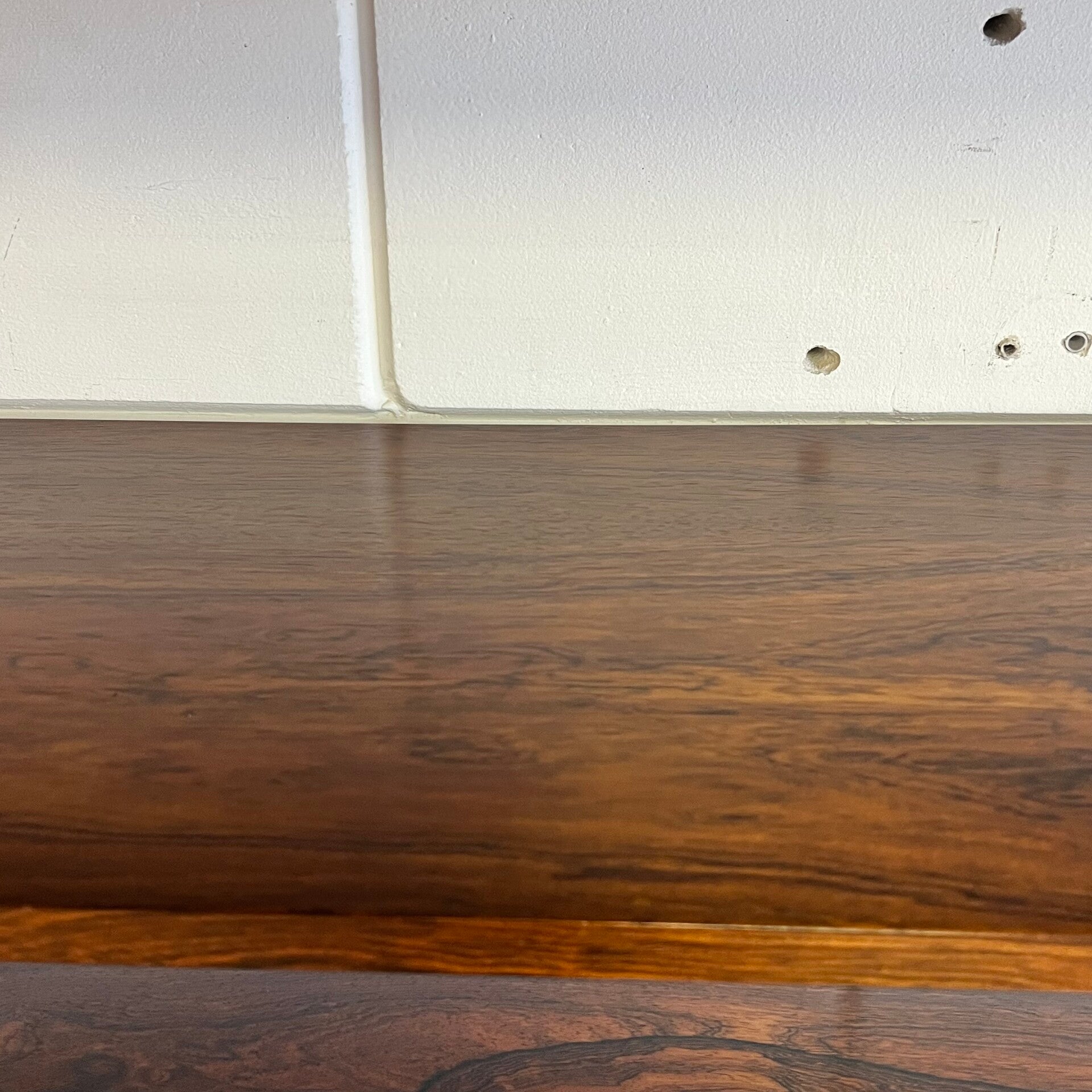 Hoge kwaliteit afwerking in prachtig rosewood (palissander) met aluminium wandlatten.