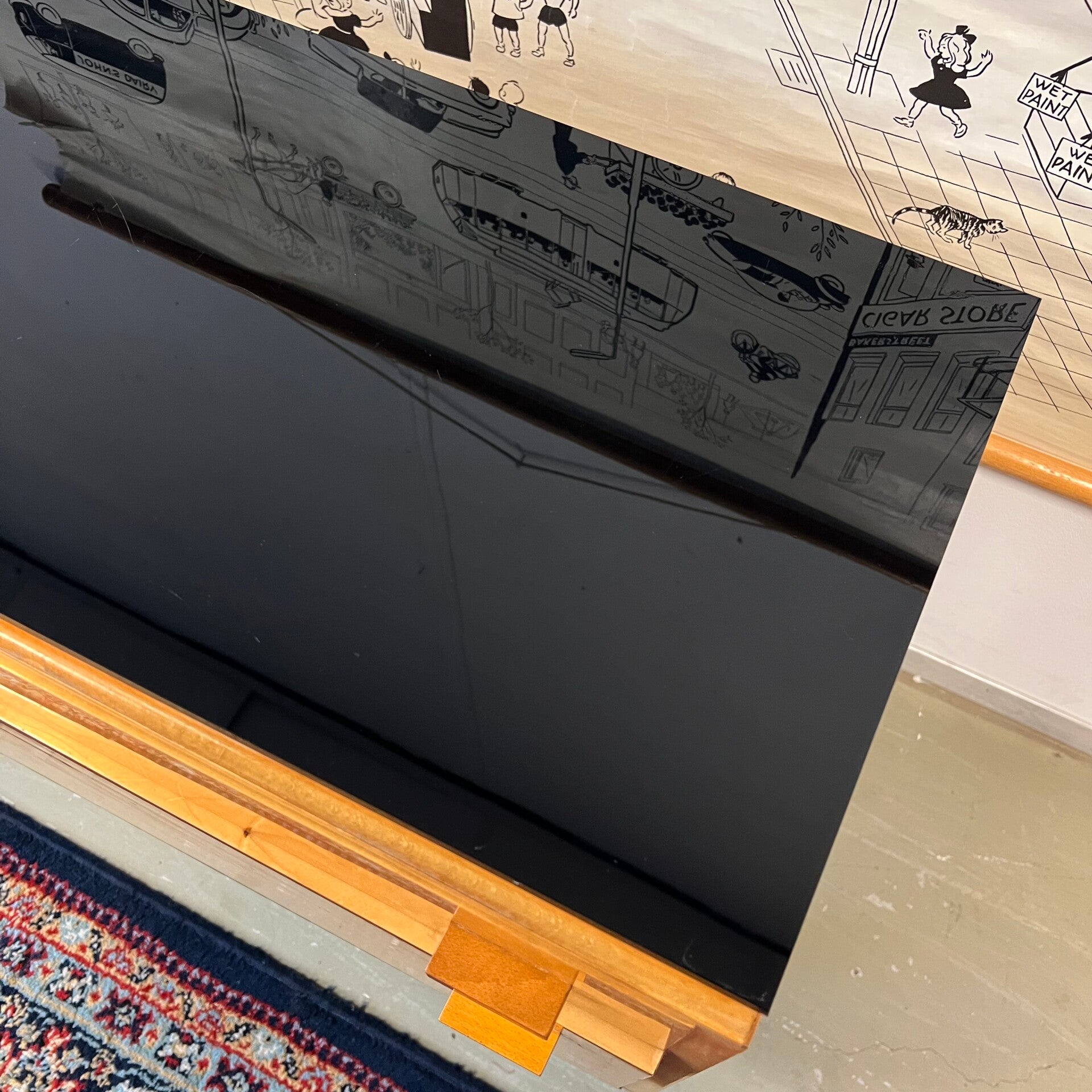 Beide kastjes hebben mooi gevormde pootjes en een losse zwart glazen plaat op het blad (beide bladen hebben wat kringen en krassen).