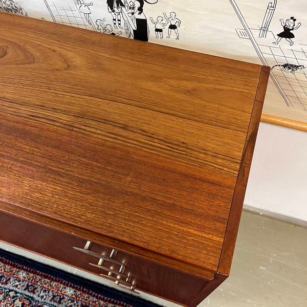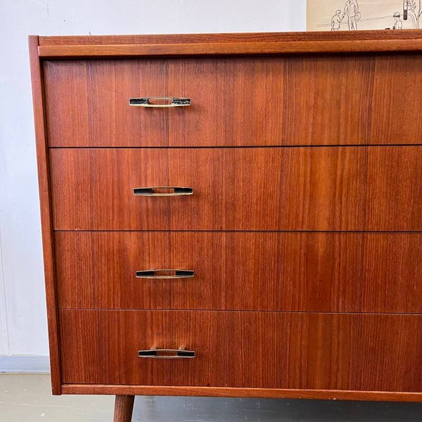Mooi vintage dressoir, commode of ladekast op slanke schuine poten.