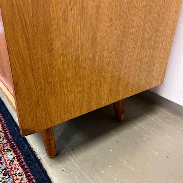 De kast komt uit de U-452 serie en staat met houten pinnen op het slanke onderstel.