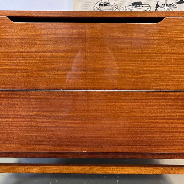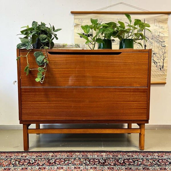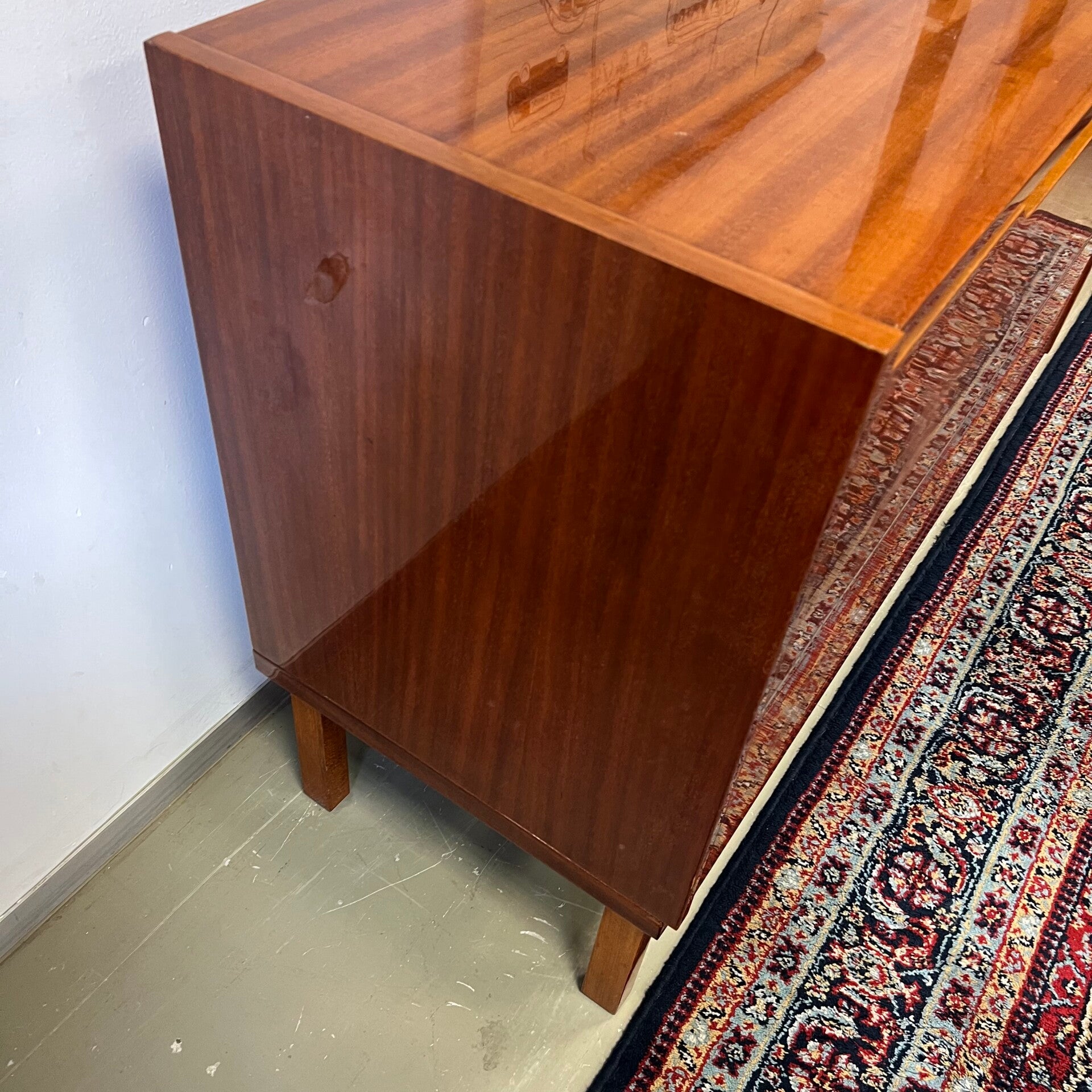 Leuke klepkast, dressoir of TV-, audiomeubel in hoogglans gefineerd mahoniehout.